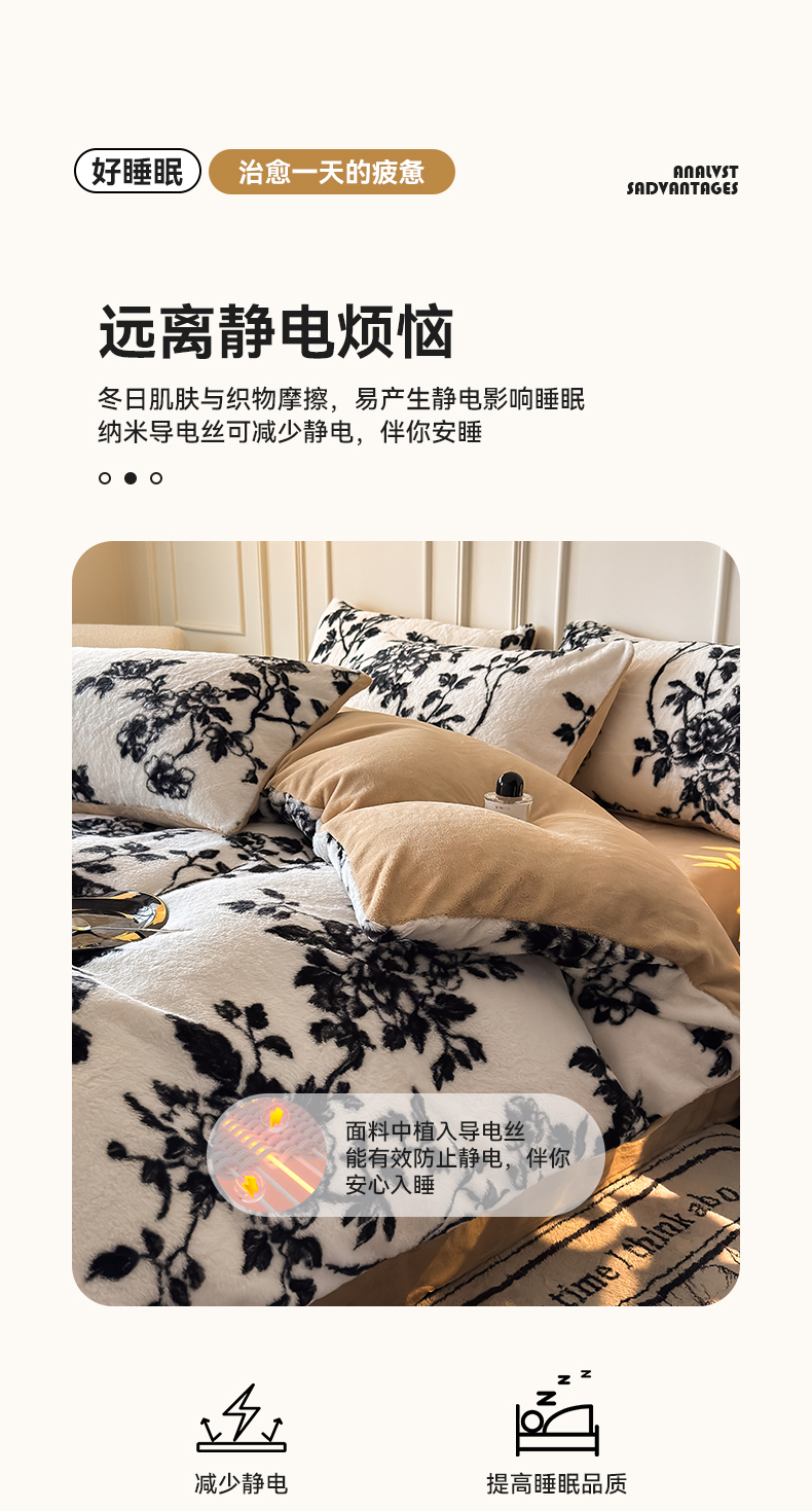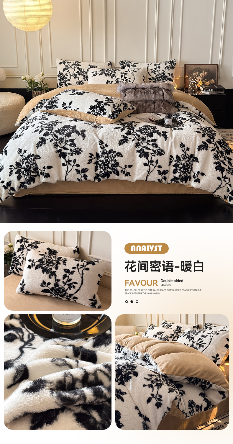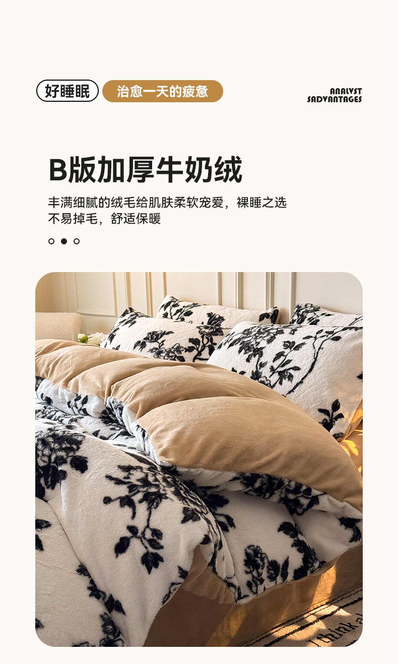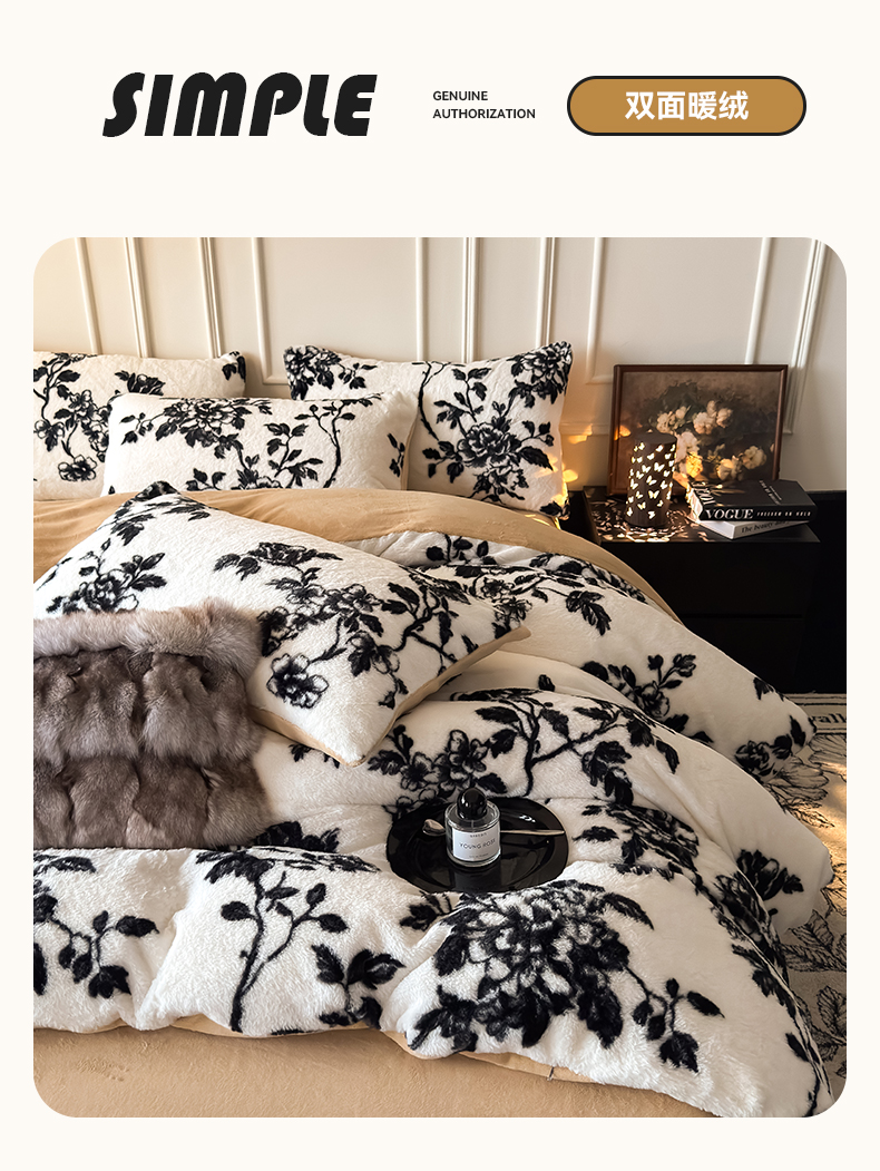 【下架】自然醒冬天加绒双面牛奶法兰绒被套单件冬季加厚珊瑚绒毛茸男被罩三件套床笠四件套JY
