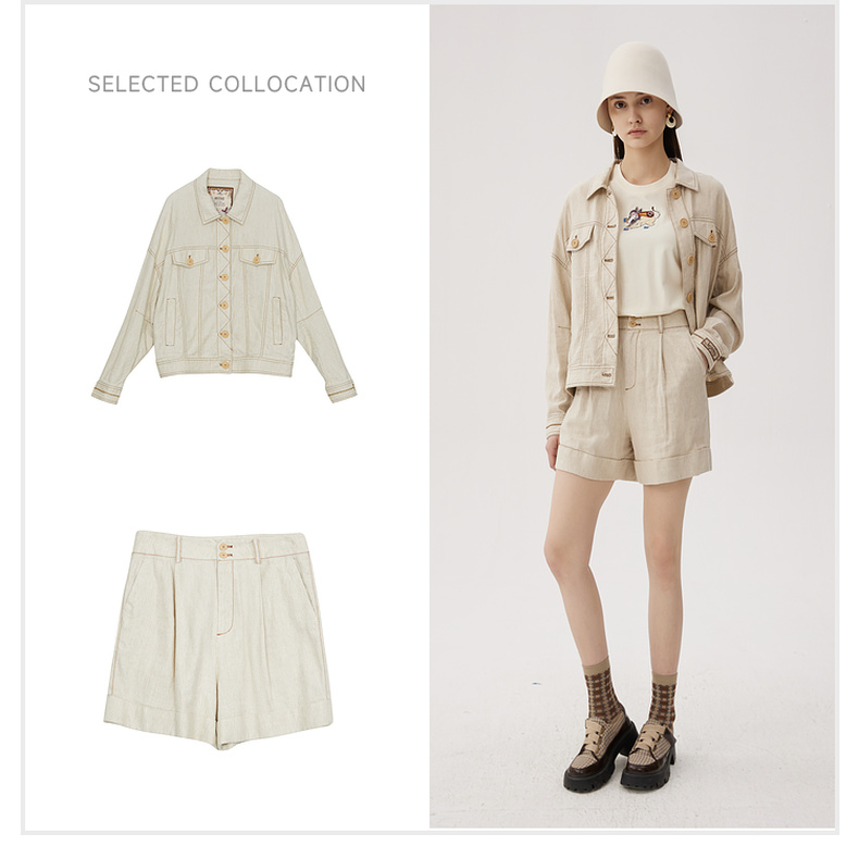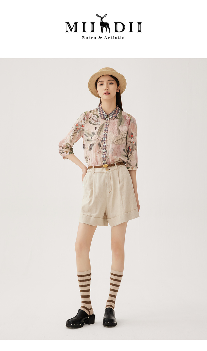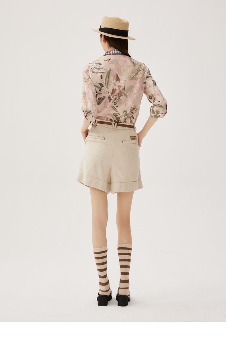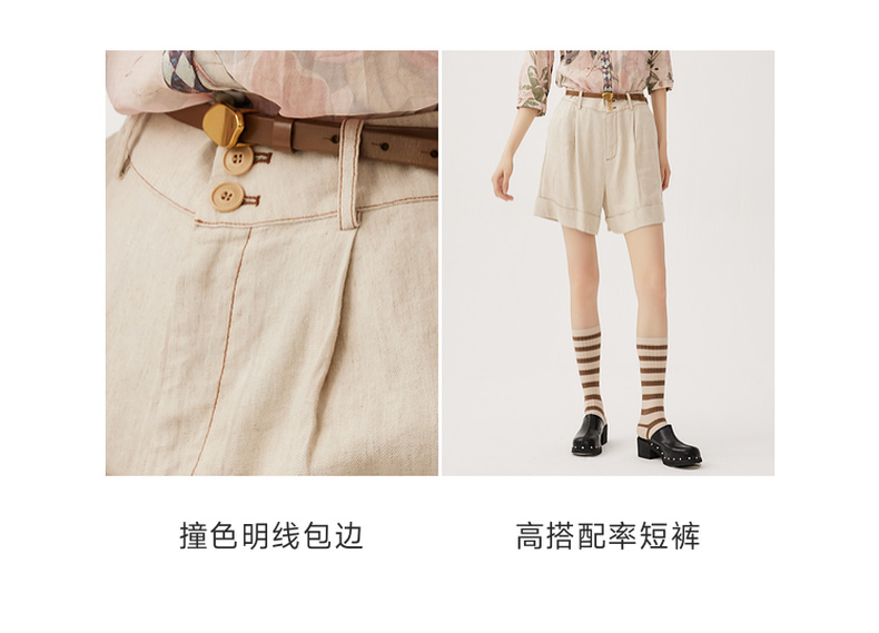 谜底休闲短裤女2024秋新品通勤风百搭棉麻亲肤透气裤子243MK1077