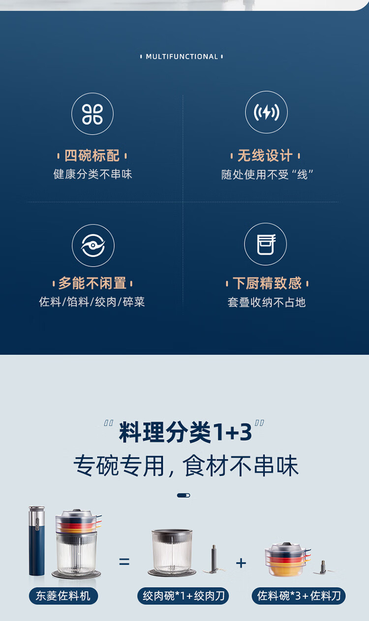 【小家电】东菱Donlim绞肉机 家用电动小型碎菜搅拌绞辣椒绞蒜 全自动多功能和馅料理棒辅食百味佐料机DL-6082 HF