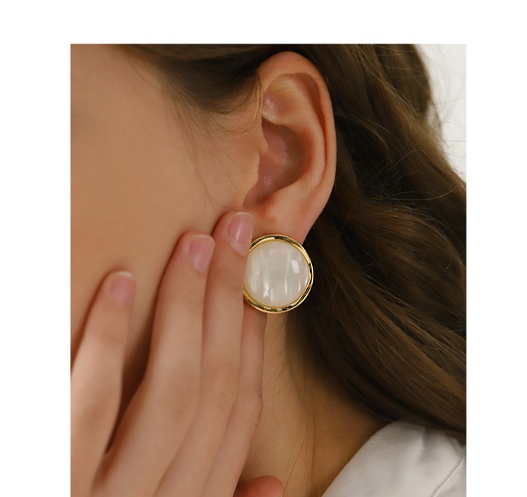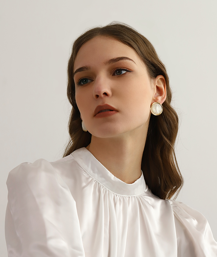 Oflye潮流饰品 珍珠马贝耳钉女复古巴洛克耳环气质时尚轻奢法式小香风耳饰
