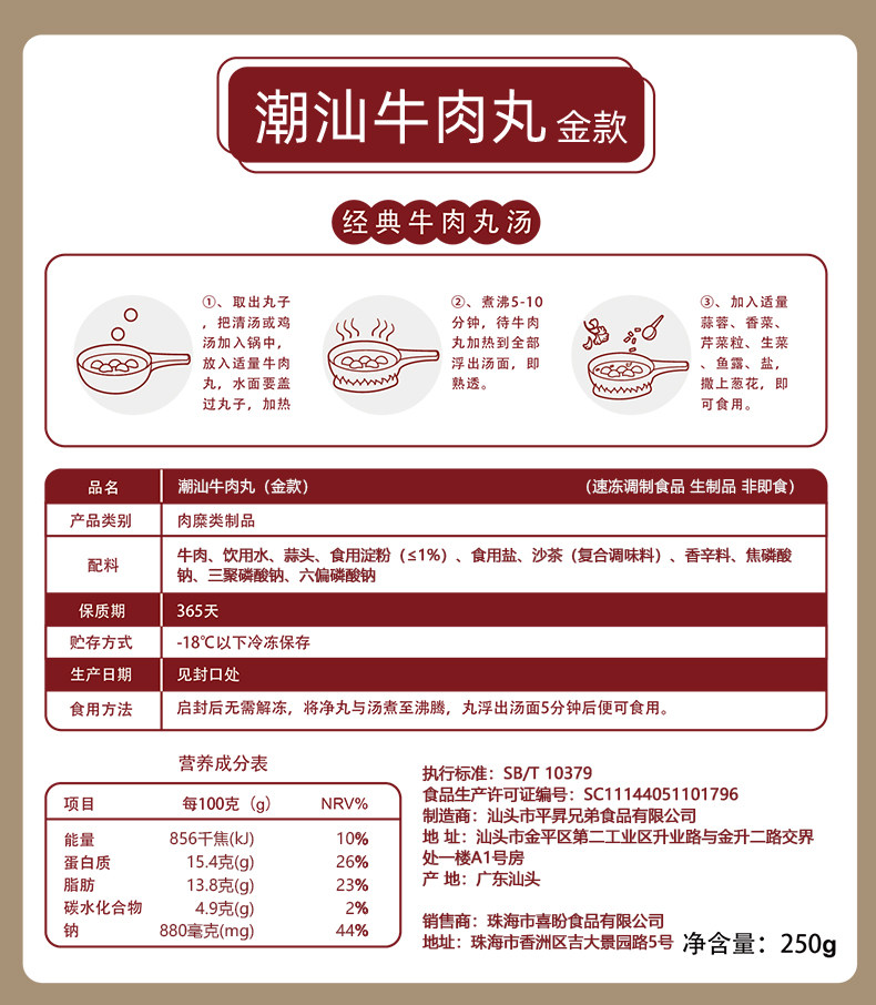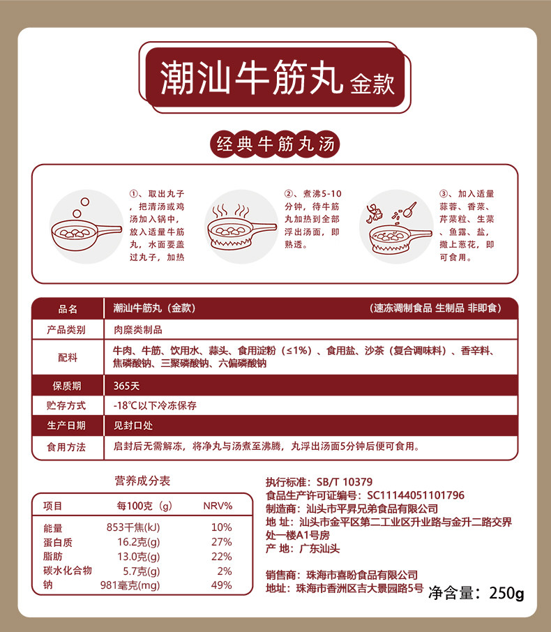 喜盼 金奖牛筋丸250克 *1袋:2025.12月份