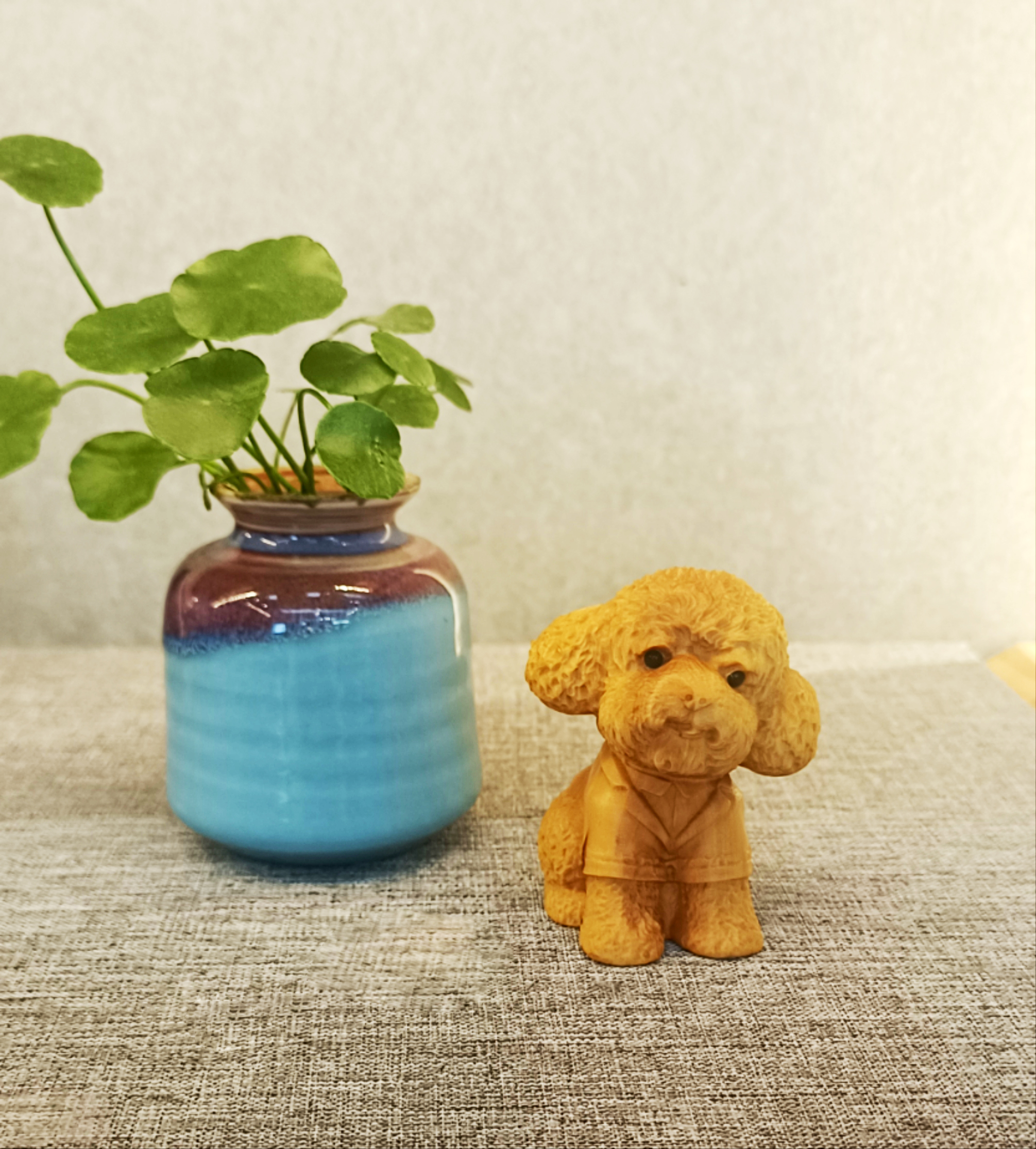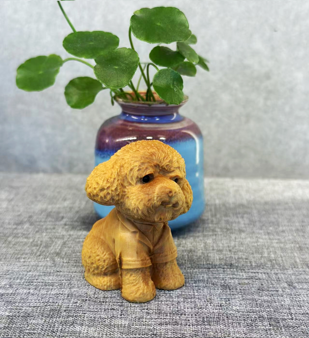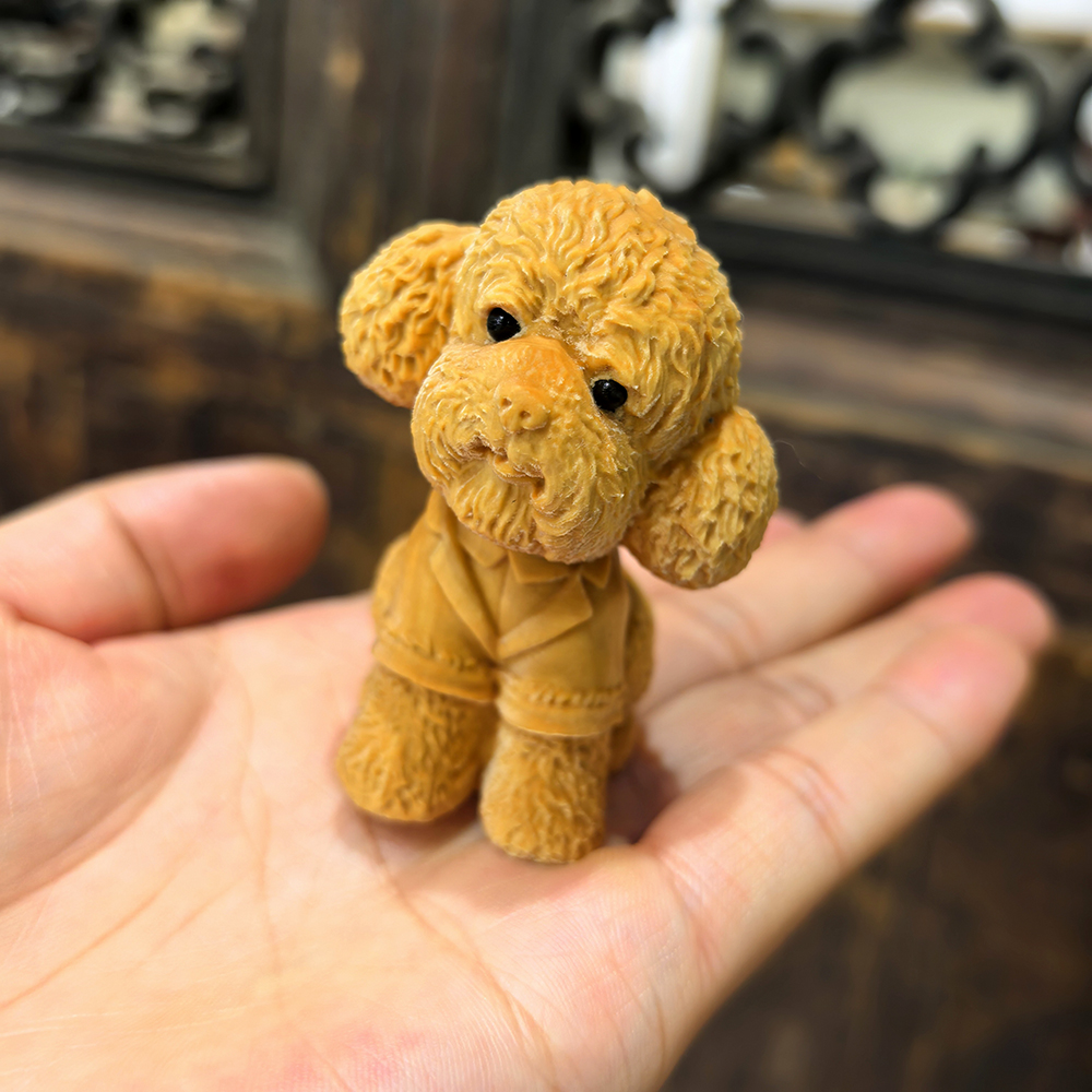 泰迪狗穿衣款°木雕摆件