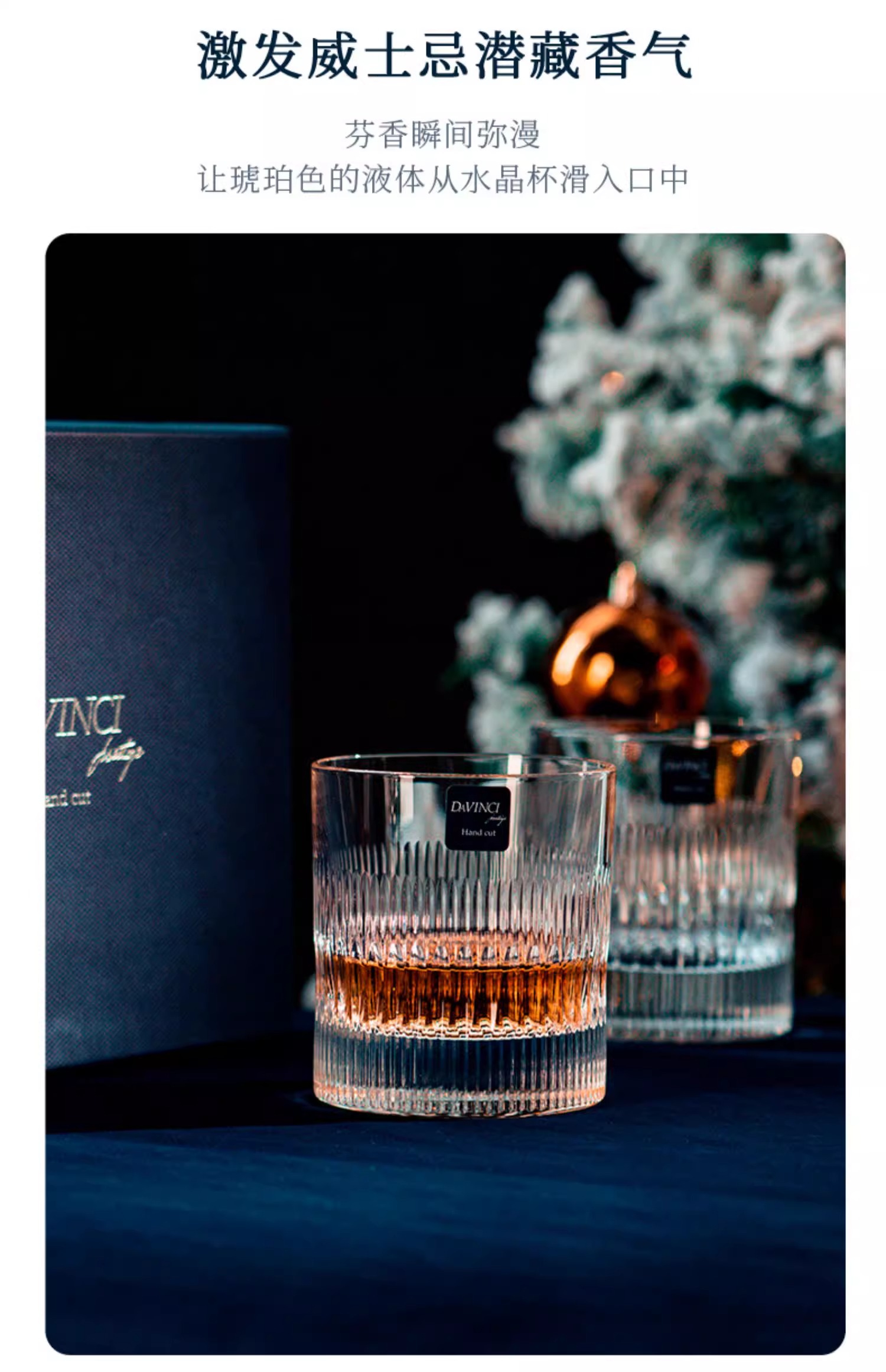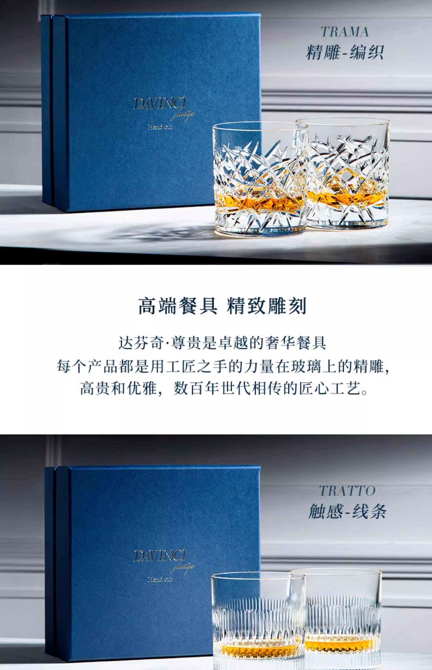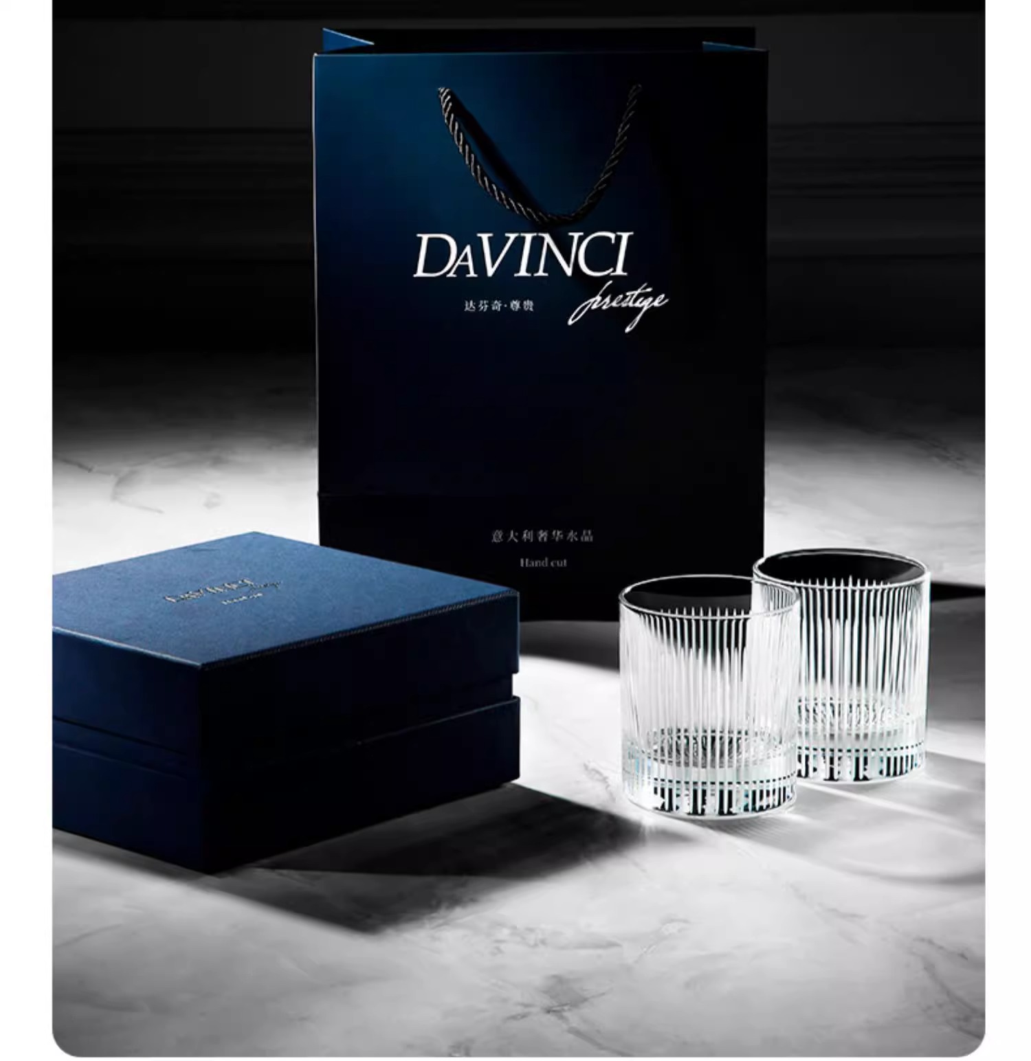 【样品特惠4折,仅1套,无货退款】DAVINCI达芬奇进口威士忌酒杯手工水晶玻璃杯洋酒杯高级礼盒套装达芬奇精雕威士忌对杯290ml