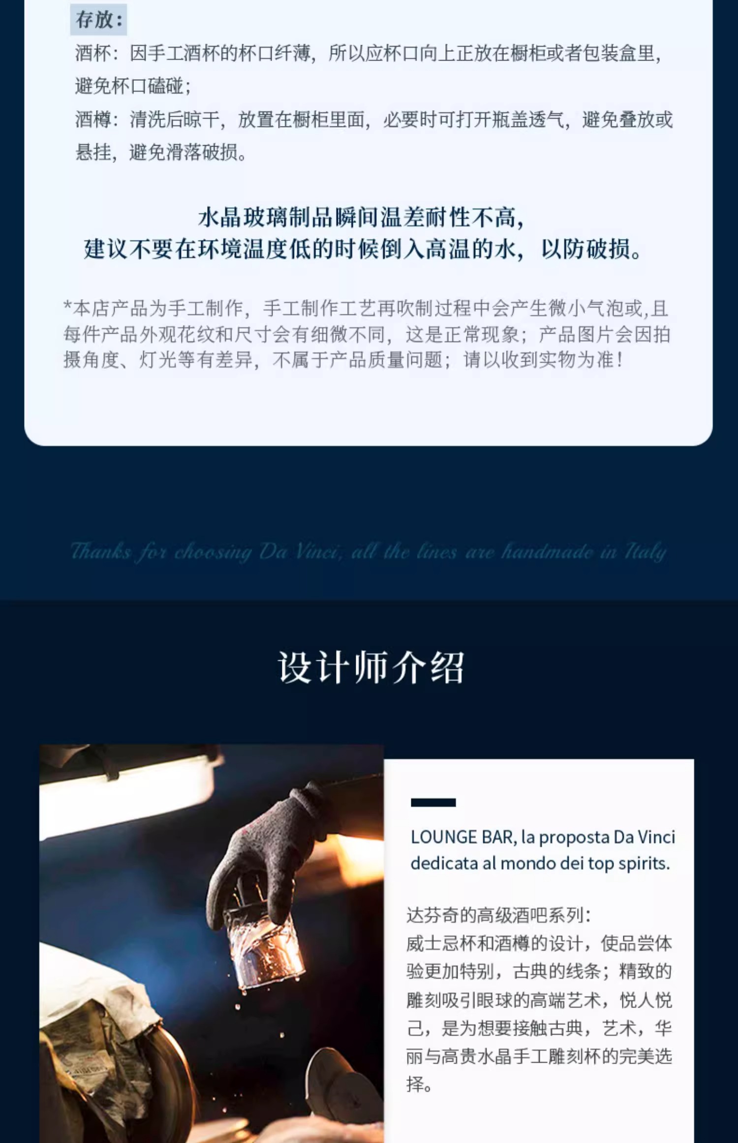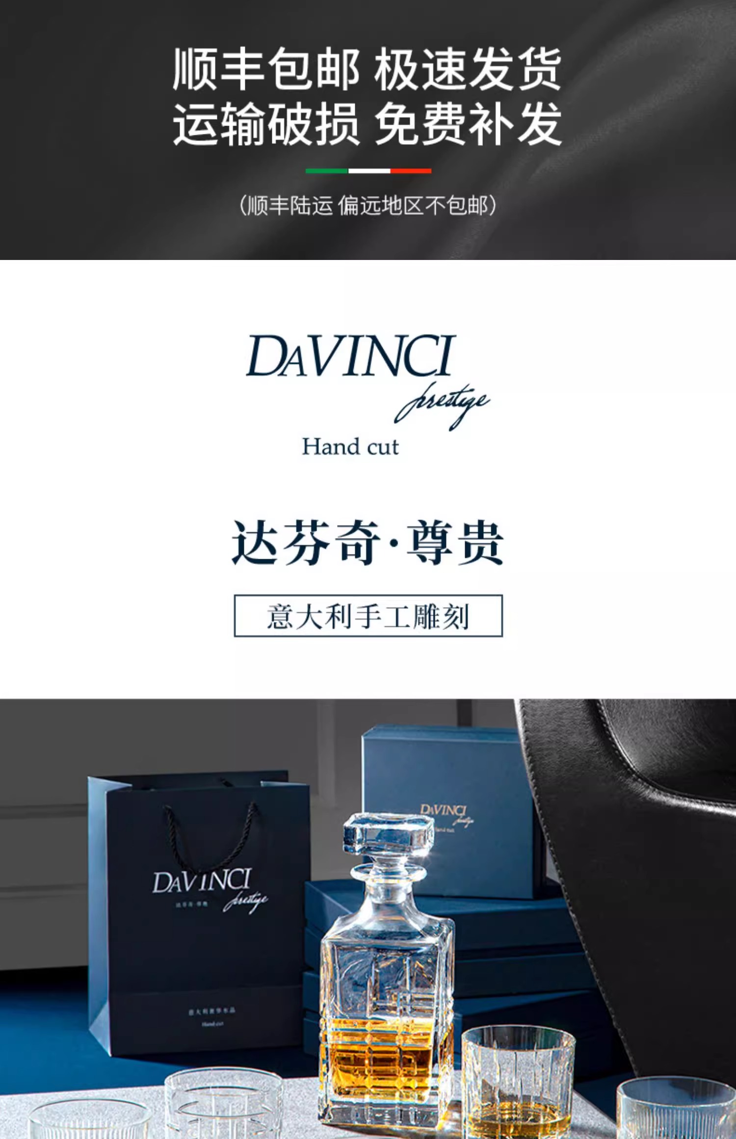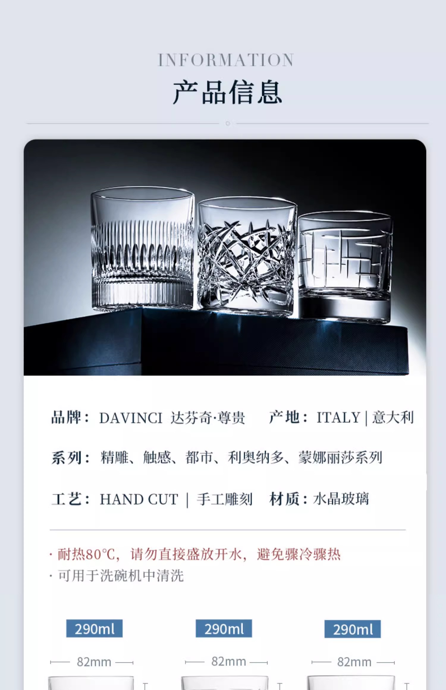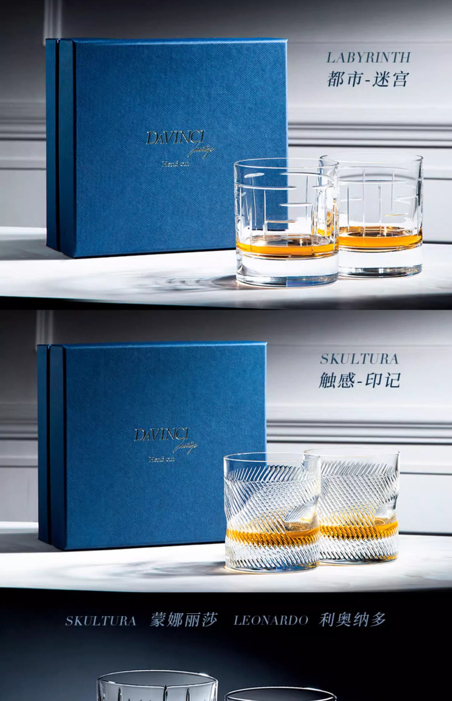 【样品特惠4折,仅1套,无货退款】DAVINCI达芬奇进口威士忌酒杯手工水晶玻璃杯洋酒杯高级礼盒套装达芬奇精雕威士忌对杯290ml