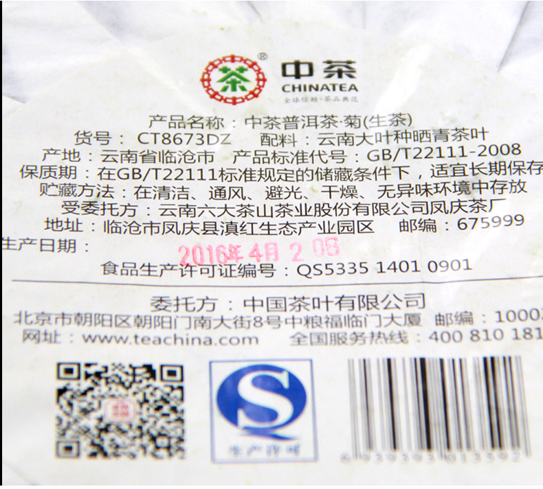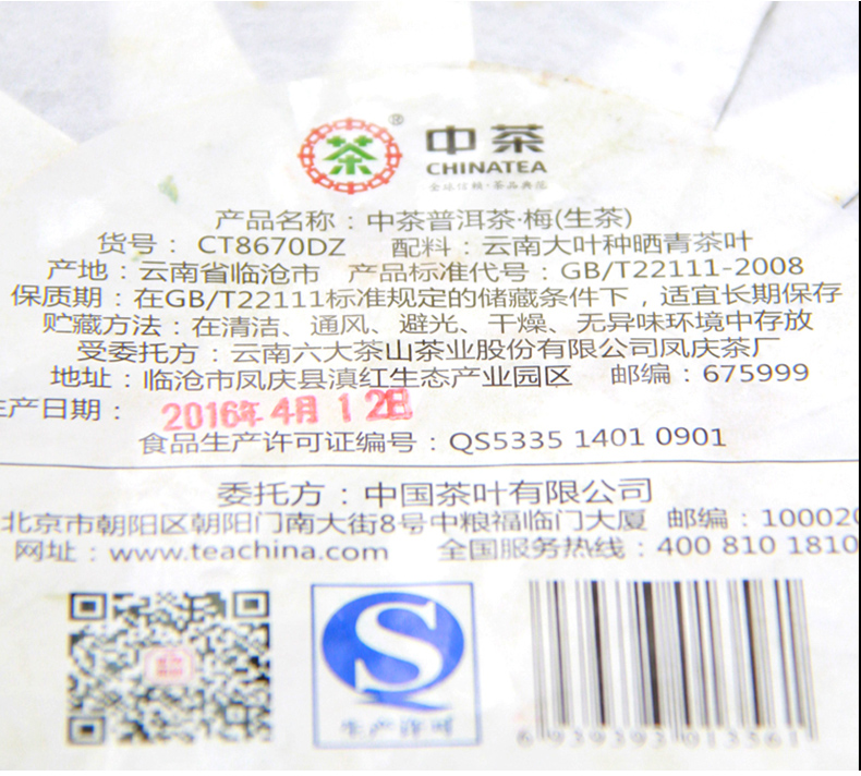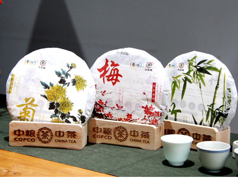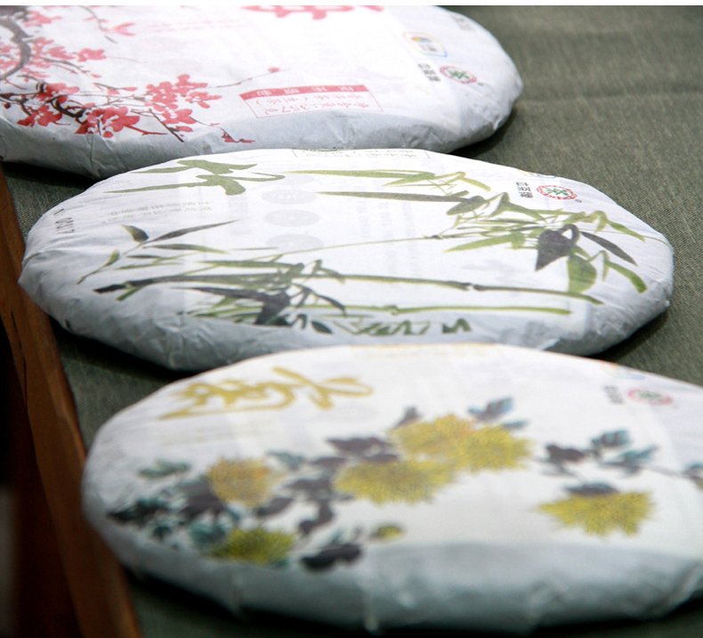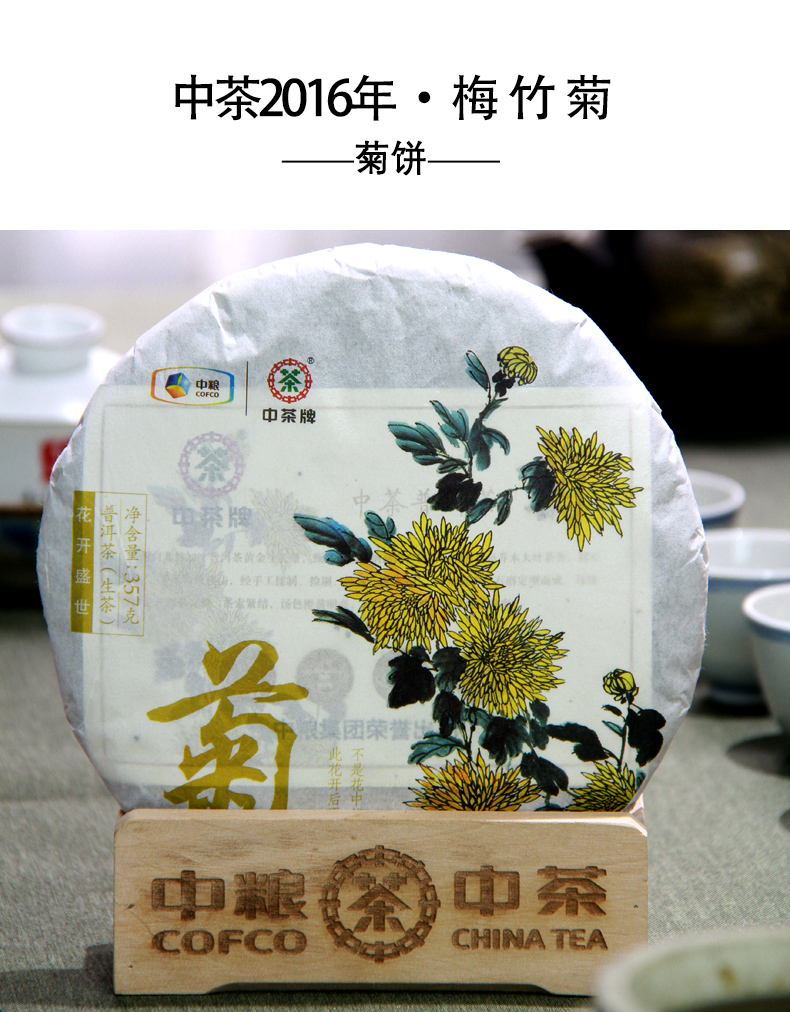 中粮-中茶(梅竹菊)2016年云南普洱茶花开盛世梅竹菊生茶饼 竹饼 357g/饼/梅竹菊/干仓直发
