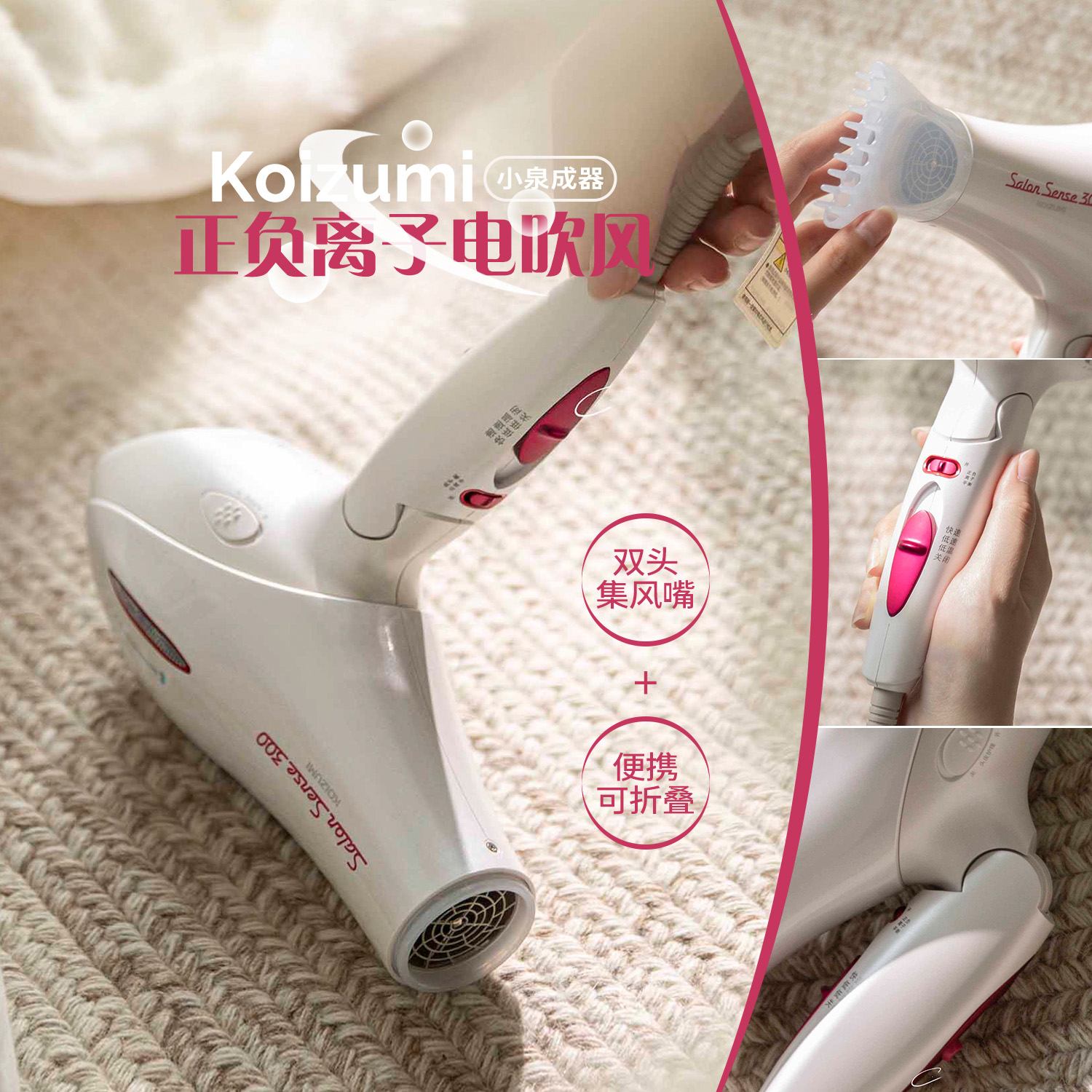 小泉成器正负离子吹风机调节风速有点妙。
