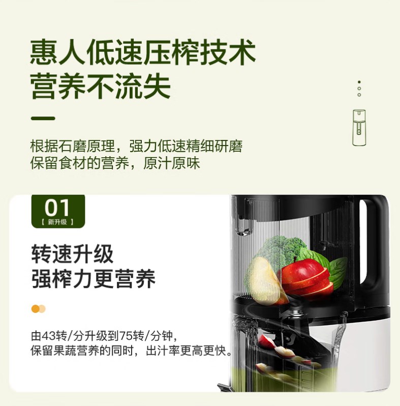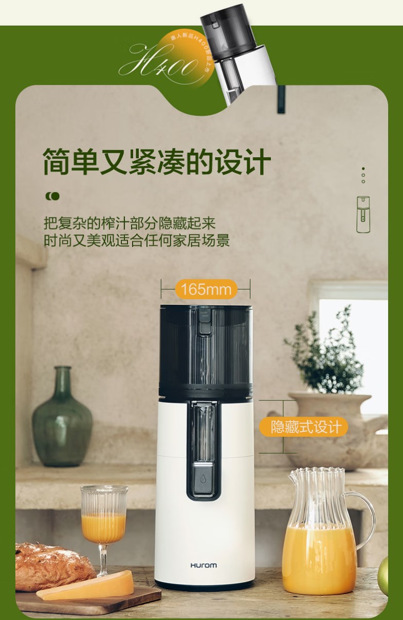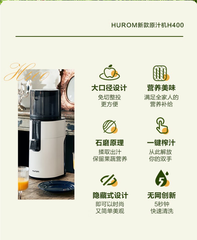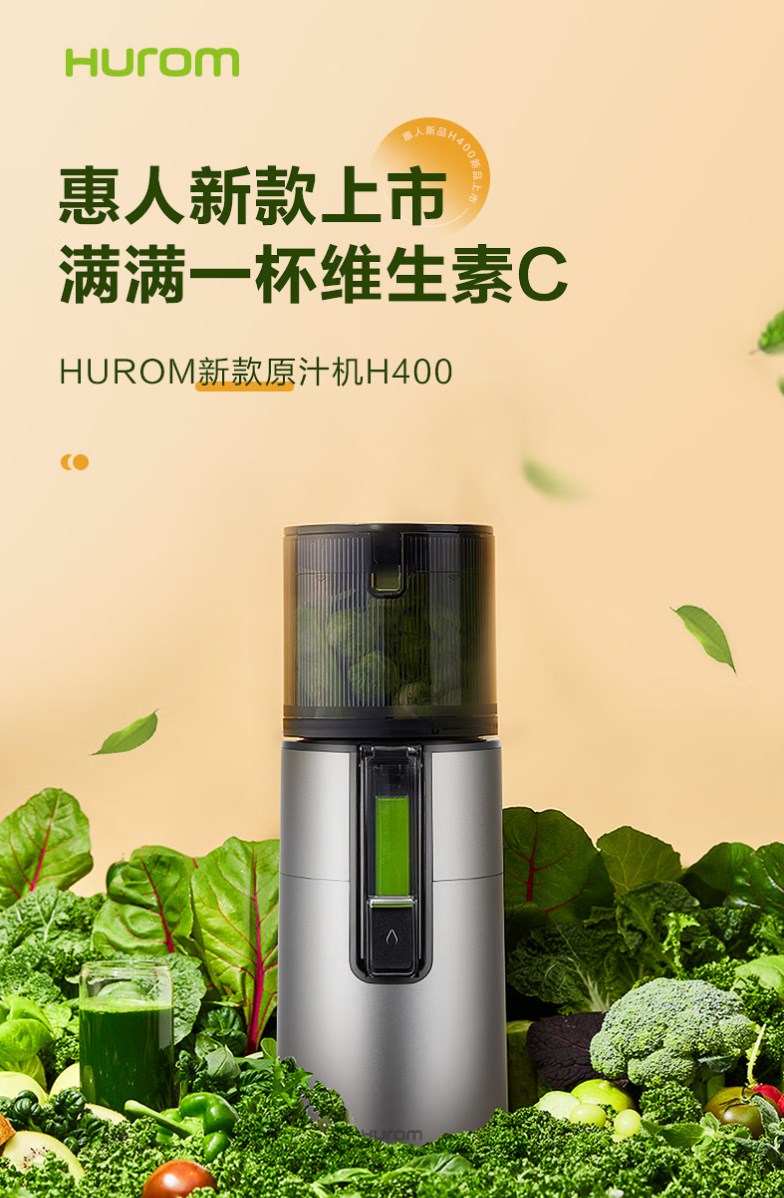 【新款 透明可视窗口】惠人 (HUROM)原汁机 无网韩国进口多功能大口径家用低速榨汁机 果汁机辅食机渣汁分离H400-BIC05(TG)
