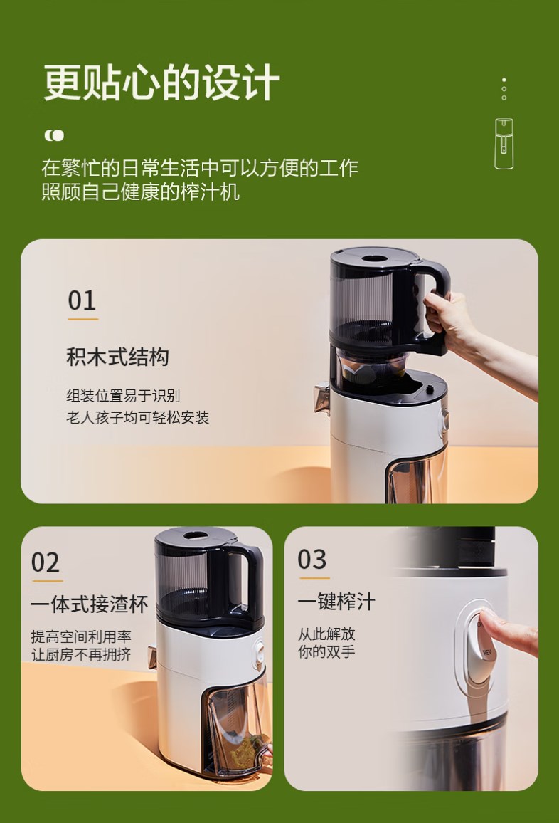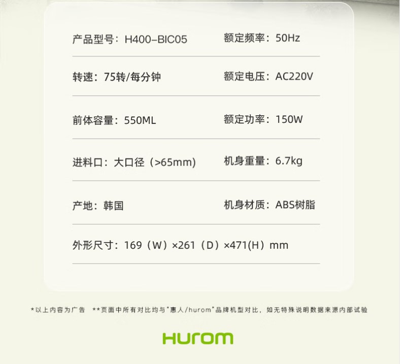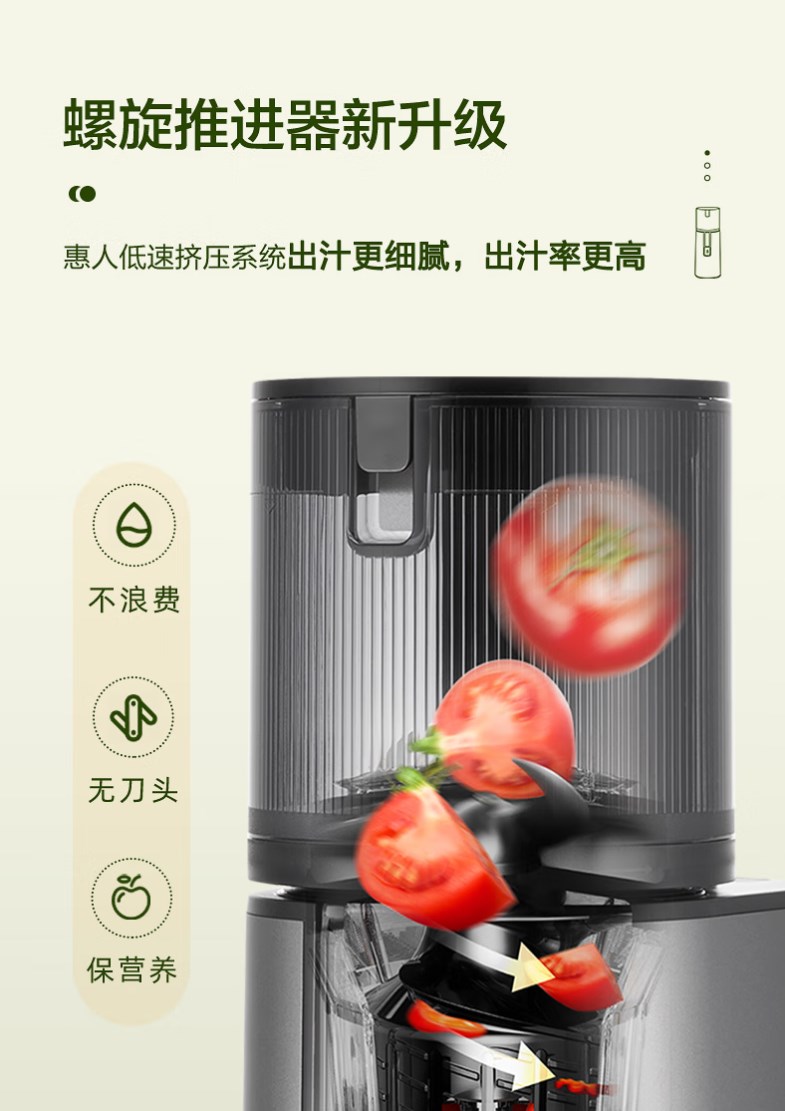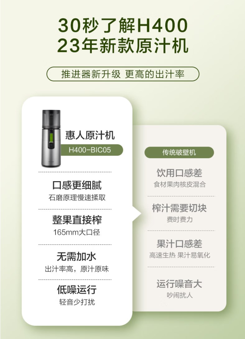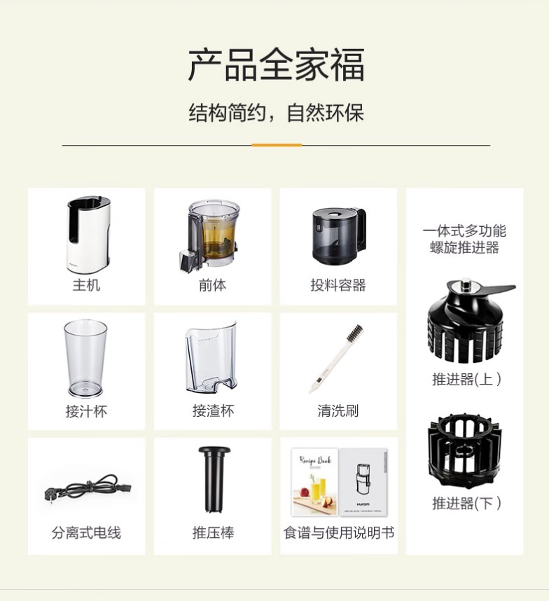 【新款 透明可视窗口】惠人 (HUROM)原汁机 无网韩国进口多功能大口径家用低速榨汁机 果汁机辅食机渣汁分离H400-BIC05(TG)