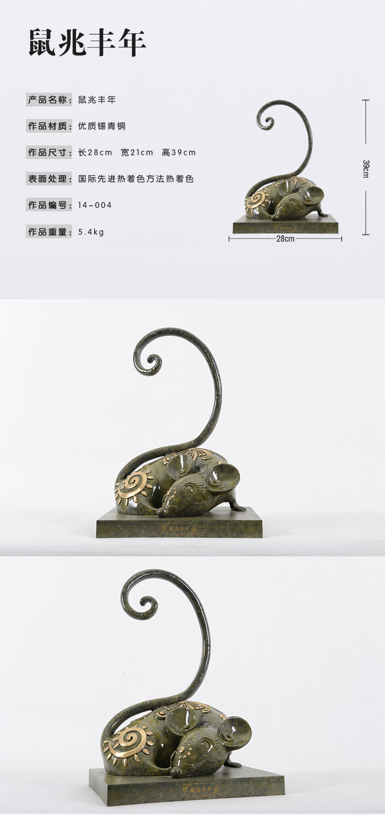 宇达青铜全铜鼠摆件《鼠兆丰年》鼠年 家居 艺术装饰摆件 高39cm