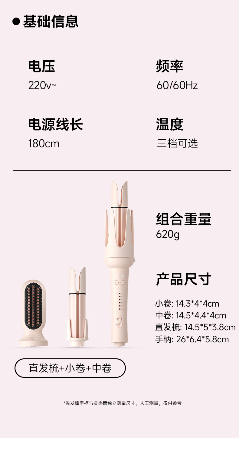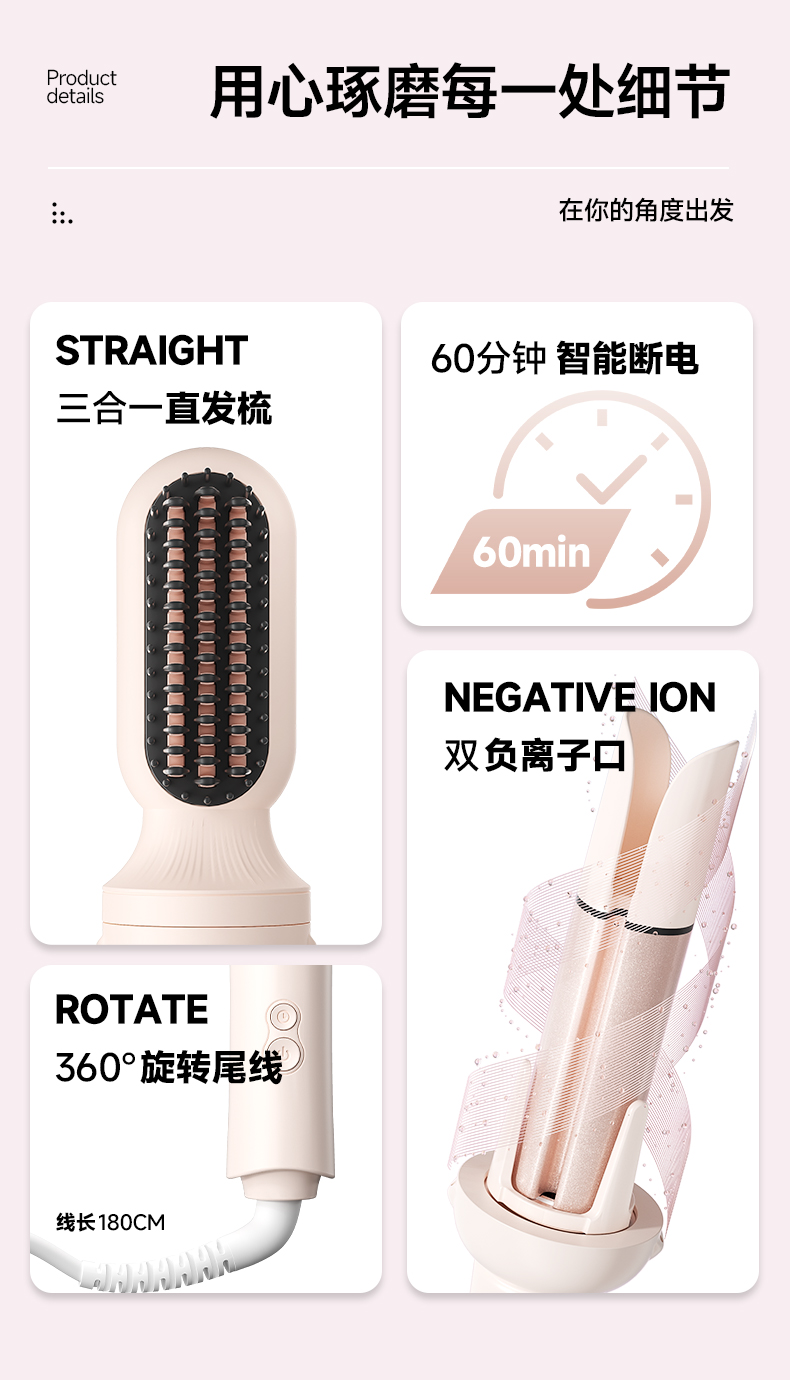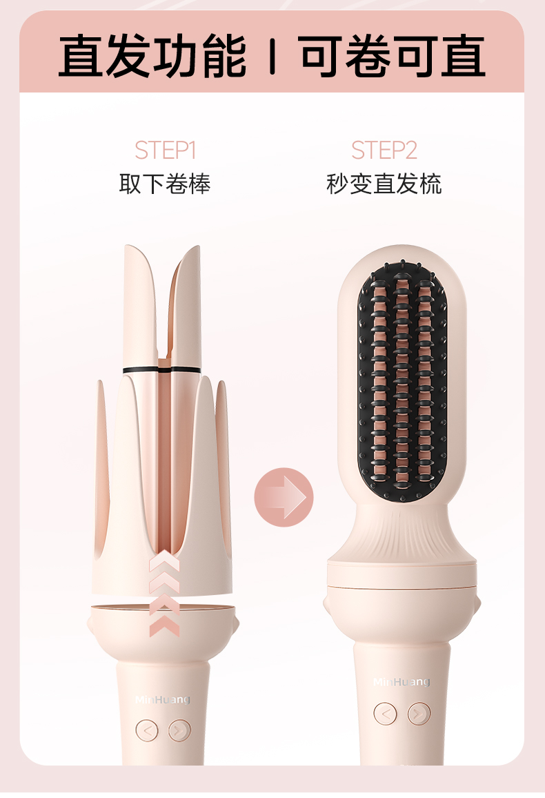 MinHuang/敏煌三合一智能防卡发自动卷发棒、直发梳(赠2个夹子、1把梳子)