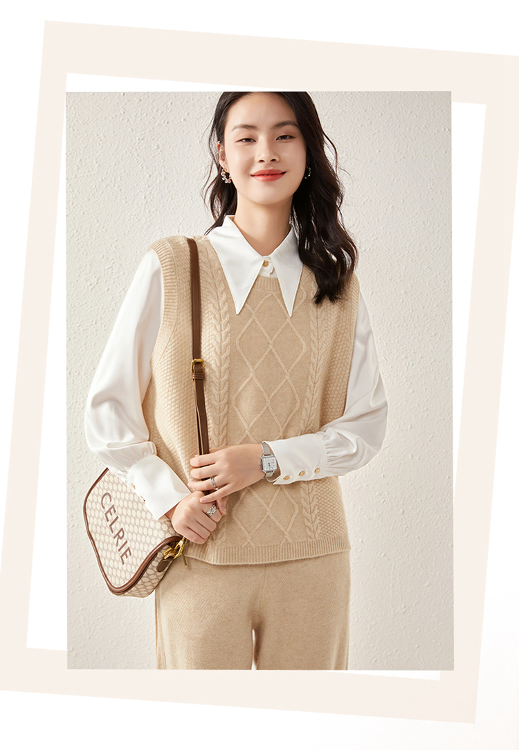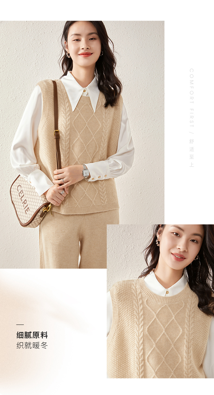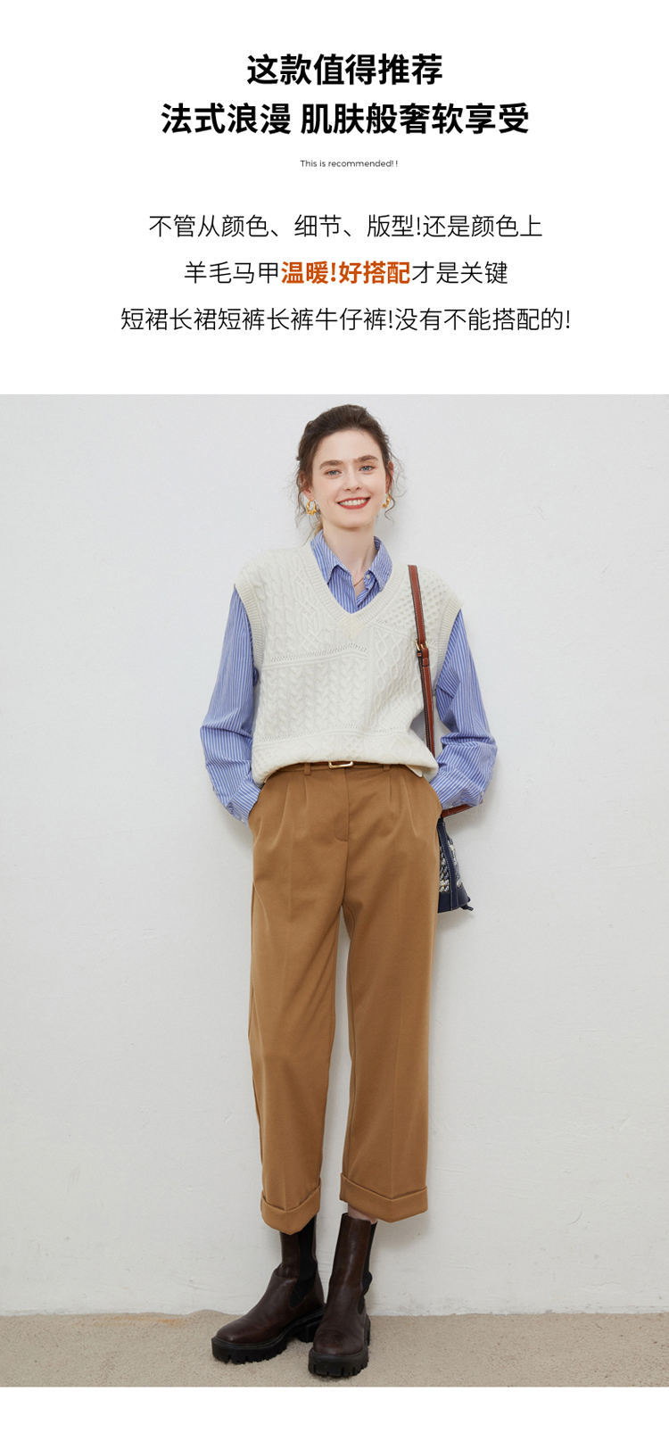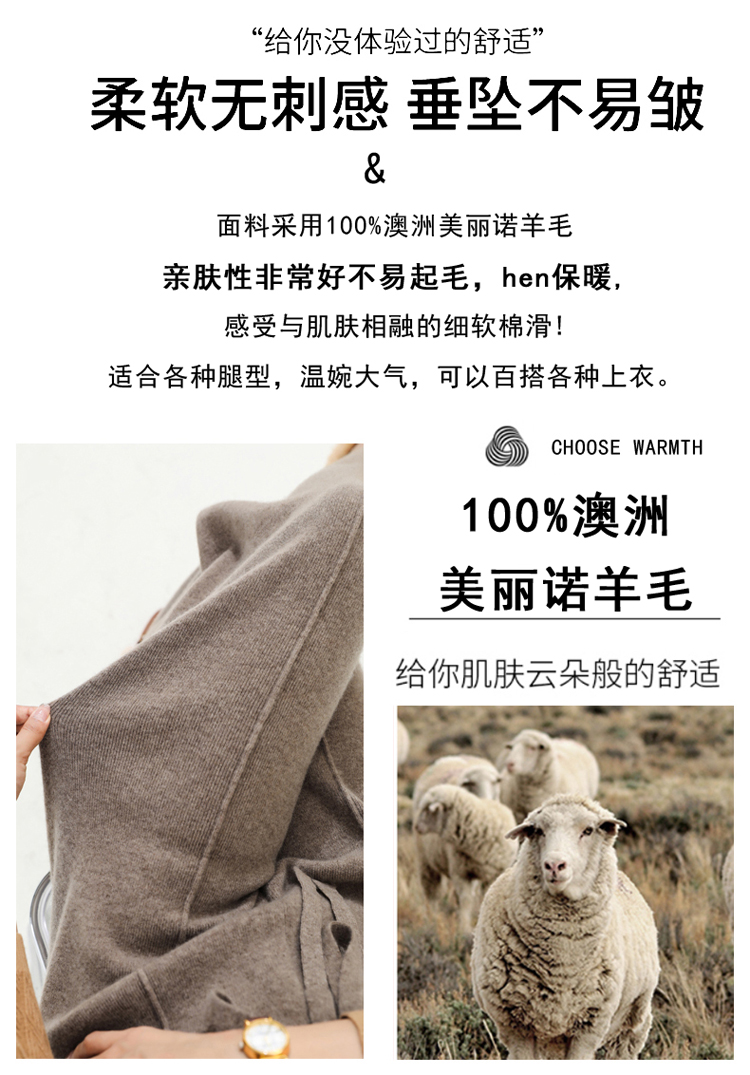 软糯亲肤羊毛衬衣开衫 阔腿裤文艺马甲羊绒帽