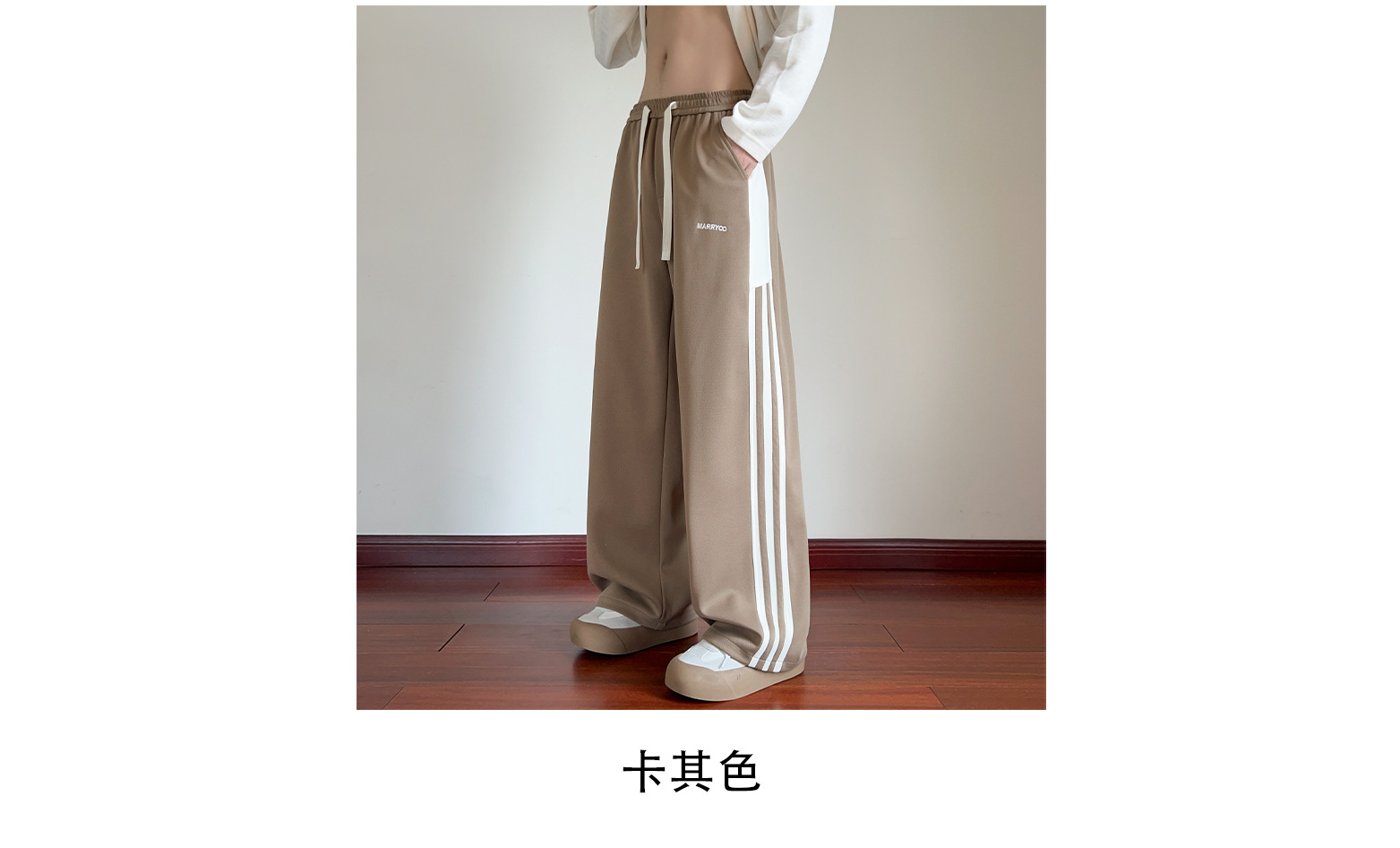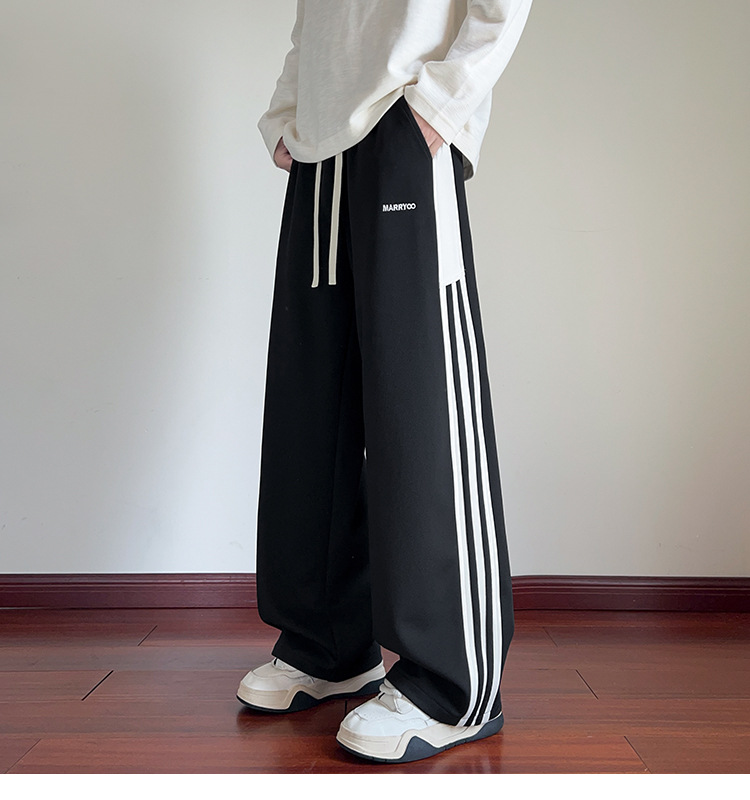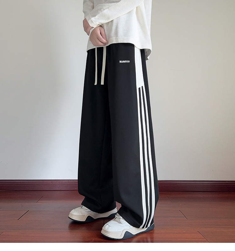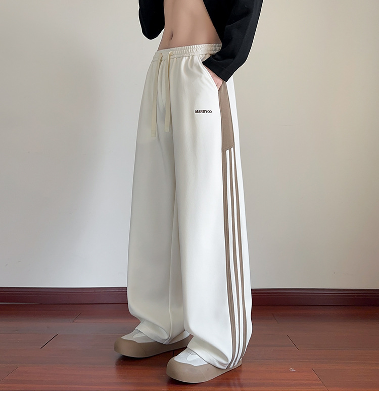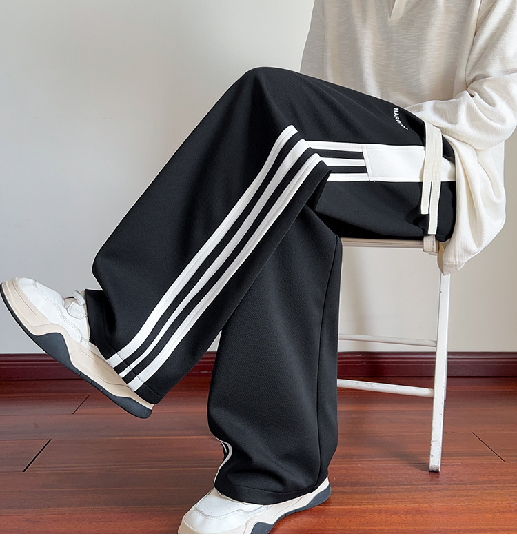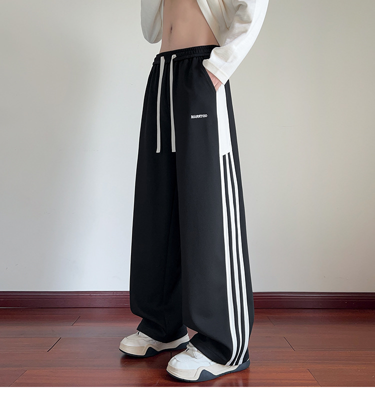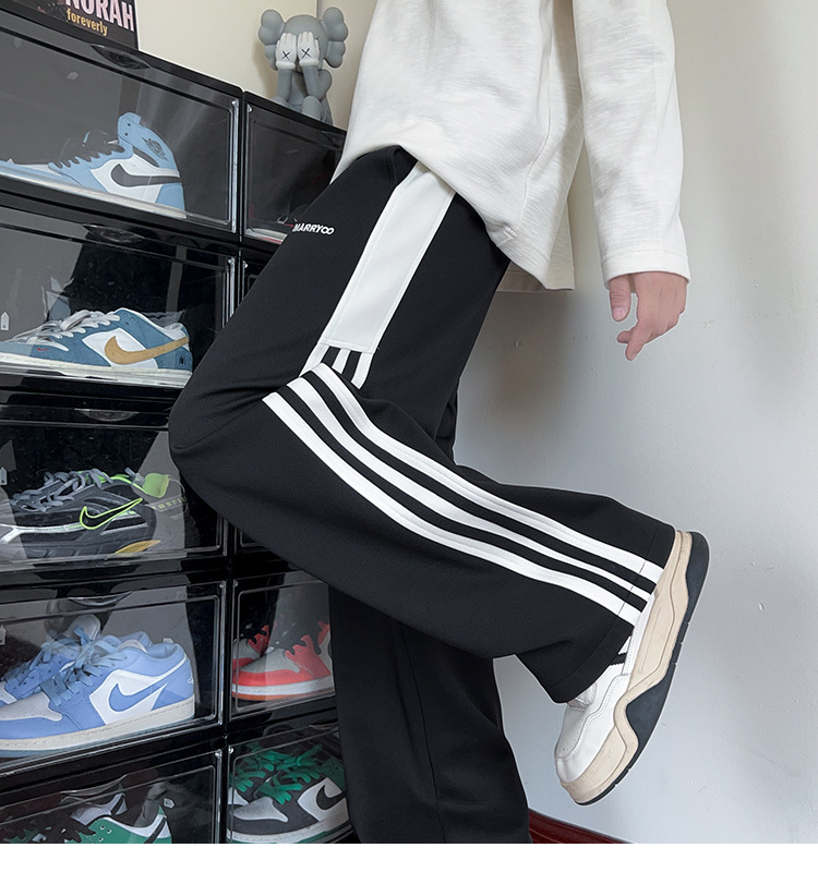美式潮牌宽松运动侧边条纹三条杠休闲阔腿港风直筒垂感长裤KL3208 商品图0