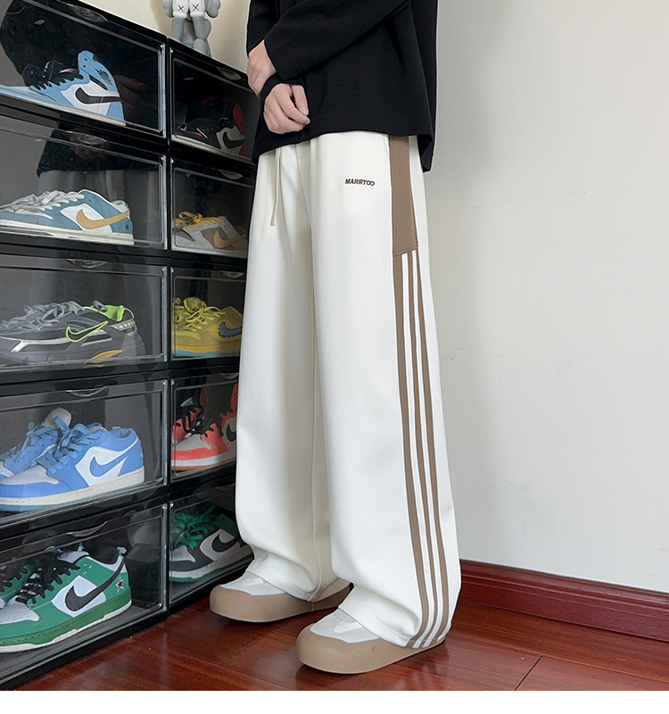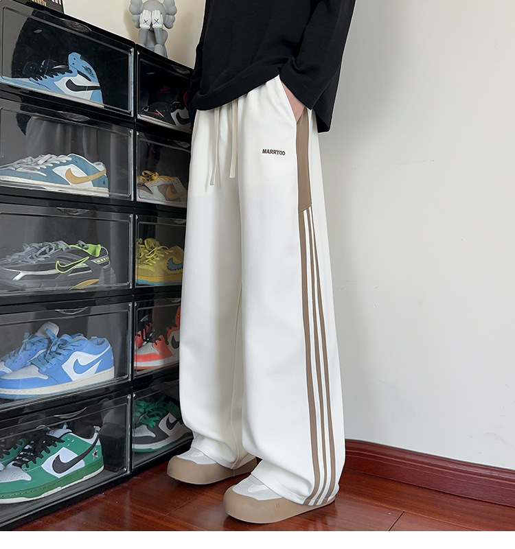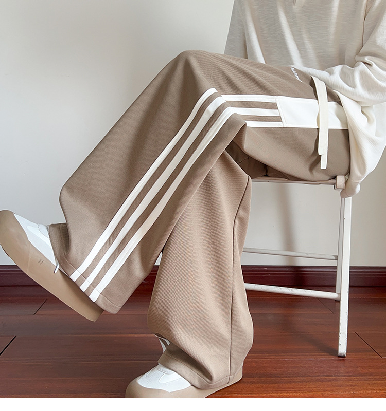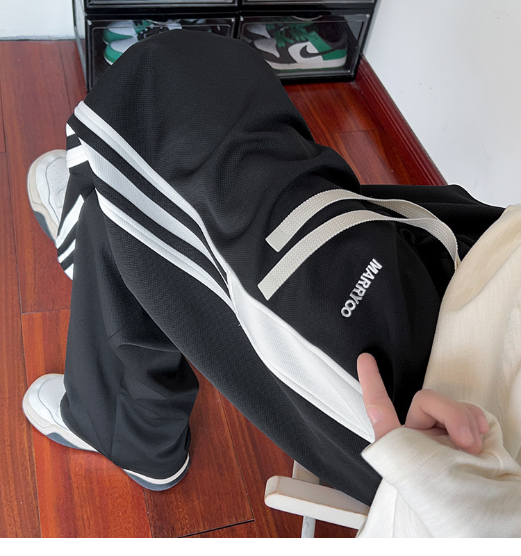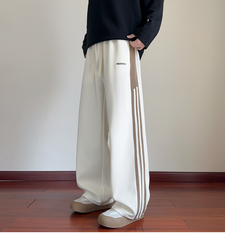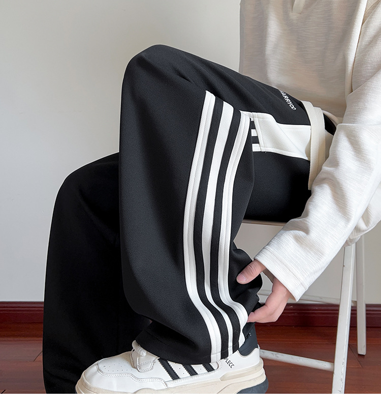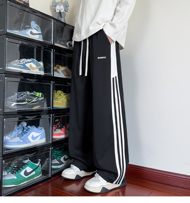 美式潮牌宽松运动侧边条纹三条杠休闲阔腿港风直筒垂感长裤KL3208 商品图0