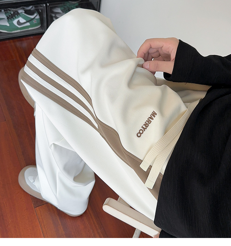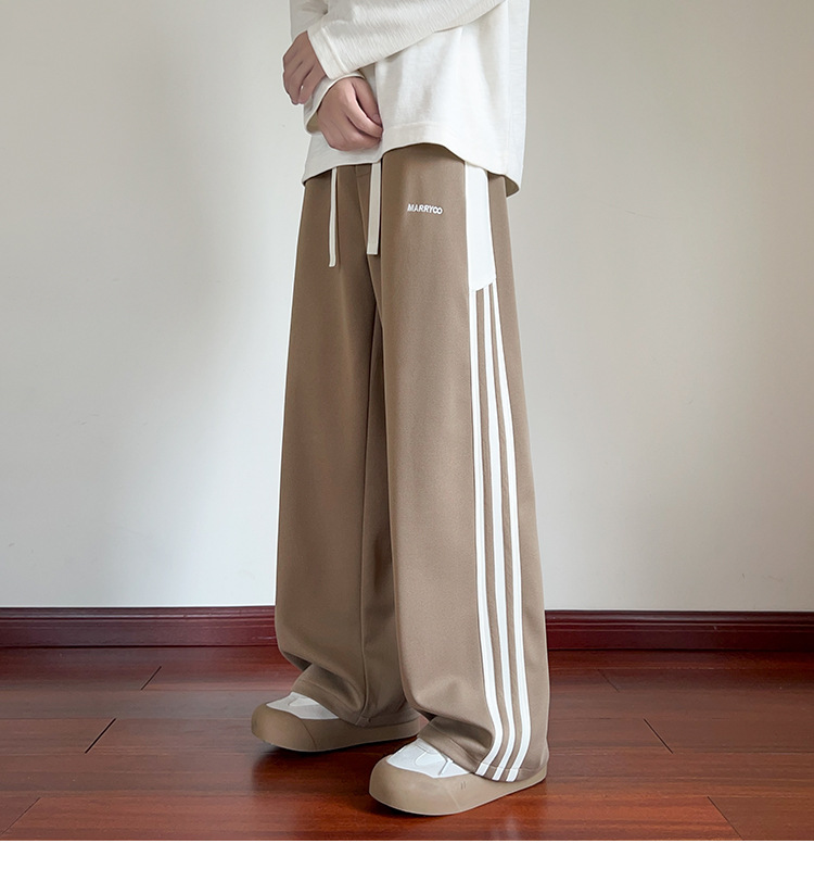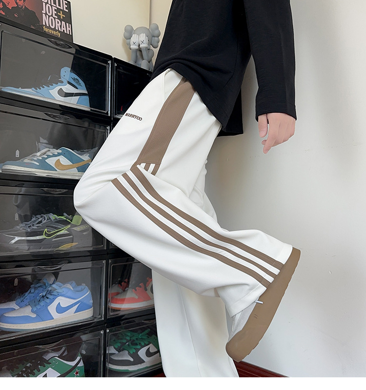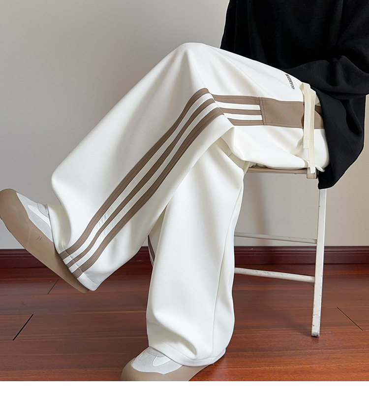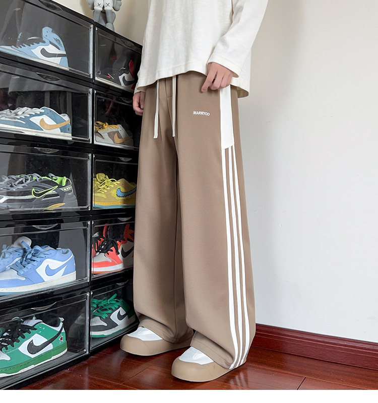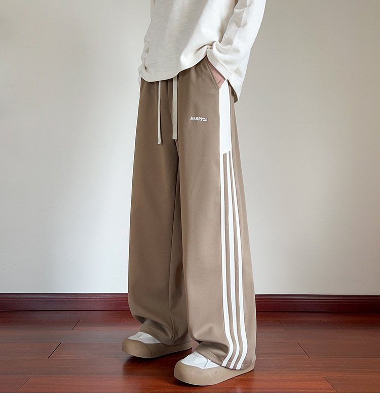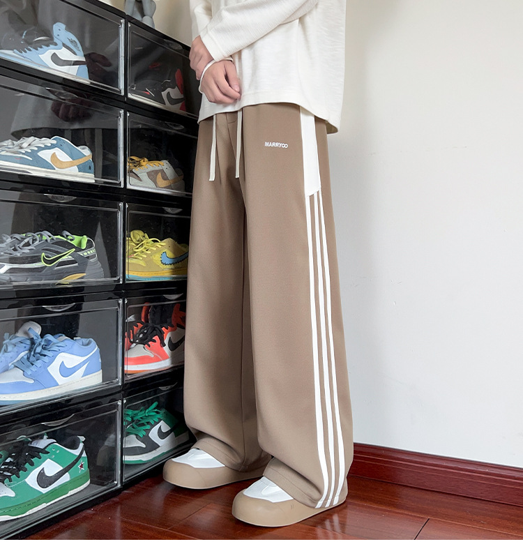 美式潮牌宽松运动侧边条纹三条杠休闲阔腿港风直筒垂感长裤KL3208 商品图0