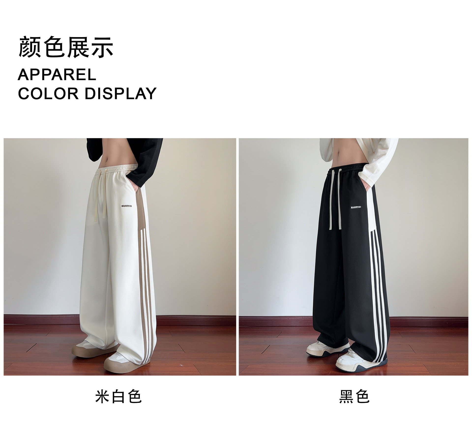 美式潮牌宽松运动侧边条纹三条杠休闲阔腿港风直筒垂感长裤KL3208 商品图5