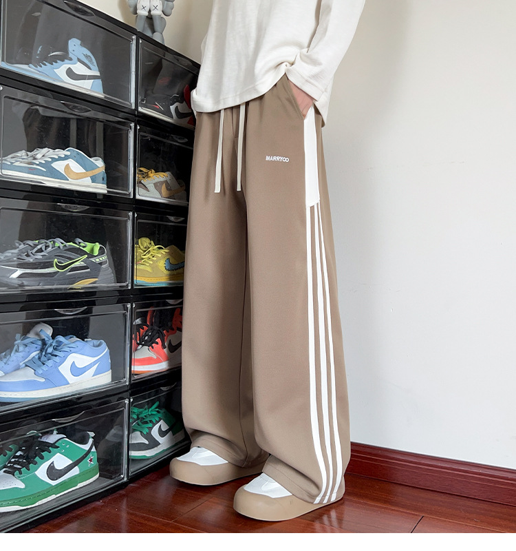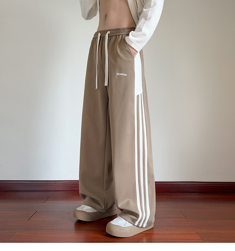 美式潮牌宽松运动侧边条纹三条杠休闲阔腿港风直筒垂感长裤KL3208