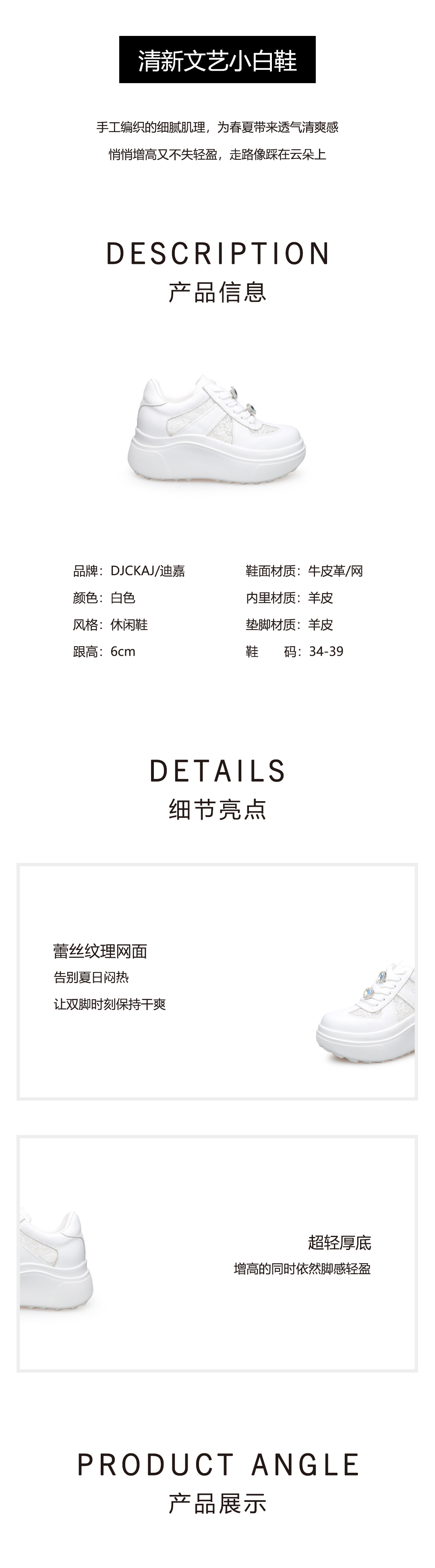 豪麟名鞋奥莱迪嘉女鞋时尚休闲鞋牛皮革/网DJXXO61WX212白色 原价1960元