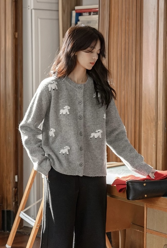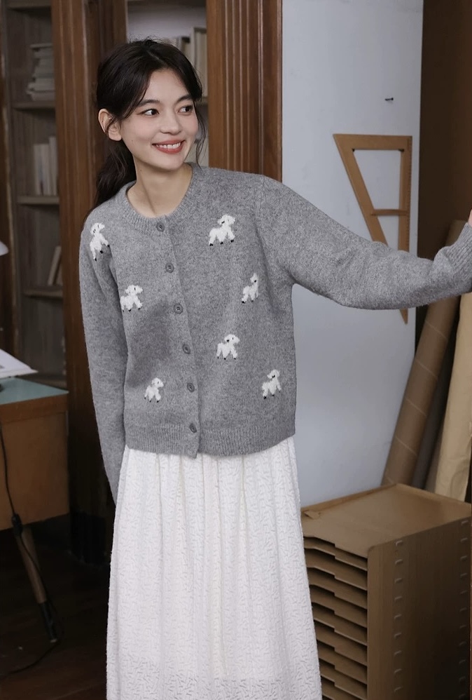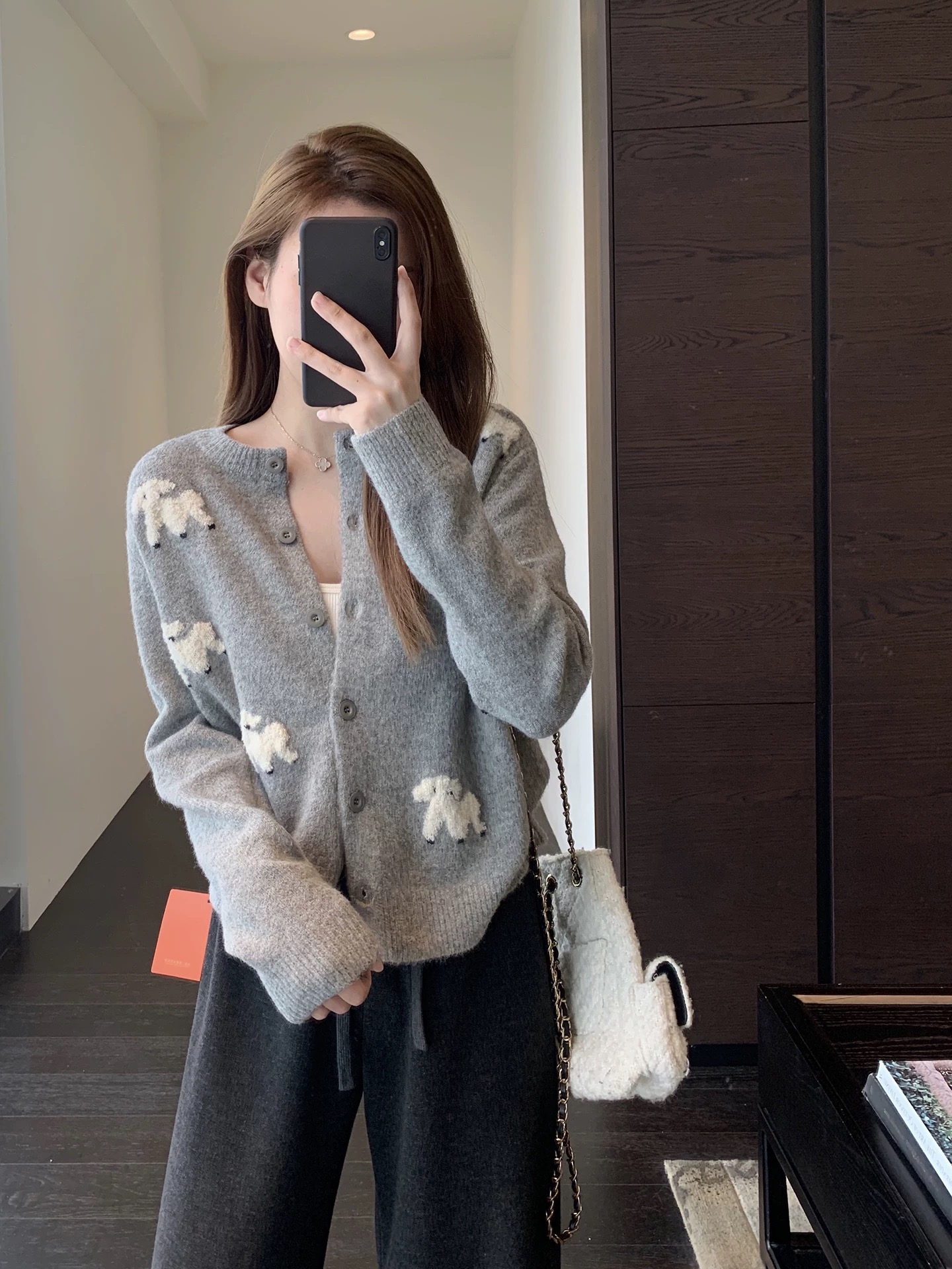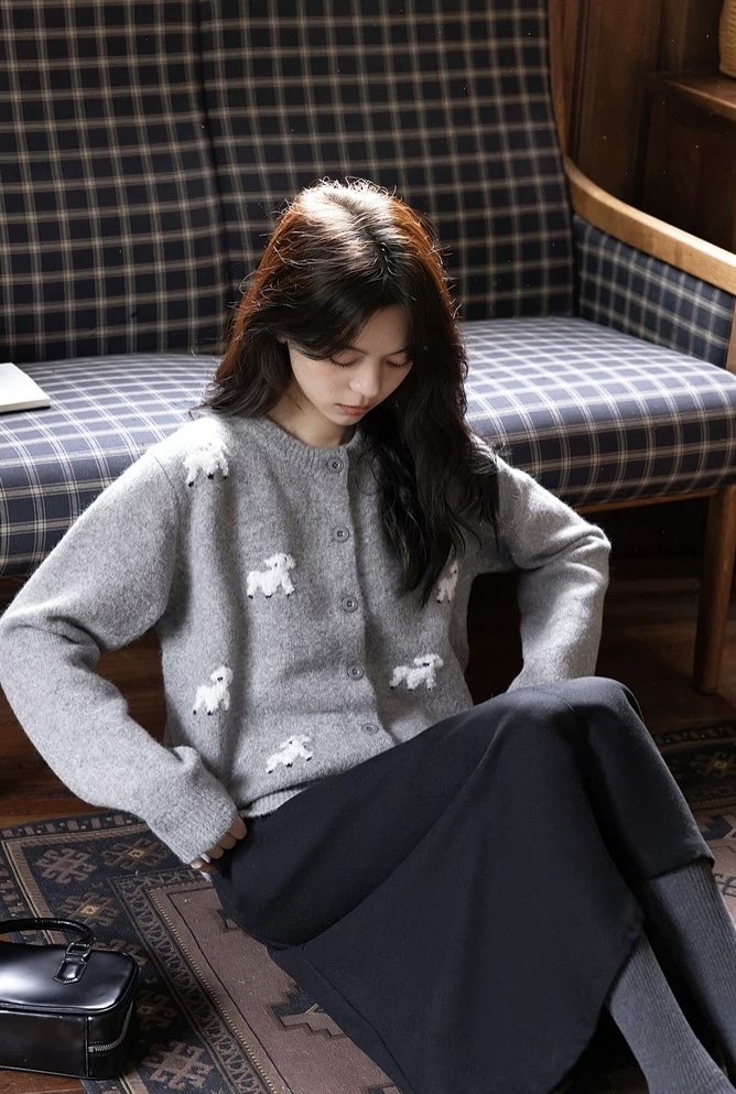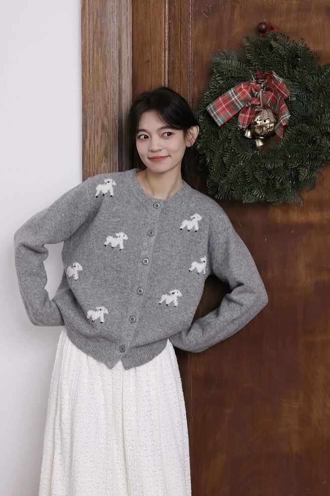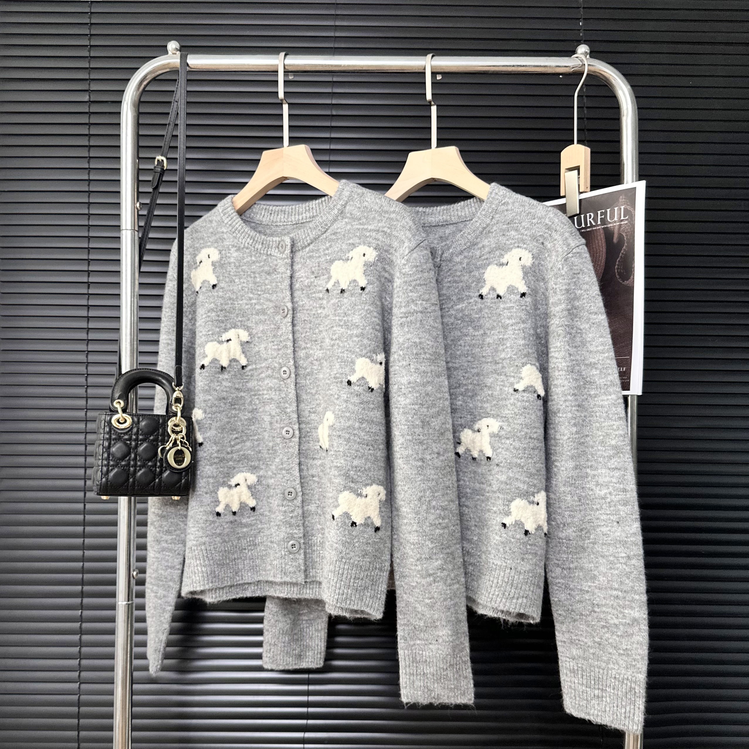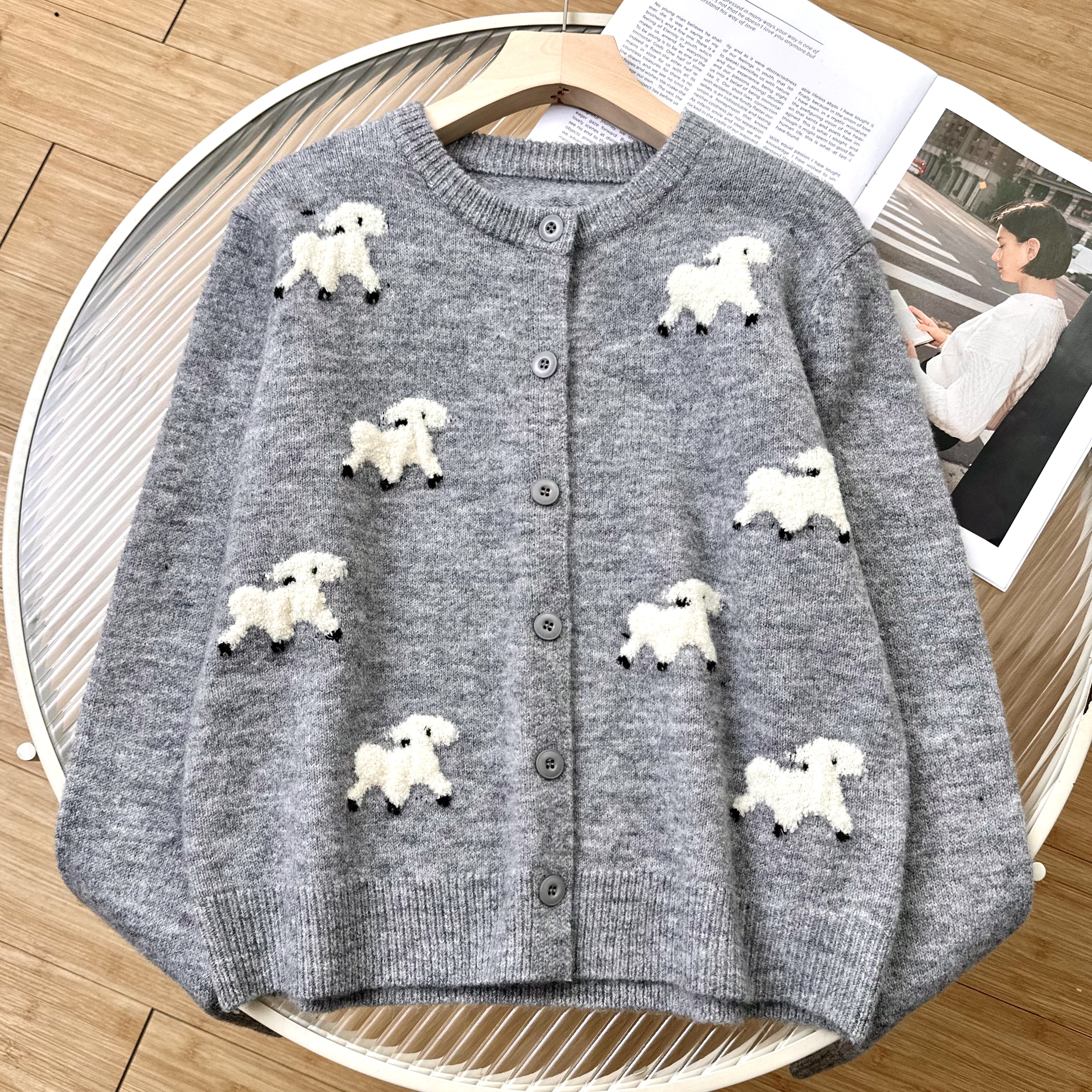 【立体提花趣味减龄针织开衫M9148】软 fufu 的浅灰色打底 + 立体小羊图案,又乖又萌,直接把 “减龄” 焊在身上,甜度直接拉满~-MFHS