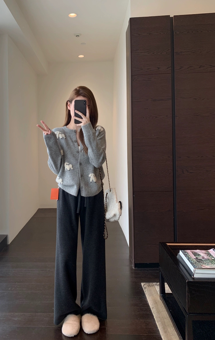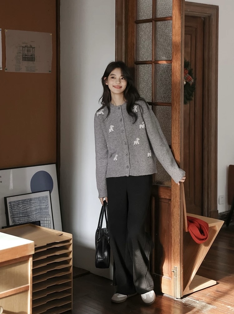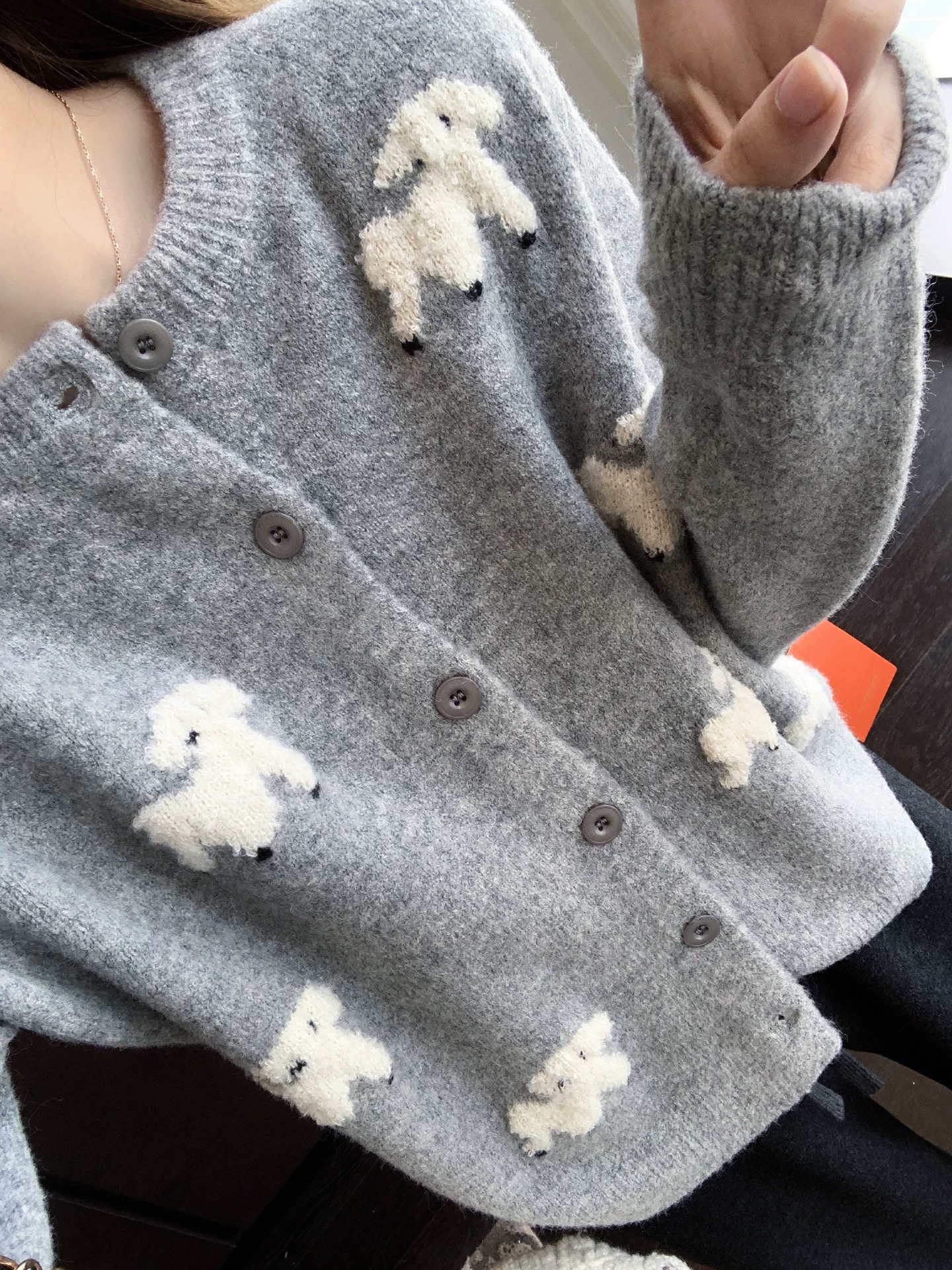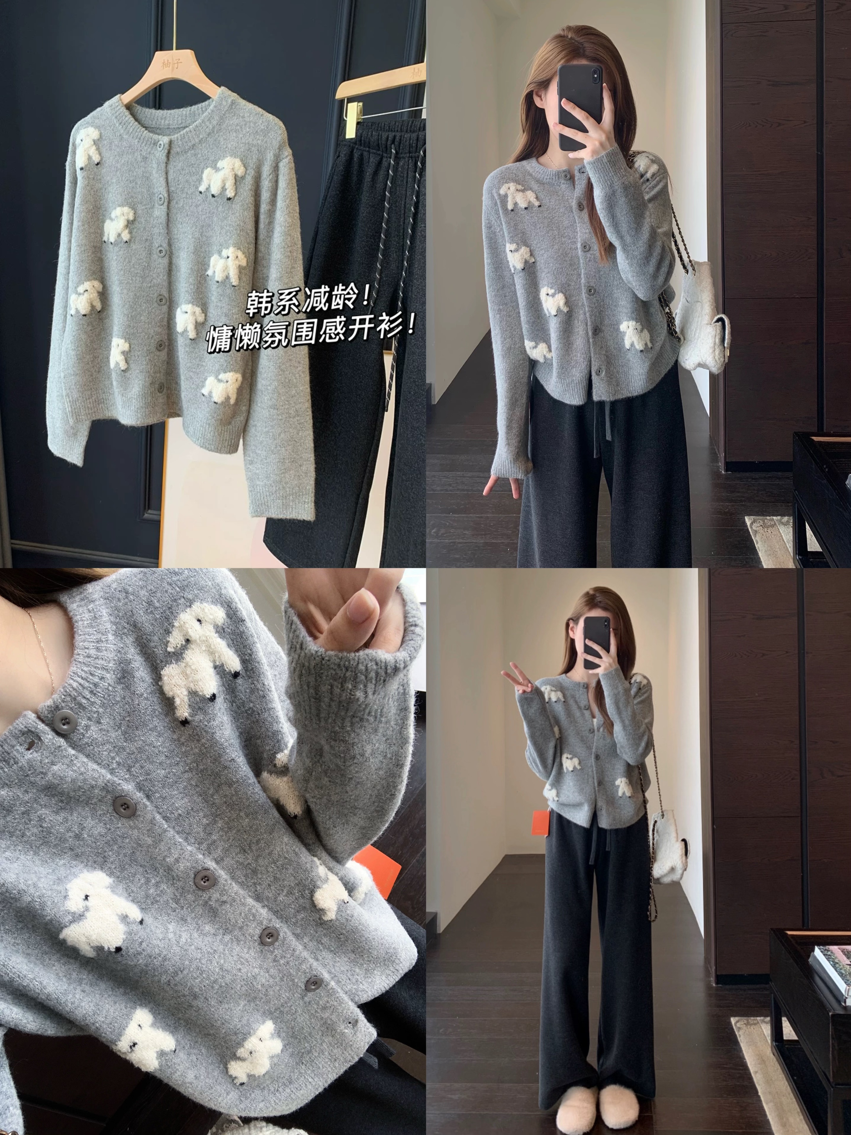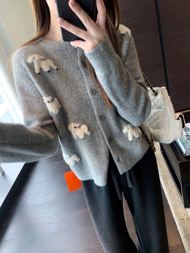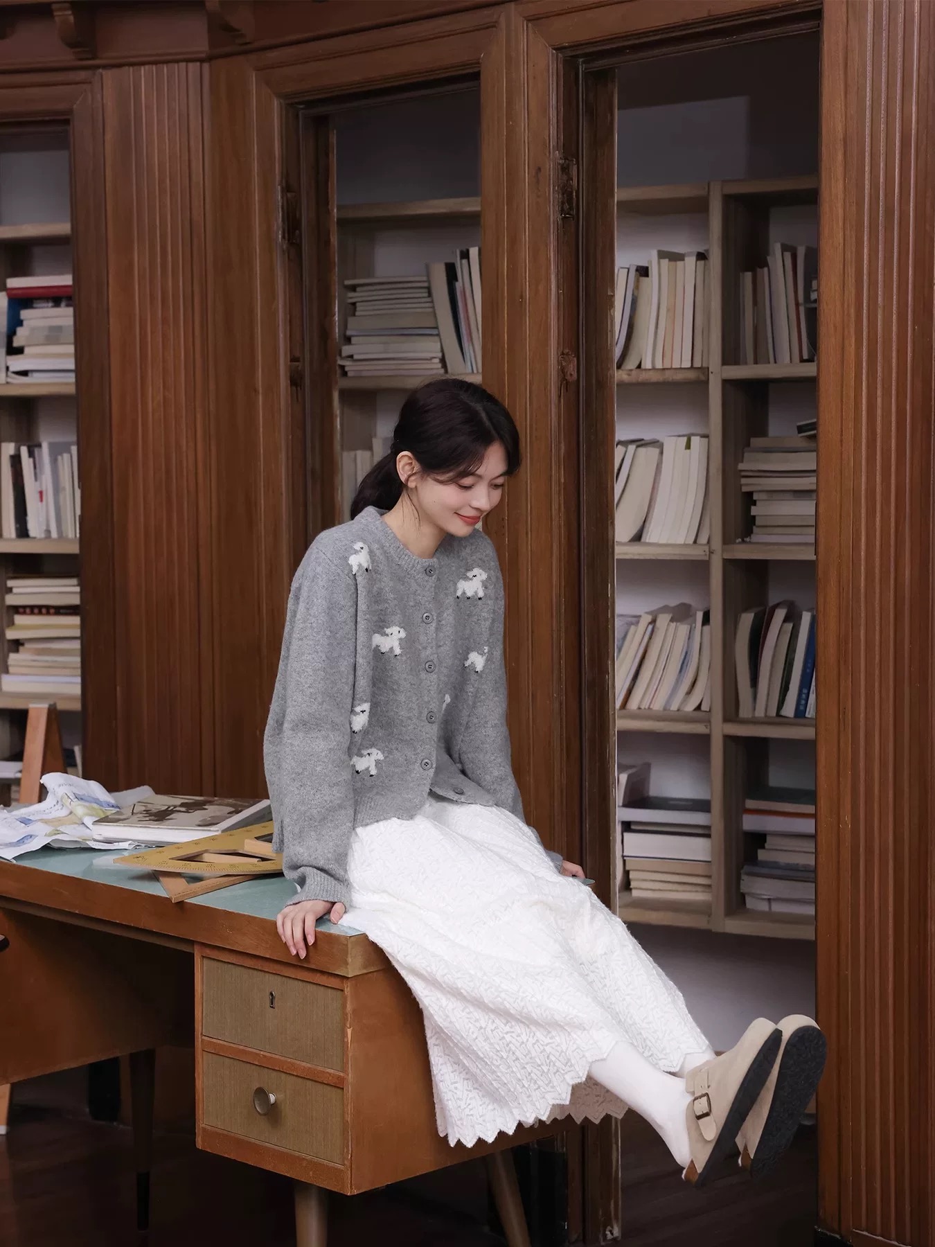 【立体提花趣味减龄针织开衫M9148】软 fufu 的浅灰色打底 + 立体小羊图案,又乖又萌,直接把 “减龄” 焊在身上,甜度直接拉满~-MFHS