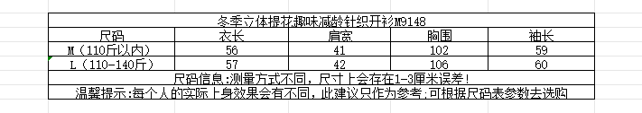 M衣长56胸围102肩宽41袖长59(110斤以内)