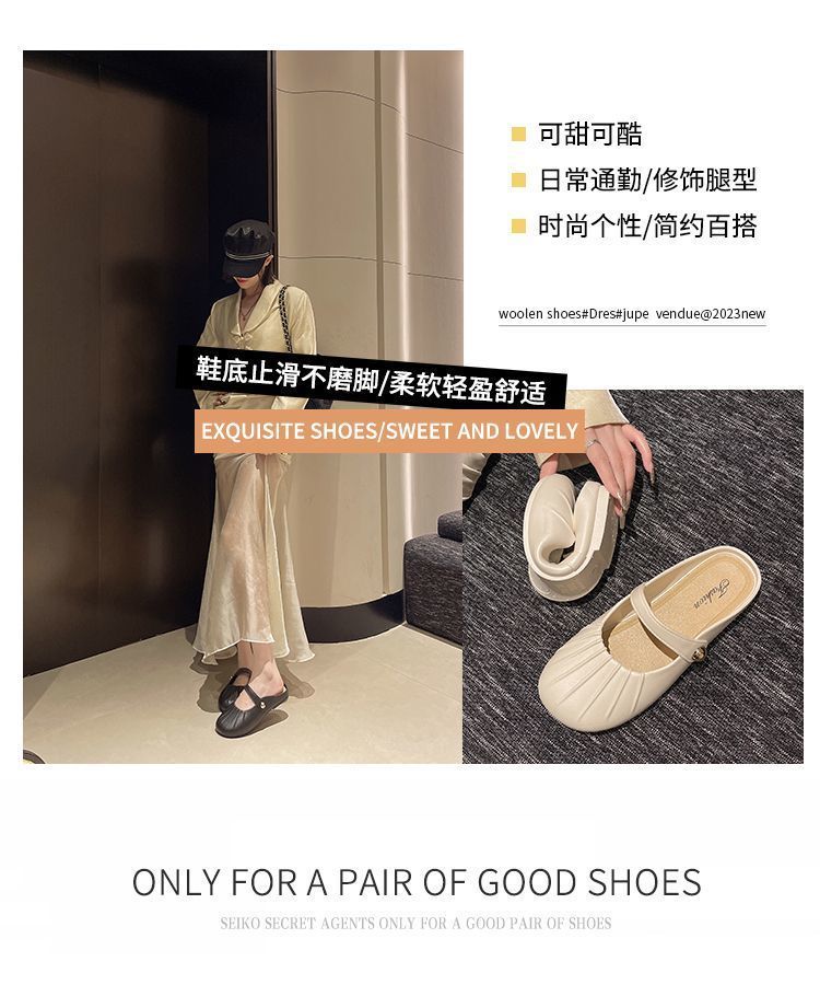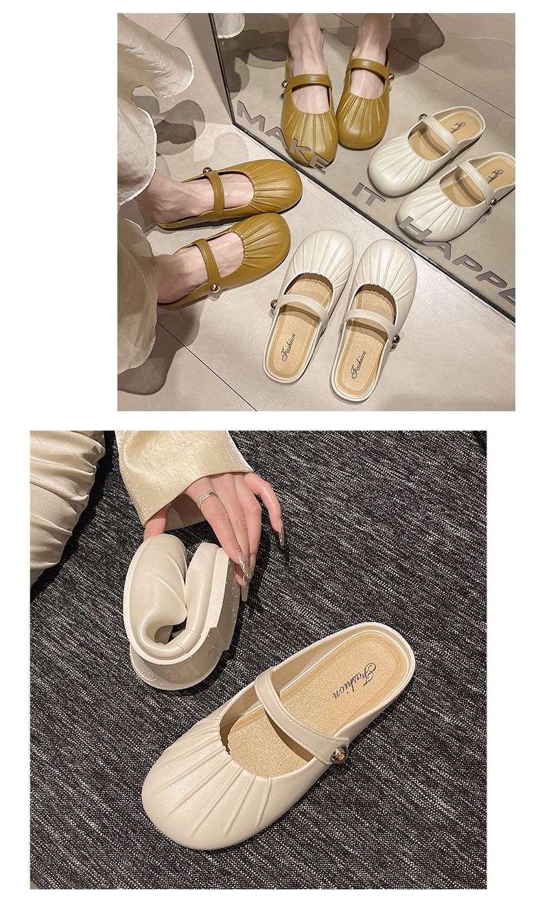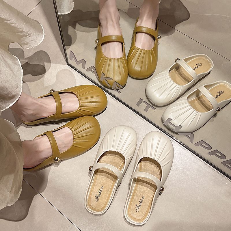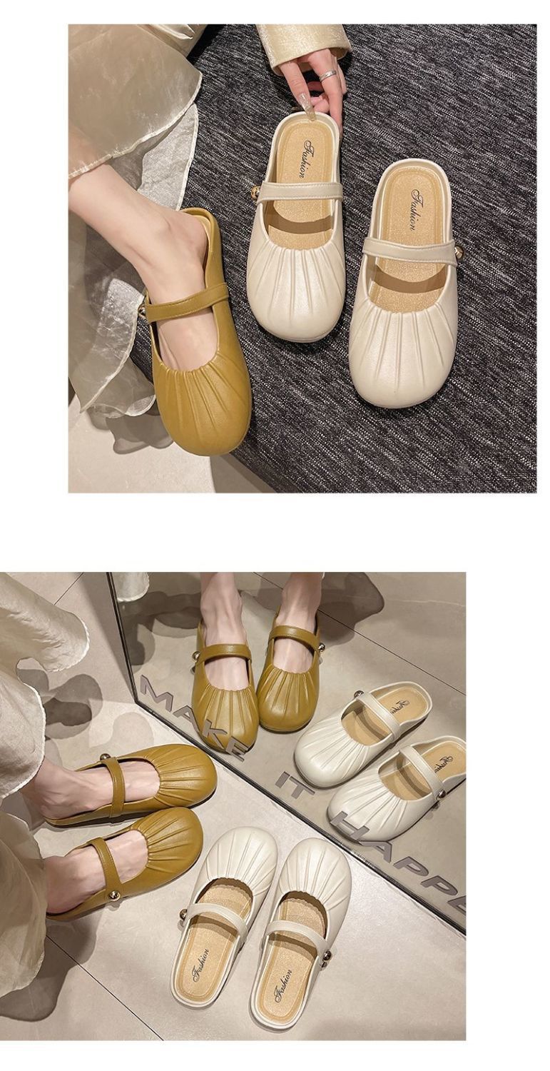 【清仓!25.9任选2对!四季鞋柜必备✨】法式优雅玛丽珍半拖鞋💕百搭又舒适,小珠点缀尽显精致感!新款法式玛丽珍褶皱女单鞋休闲百搭风侧边小珠子无后跟半拖鞋