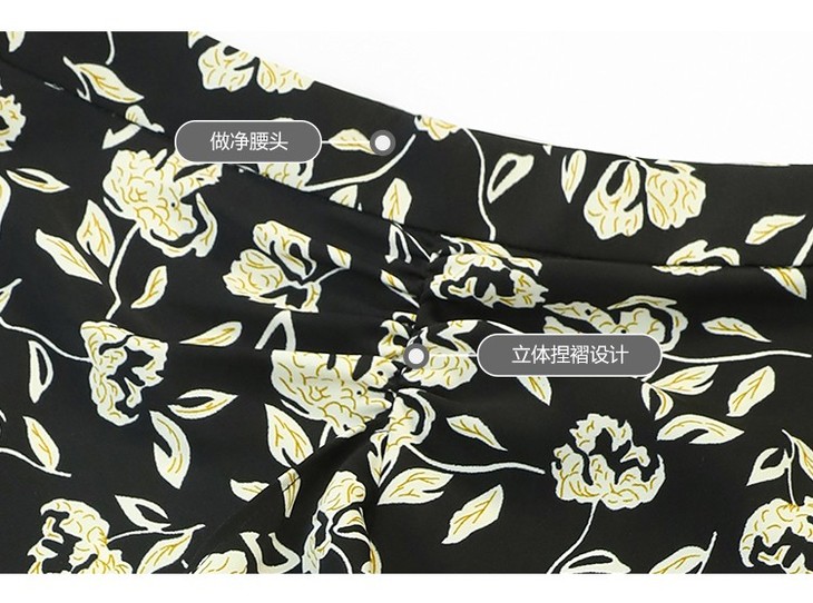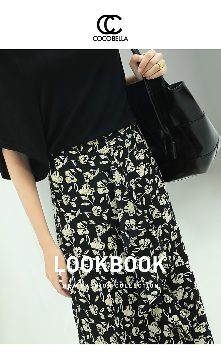 【有赞】COCOBELLA设计感抽褶碎花半身裙女遮胯半裙裹身裙筒裙HS513