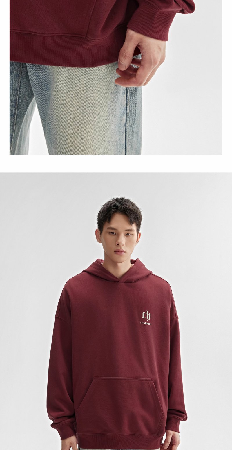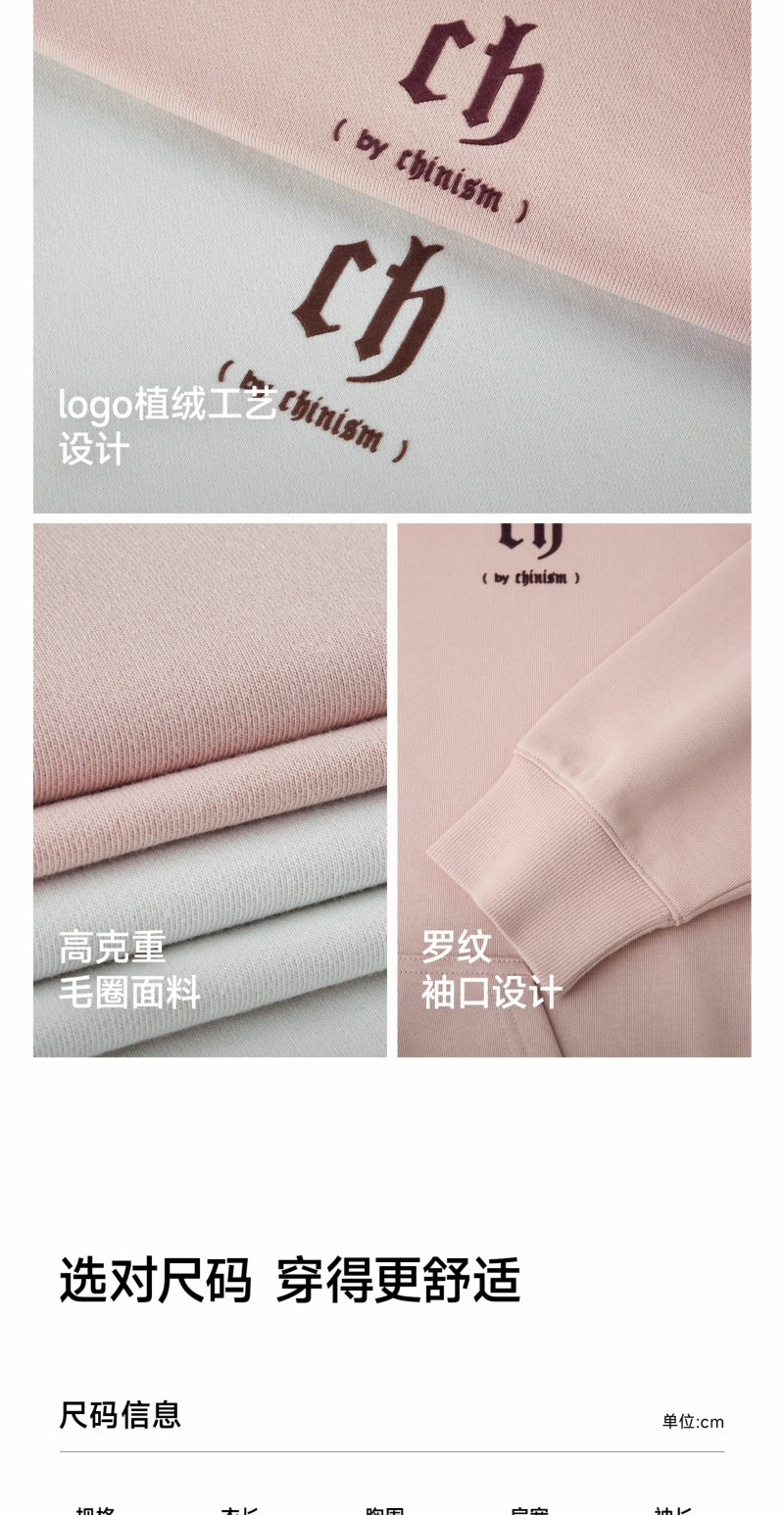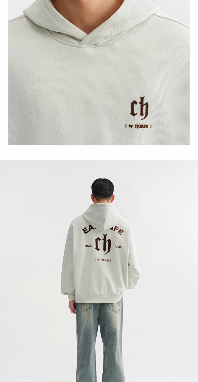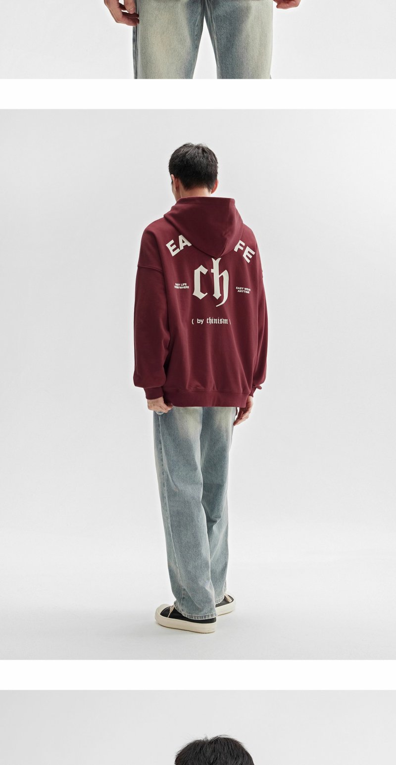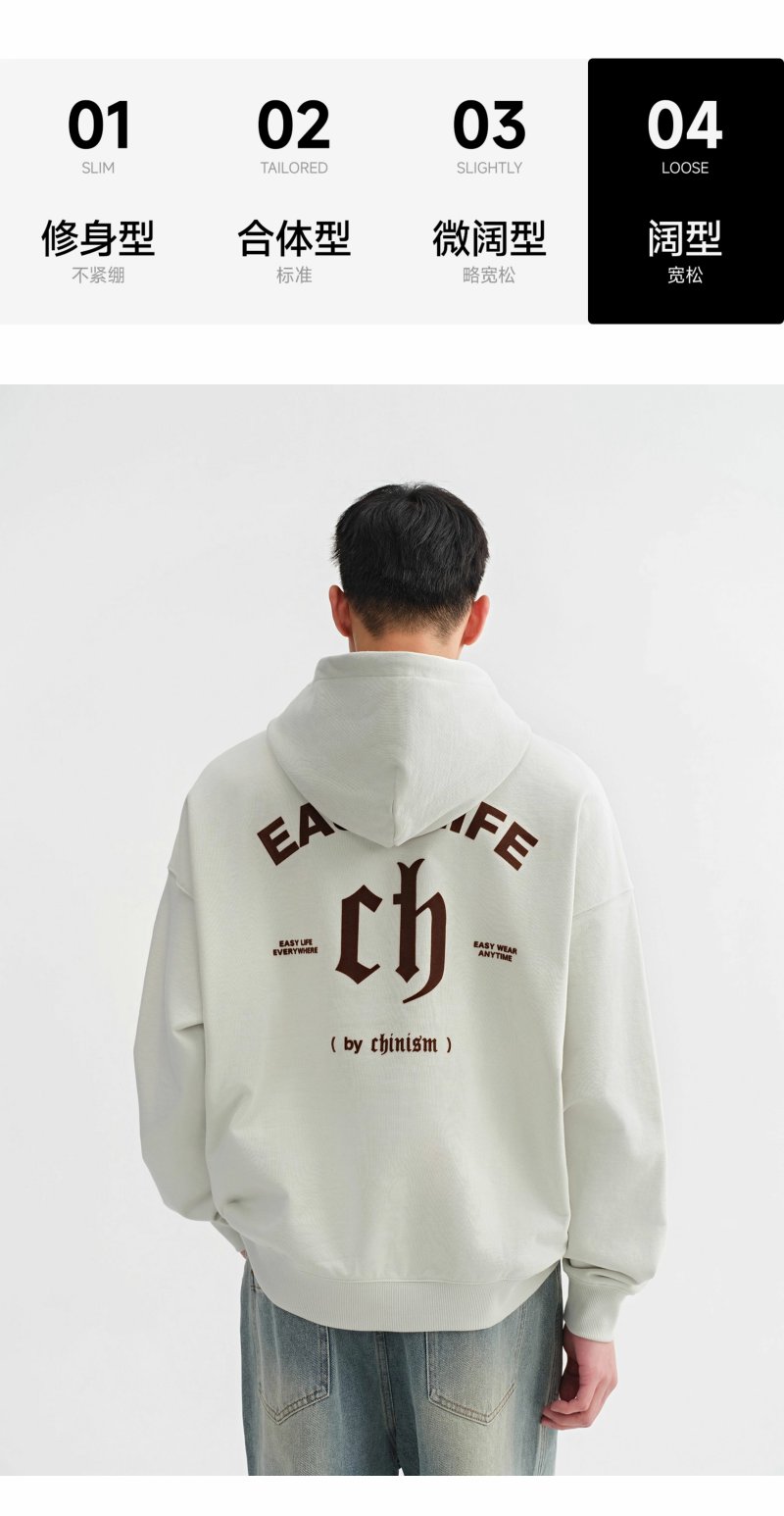 CHINISM赤尘 重磅植绒LOGO连帽卫衣男秋季美式宽松纯棉休闲外套