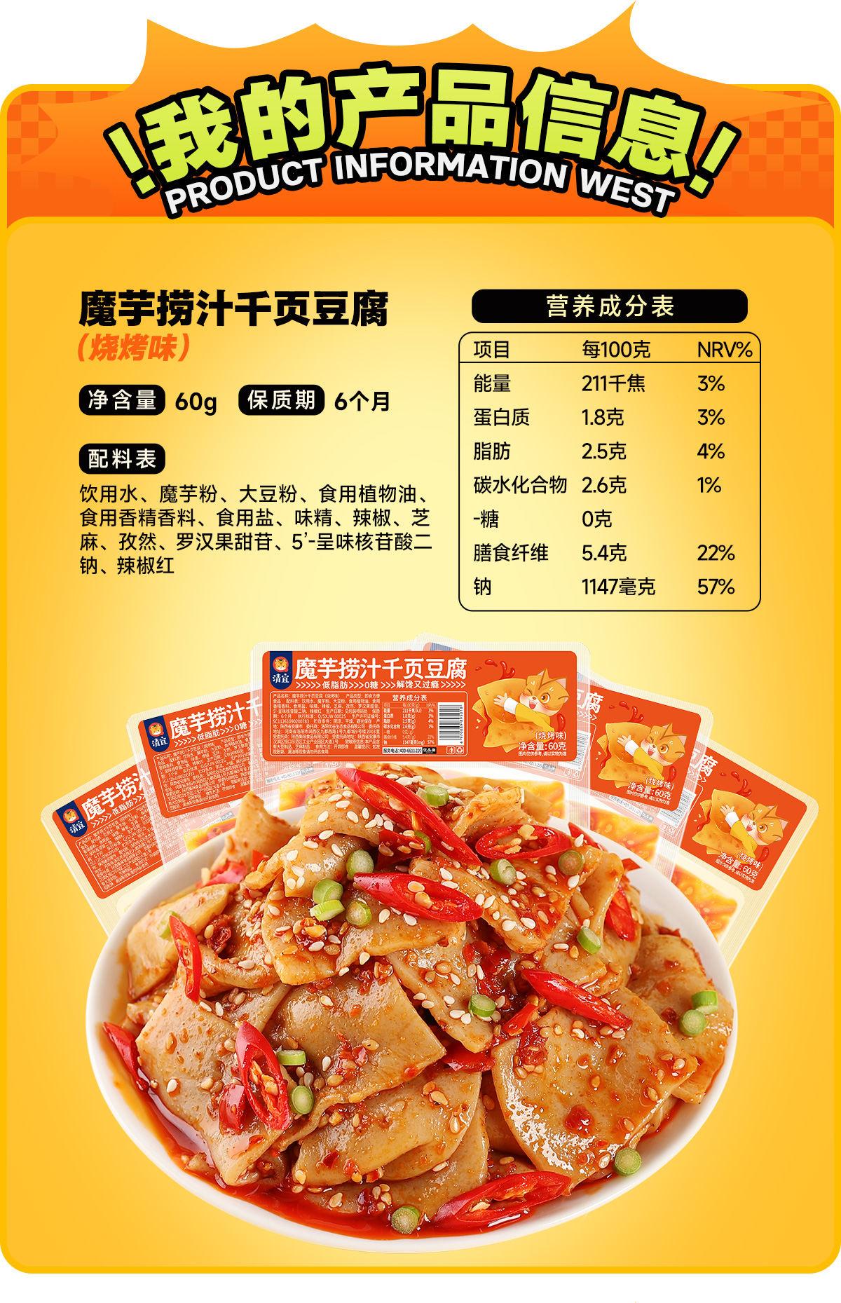 魔芋捞汁千页豆腐60g/袋