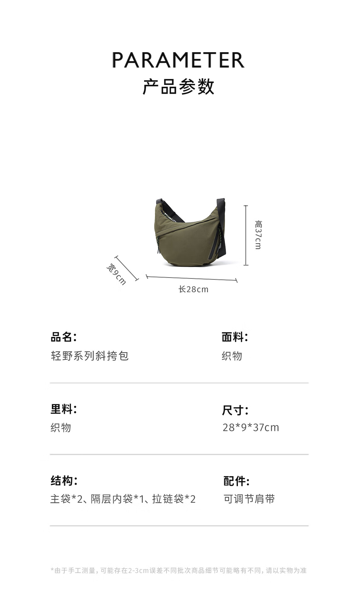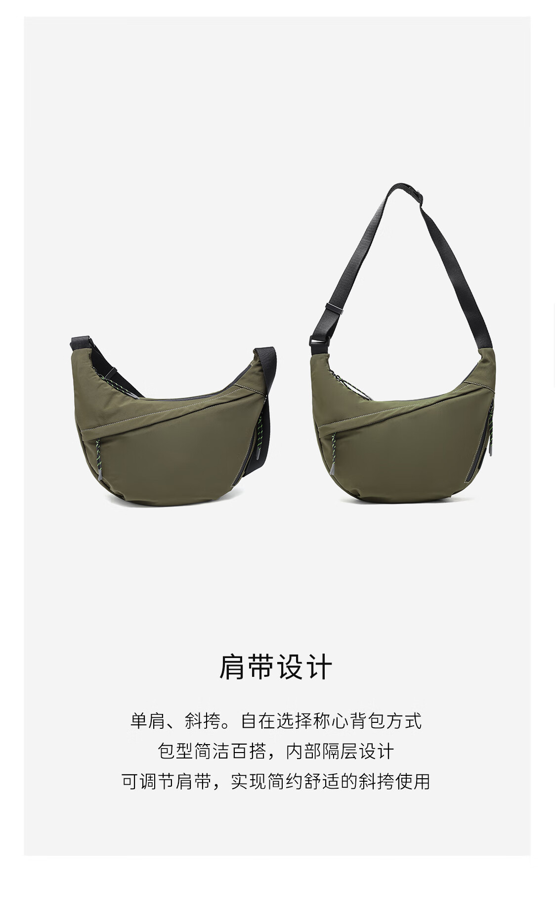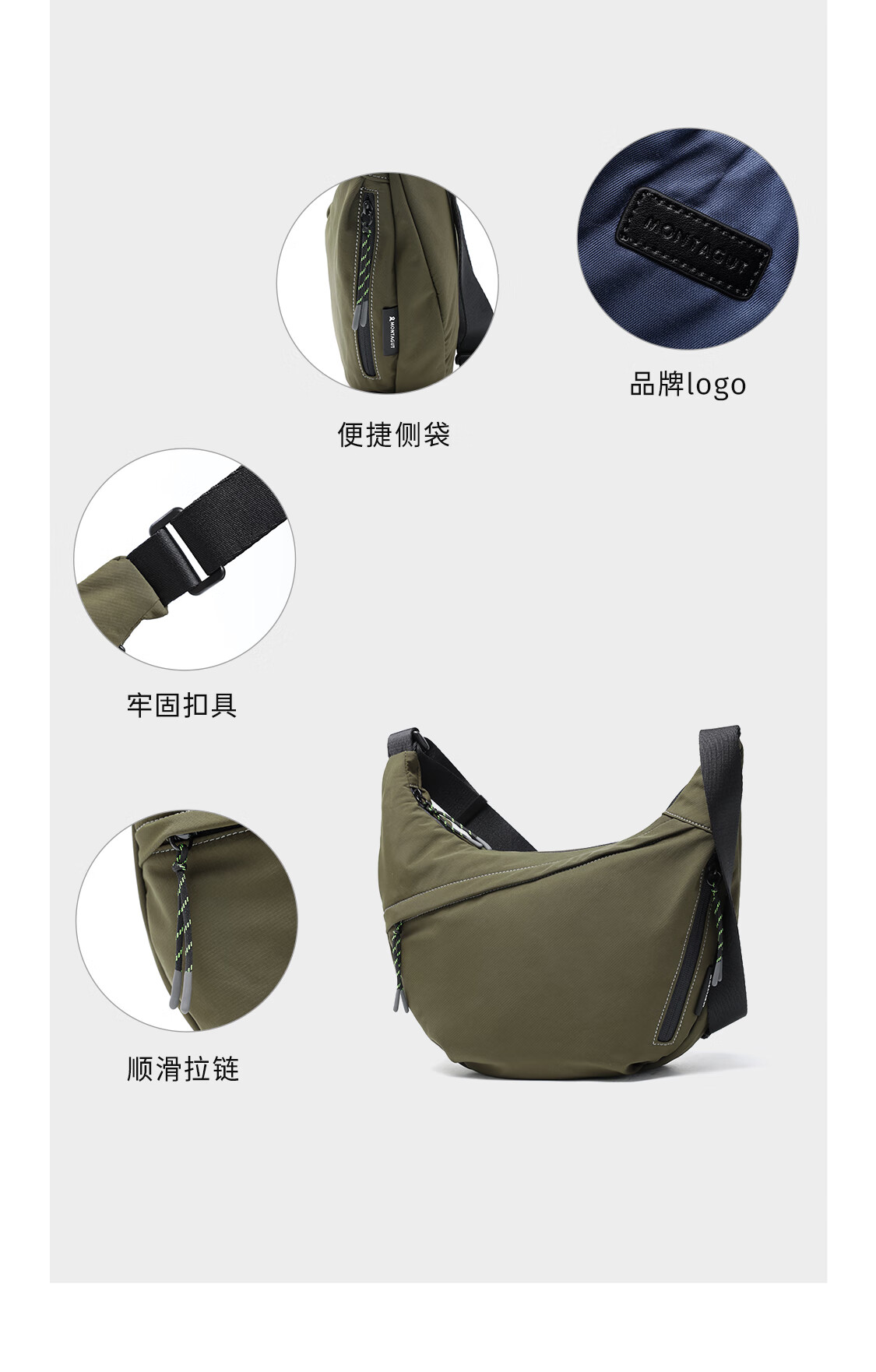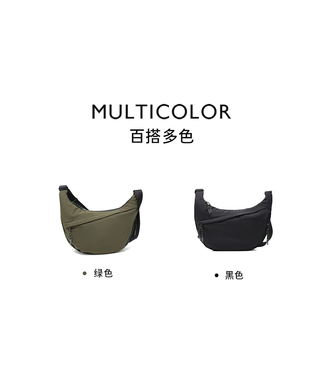 梦特娇中性时尚织物新款弯月包腋下包百搭单肩包运动斜挎包活力饺子包 黑色
