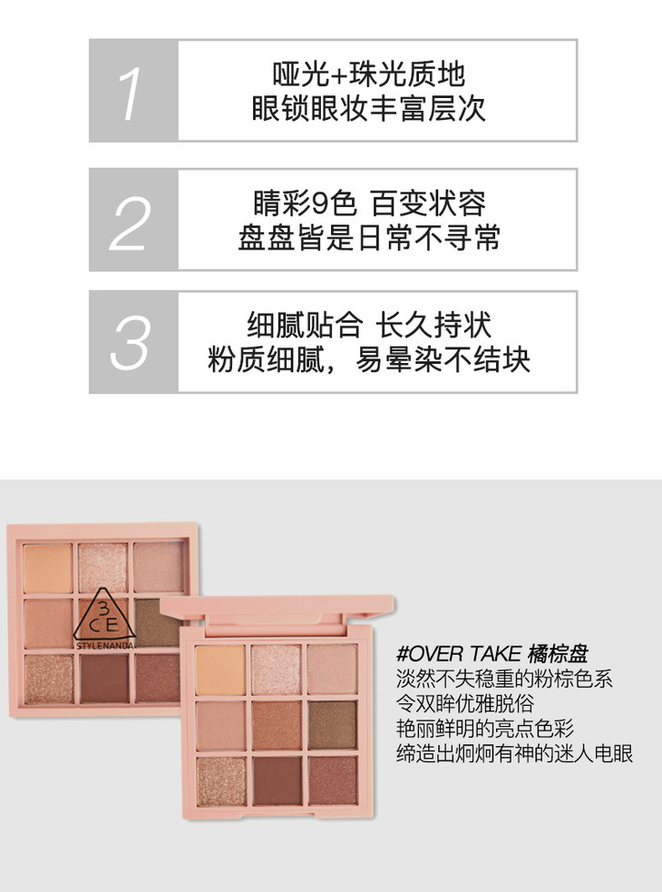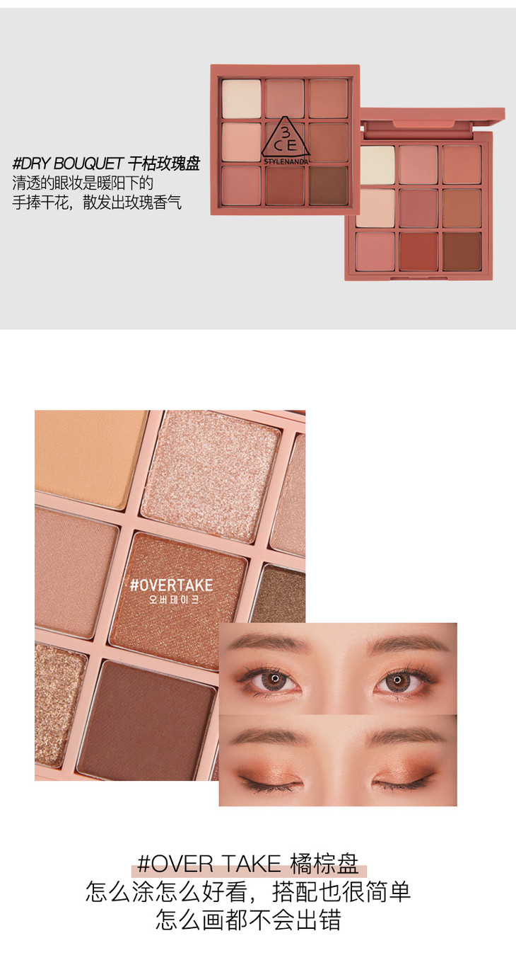 3CE九宫格眼影盘overtake/RAWEUTRALS水泥盘