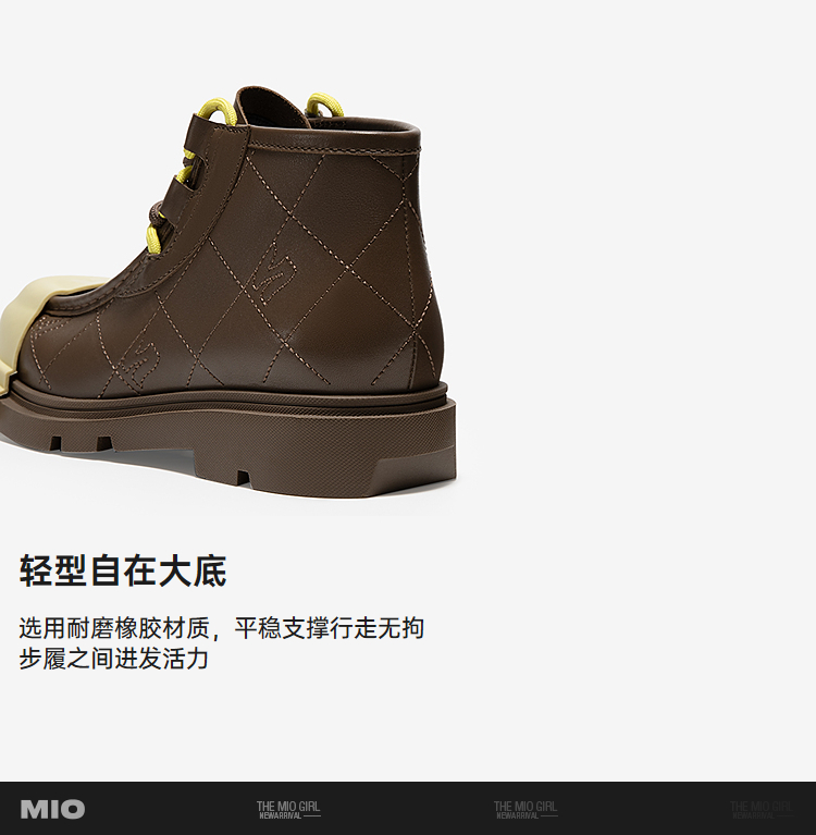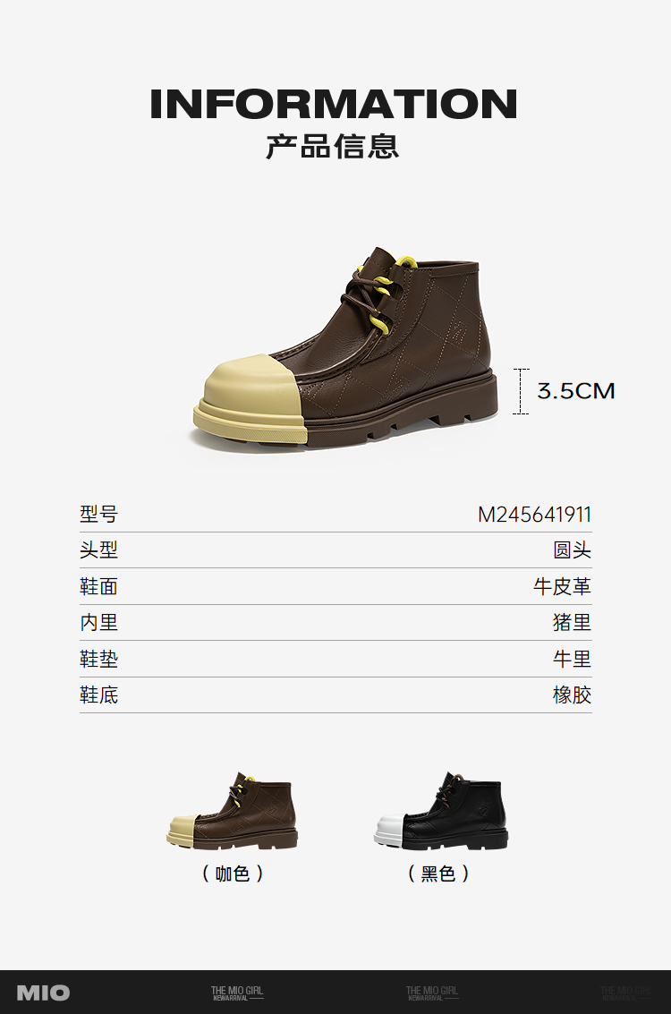 MIO米奥冬季牛皮革时尚潮流高帮鞋撞色设计圆头鞋子女M245641911