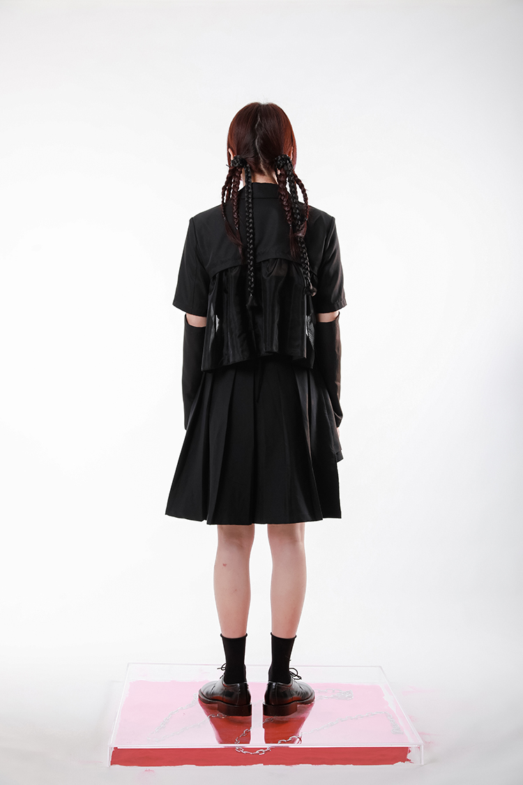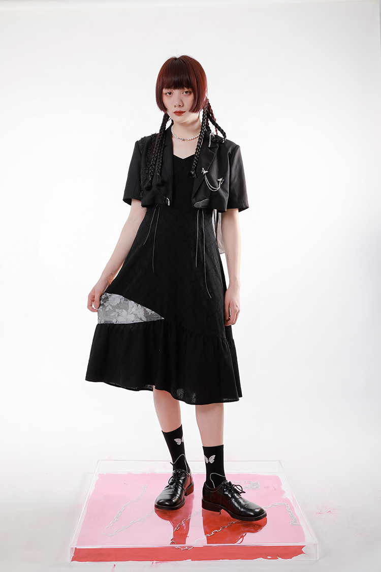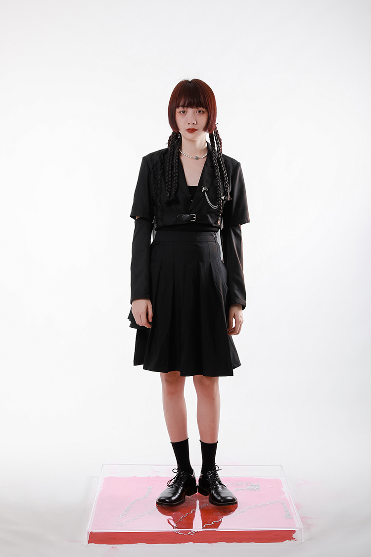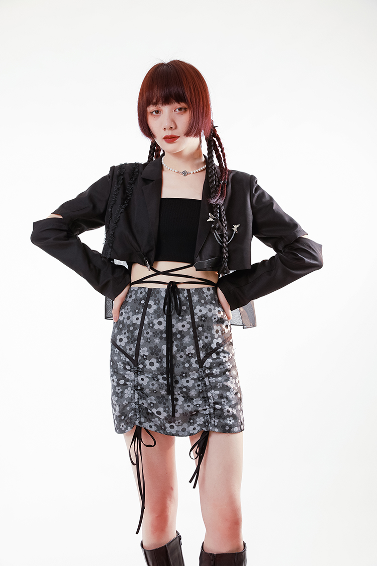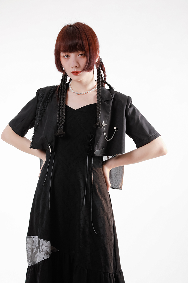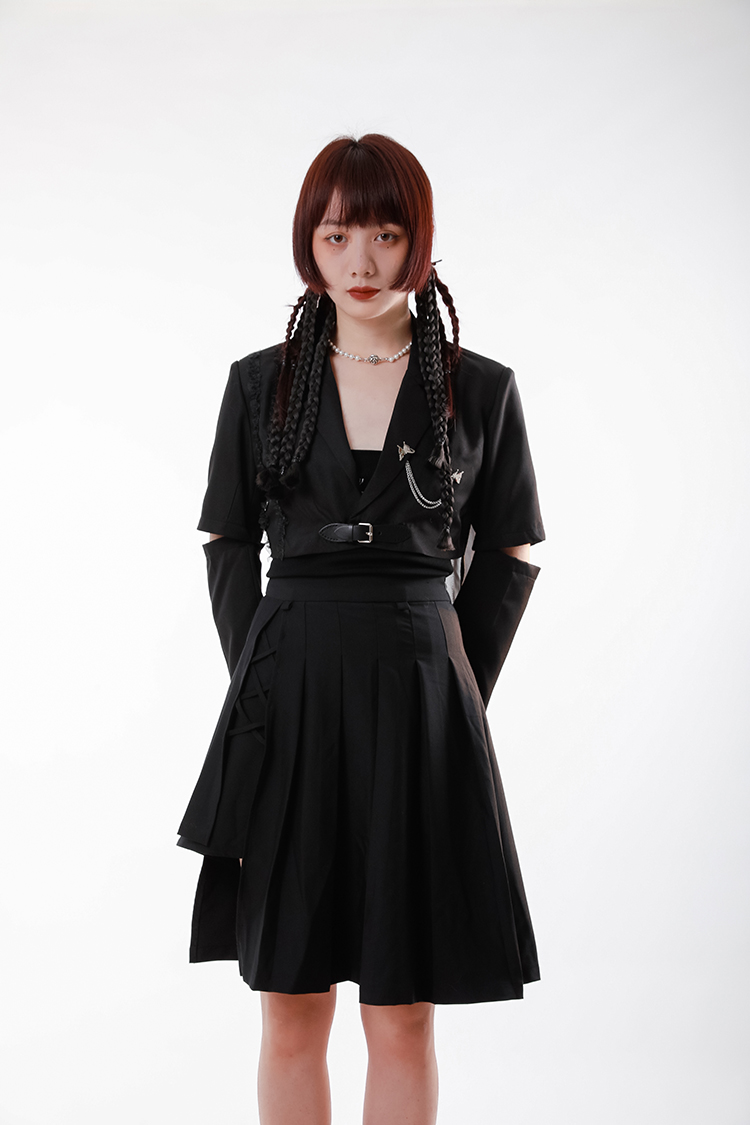 SunsetPark原创设计外套女夏季薄款黑色短袖可拆卸袖皮扣短西装女