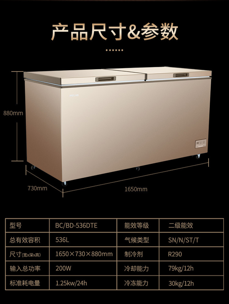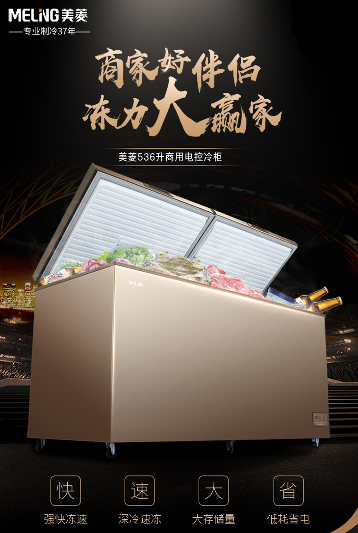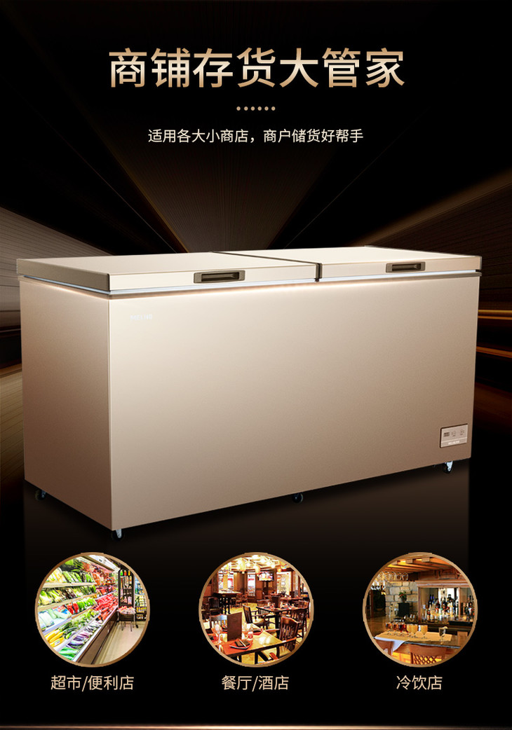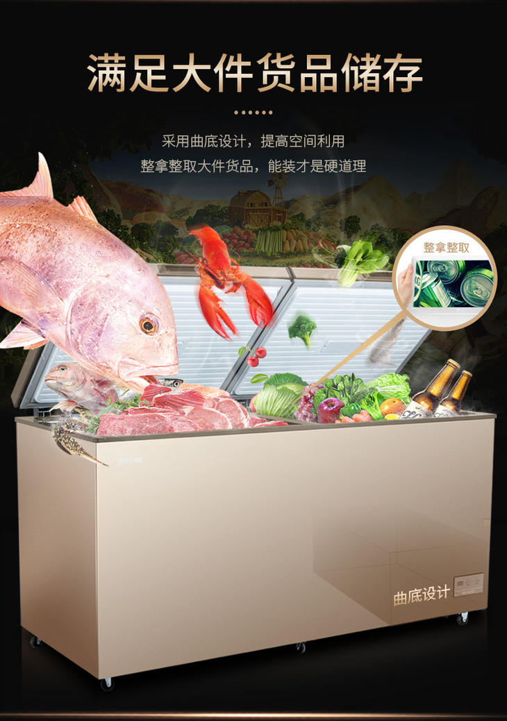 美菱(MELING)BC/BD-536DTE 536升 顶开门卧式冷柜 大容量冰柜 电脑控温