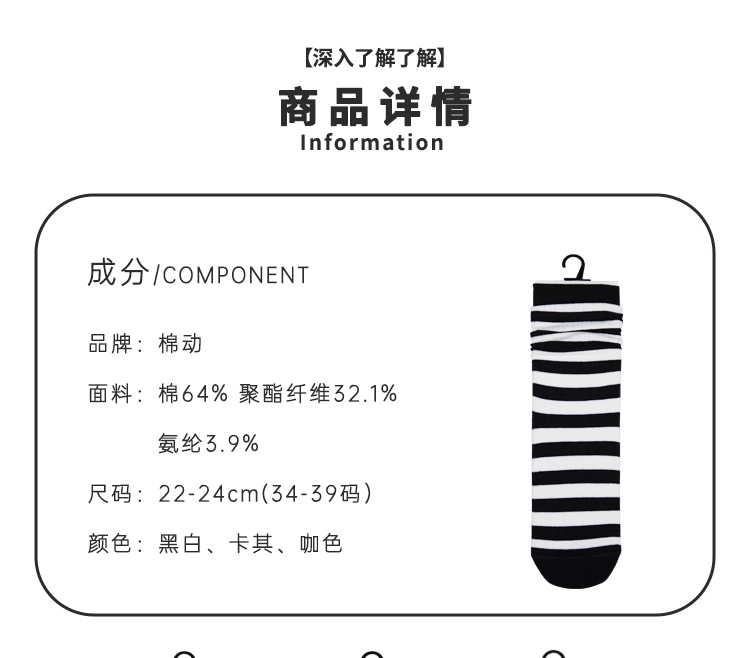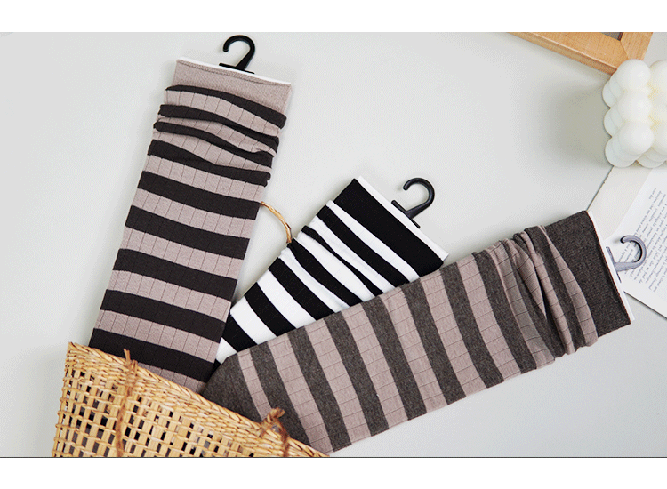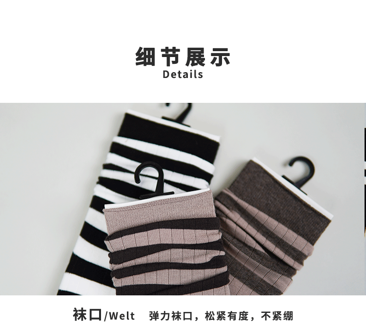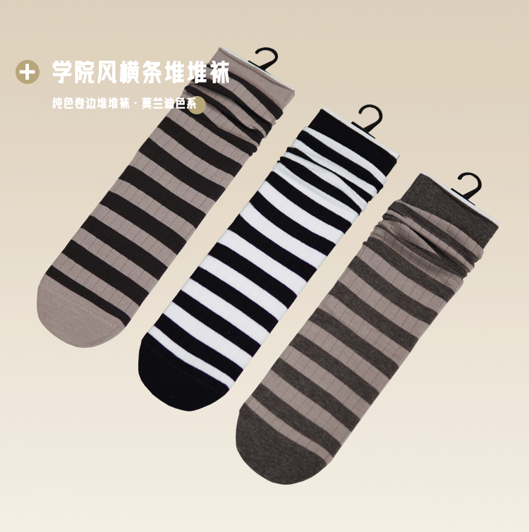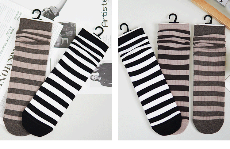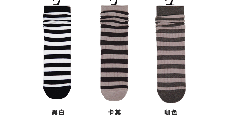 女【2双装 6双6折】丨女士秋冬中筒袜堆堆袜中长筒棉袜条纹袜子女袜【2422207】
