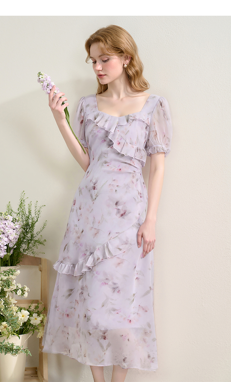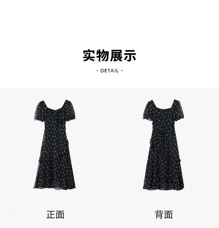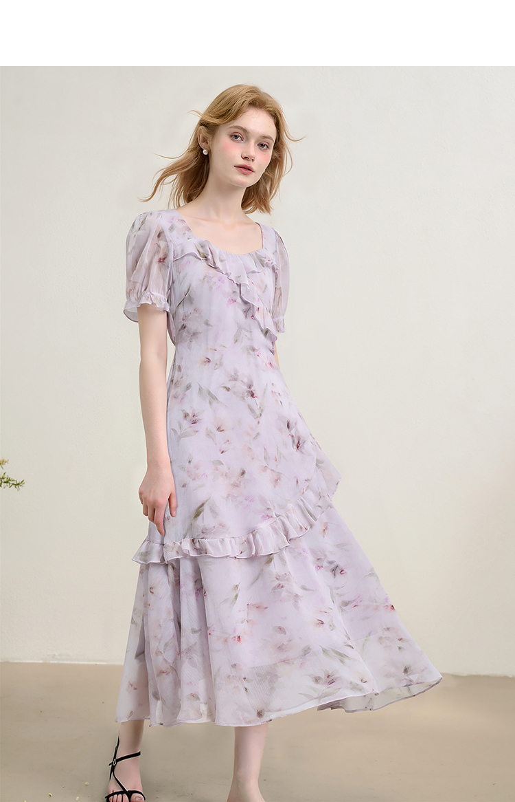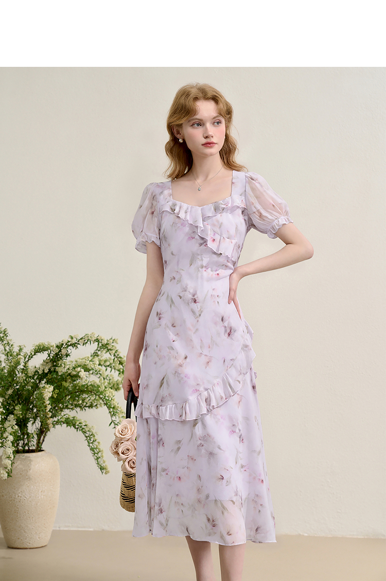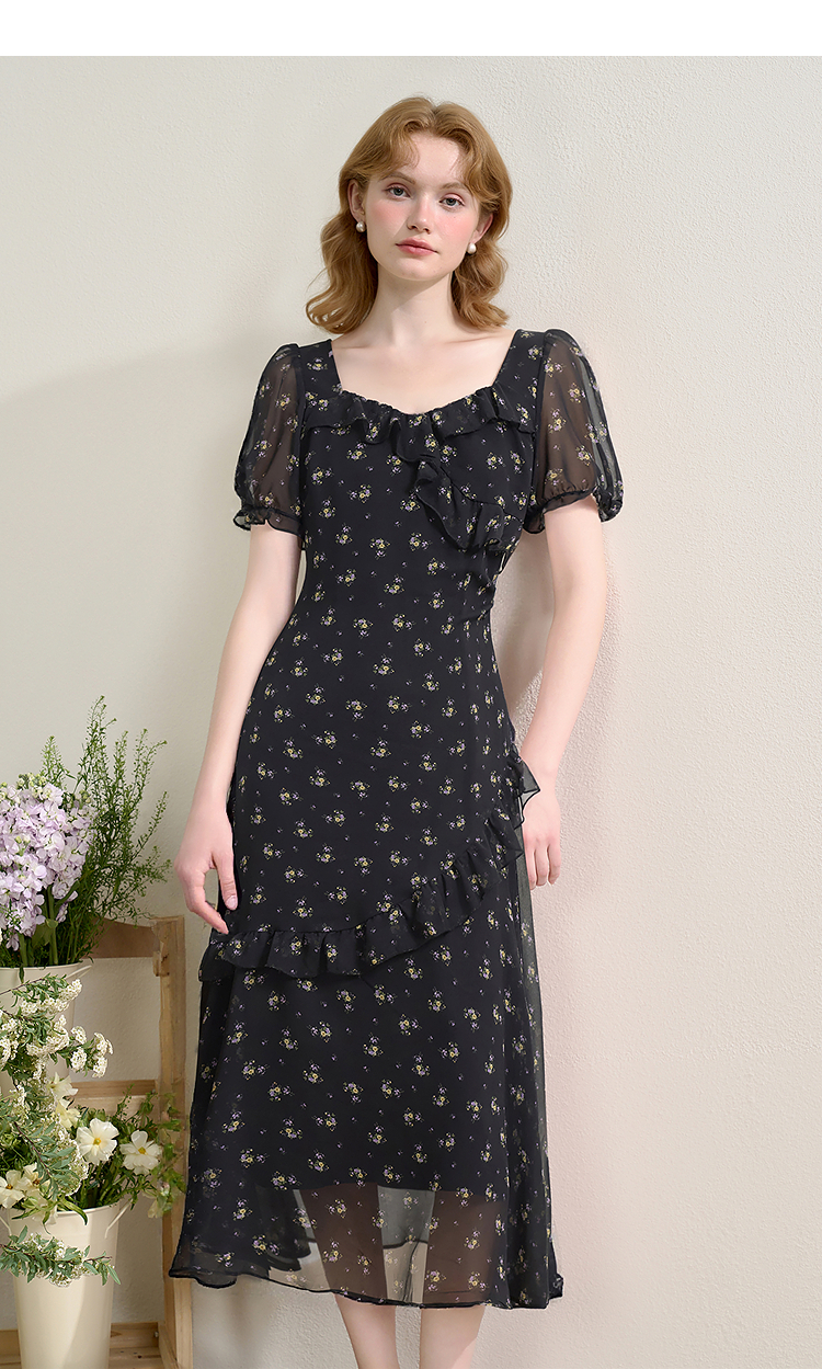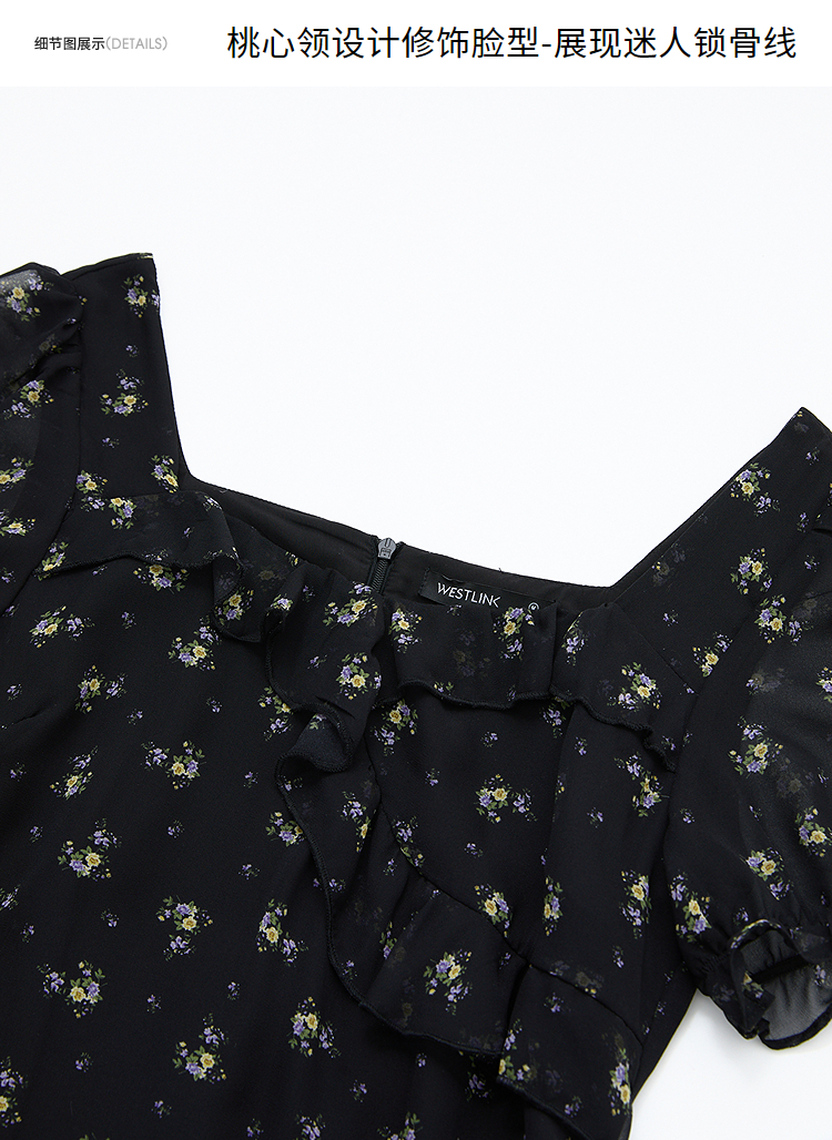 法式浪漫多层荷叶边泡泡袖碎花裙女夏季桃心领连衣裙LXD50830