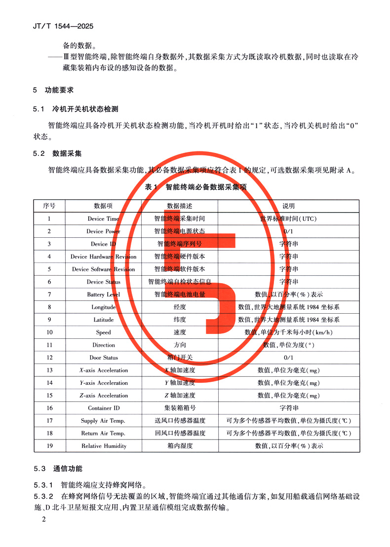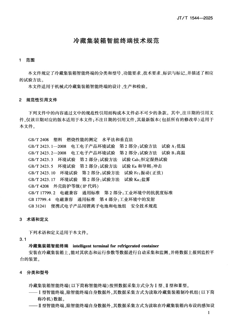 书名:冷藏集装箱智能终端技术规范(JT/T 1544—2025)