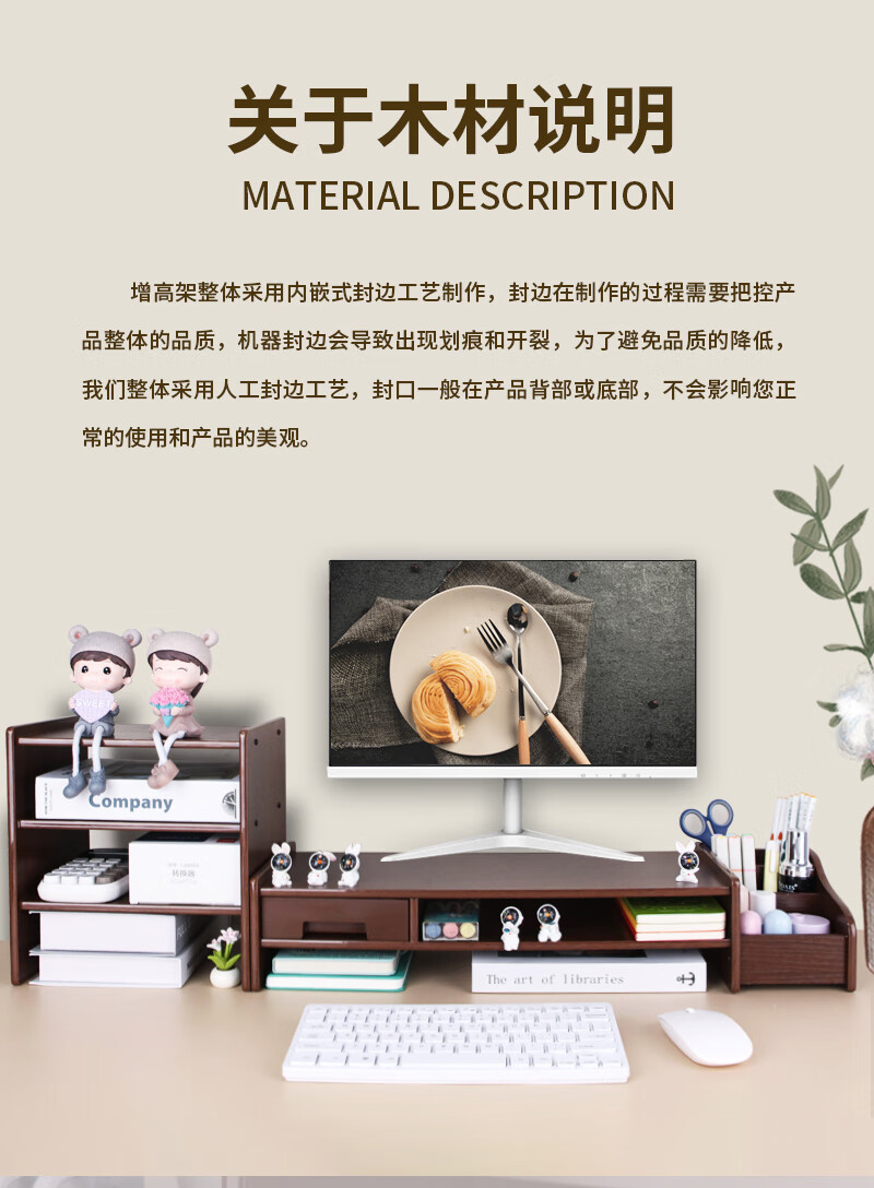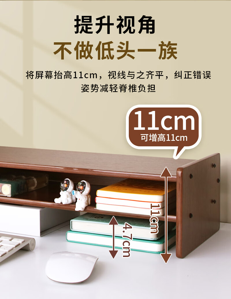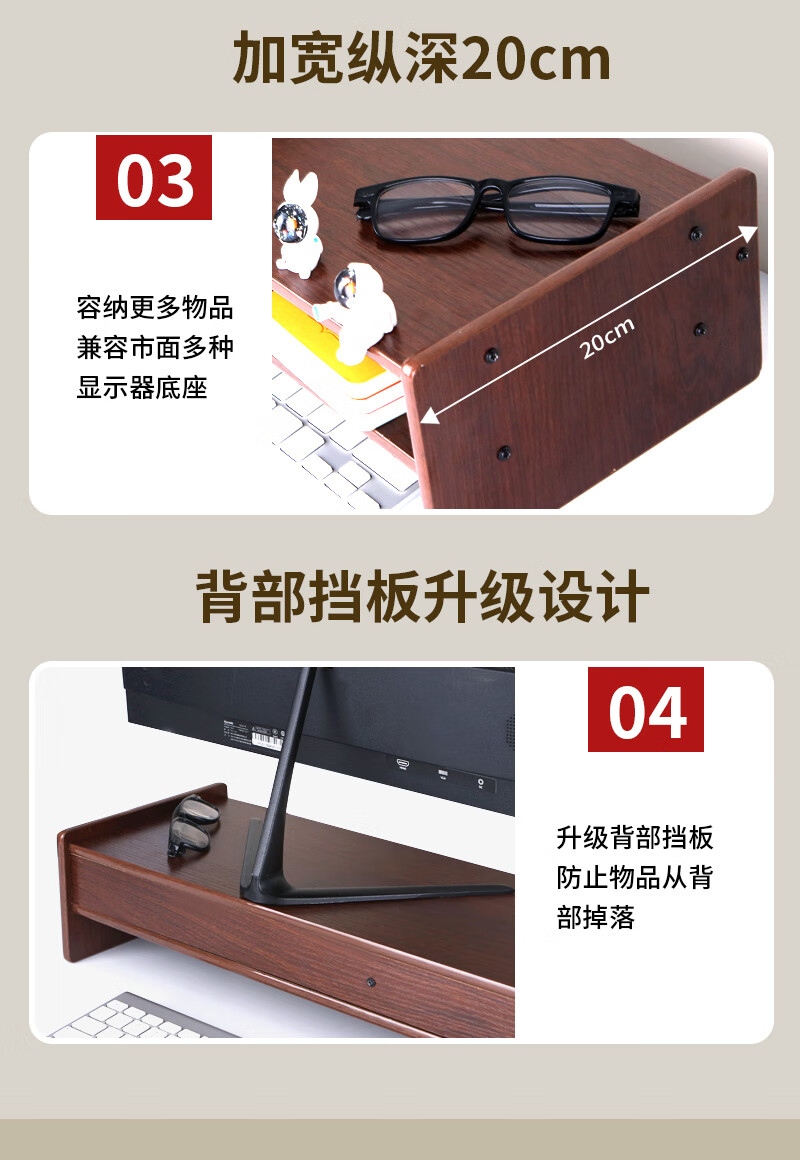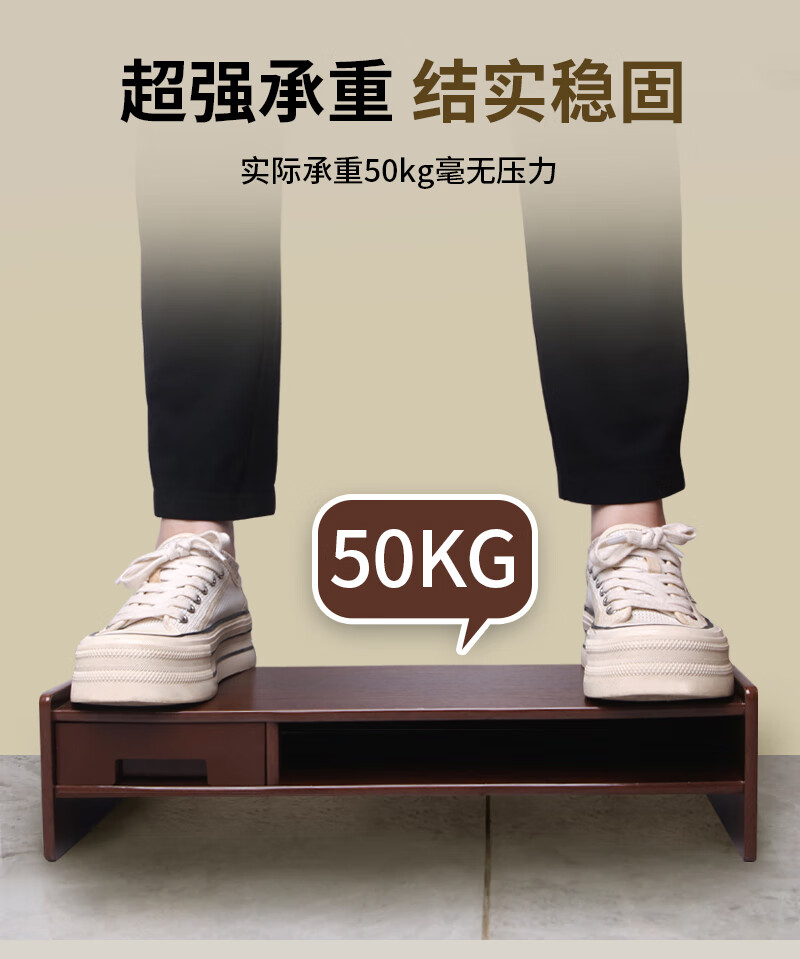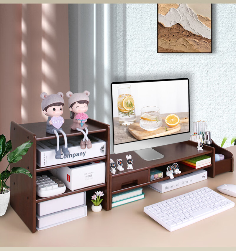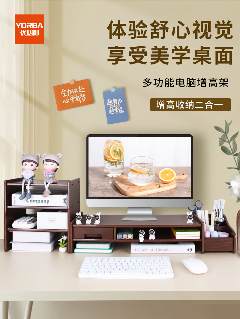 优必利 电脑增高架台式支架木质增高桌 多功能办公桌面键盘收纳显示器垫高底座置物架 5072深木纹 100024515516