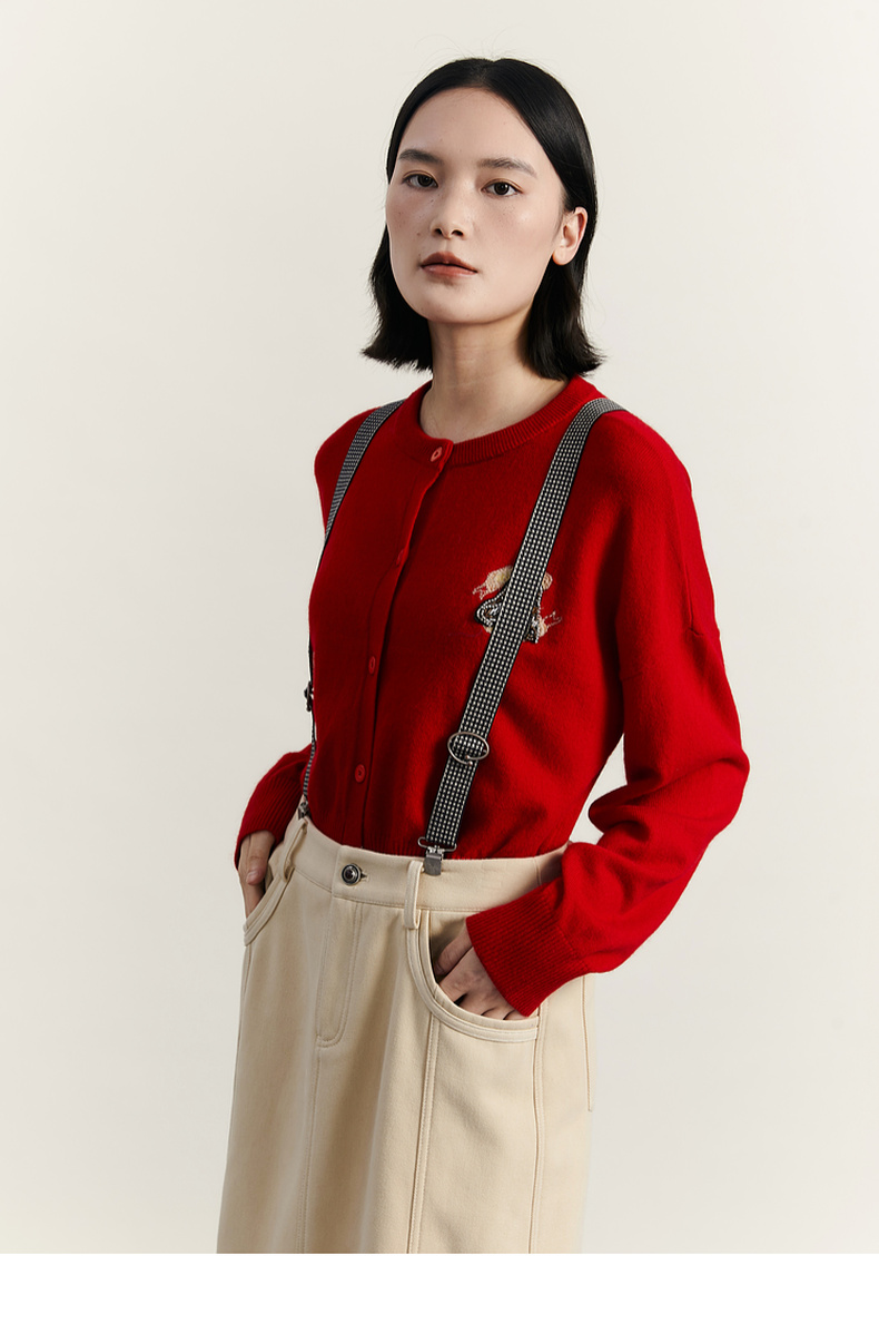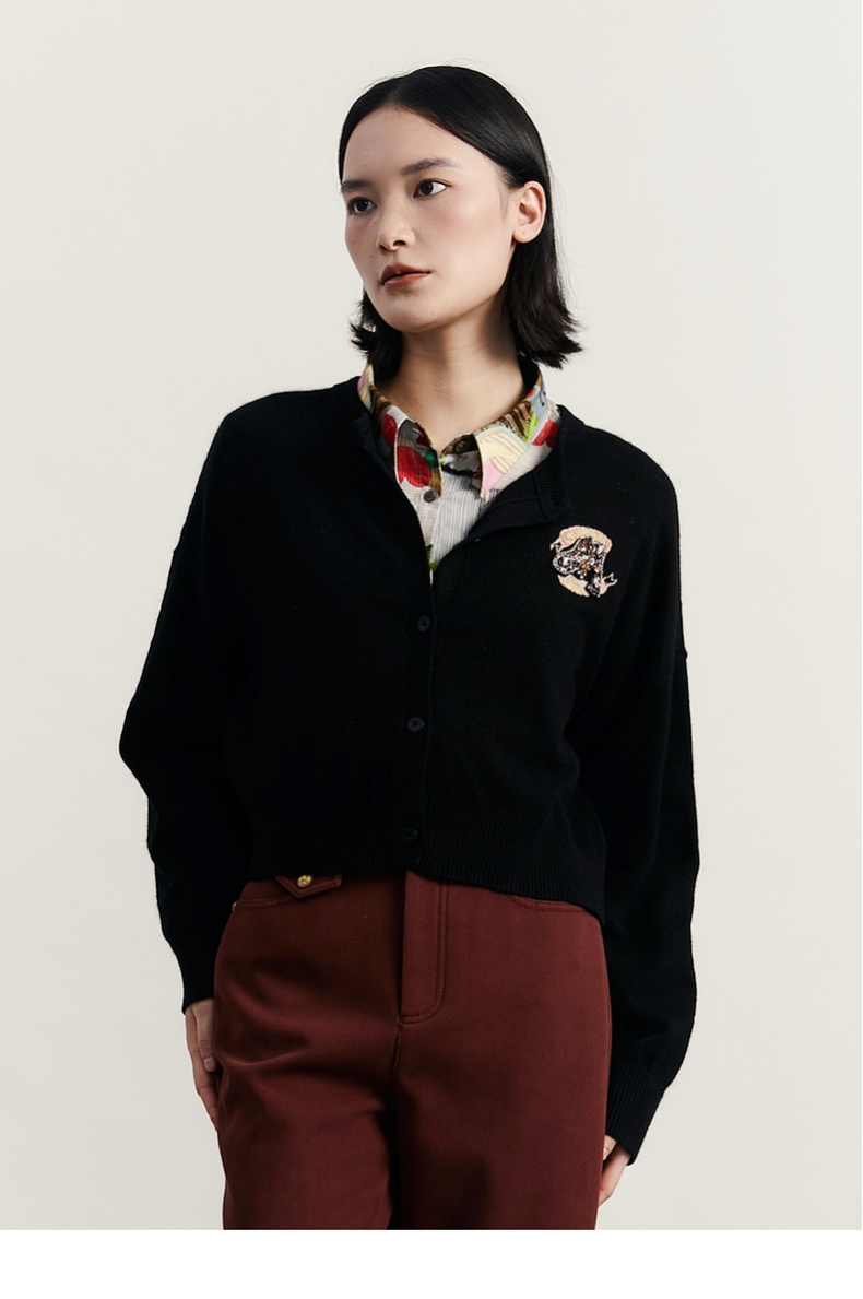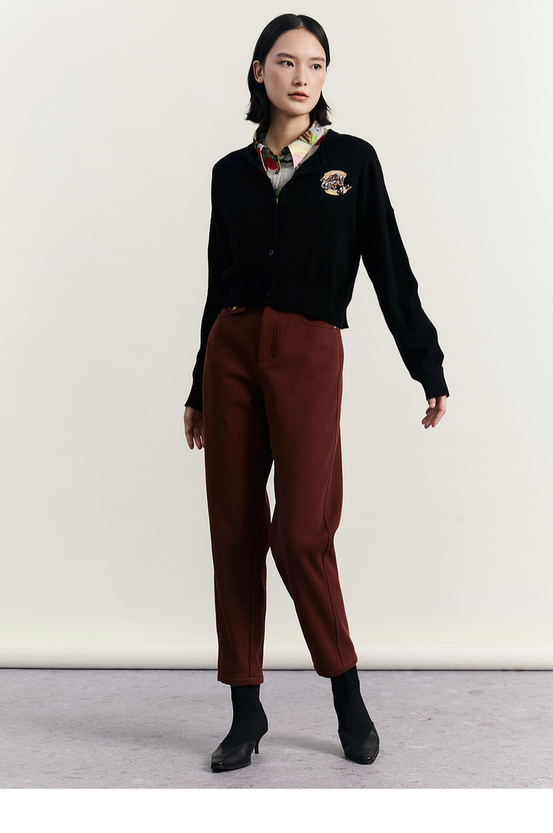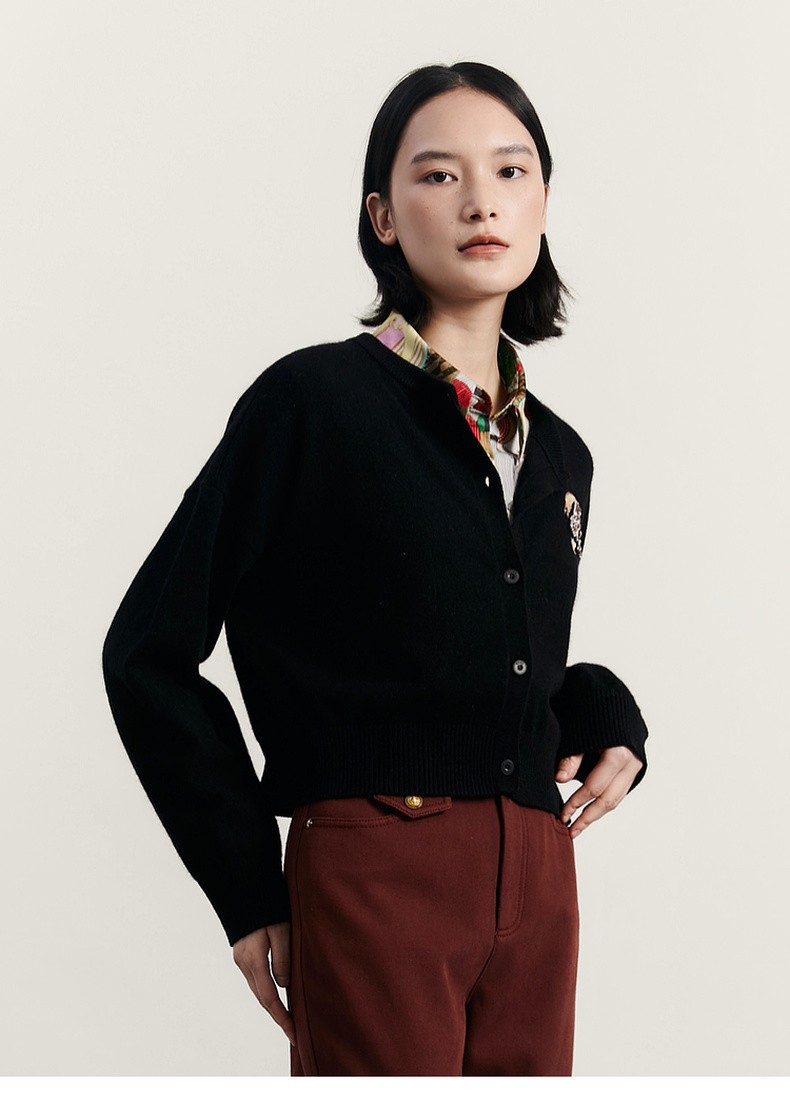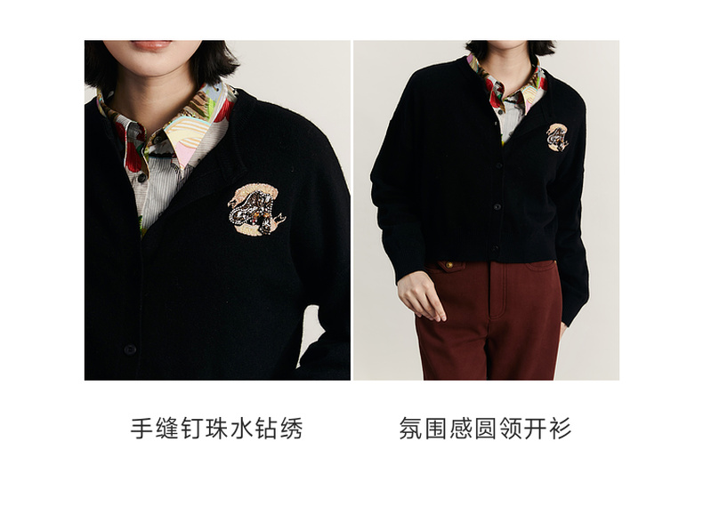 谜底圆领针织开衫女2023冬季新品简约时尚柔软百搭毛衫234MZ1863