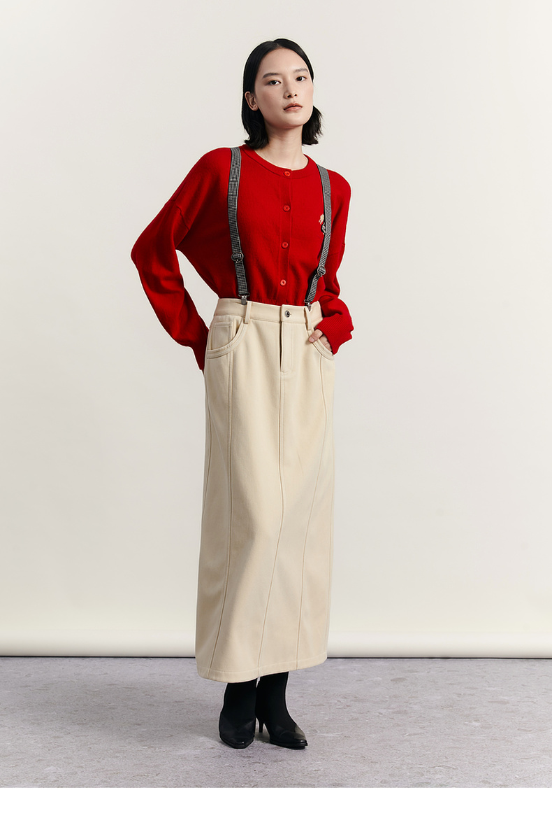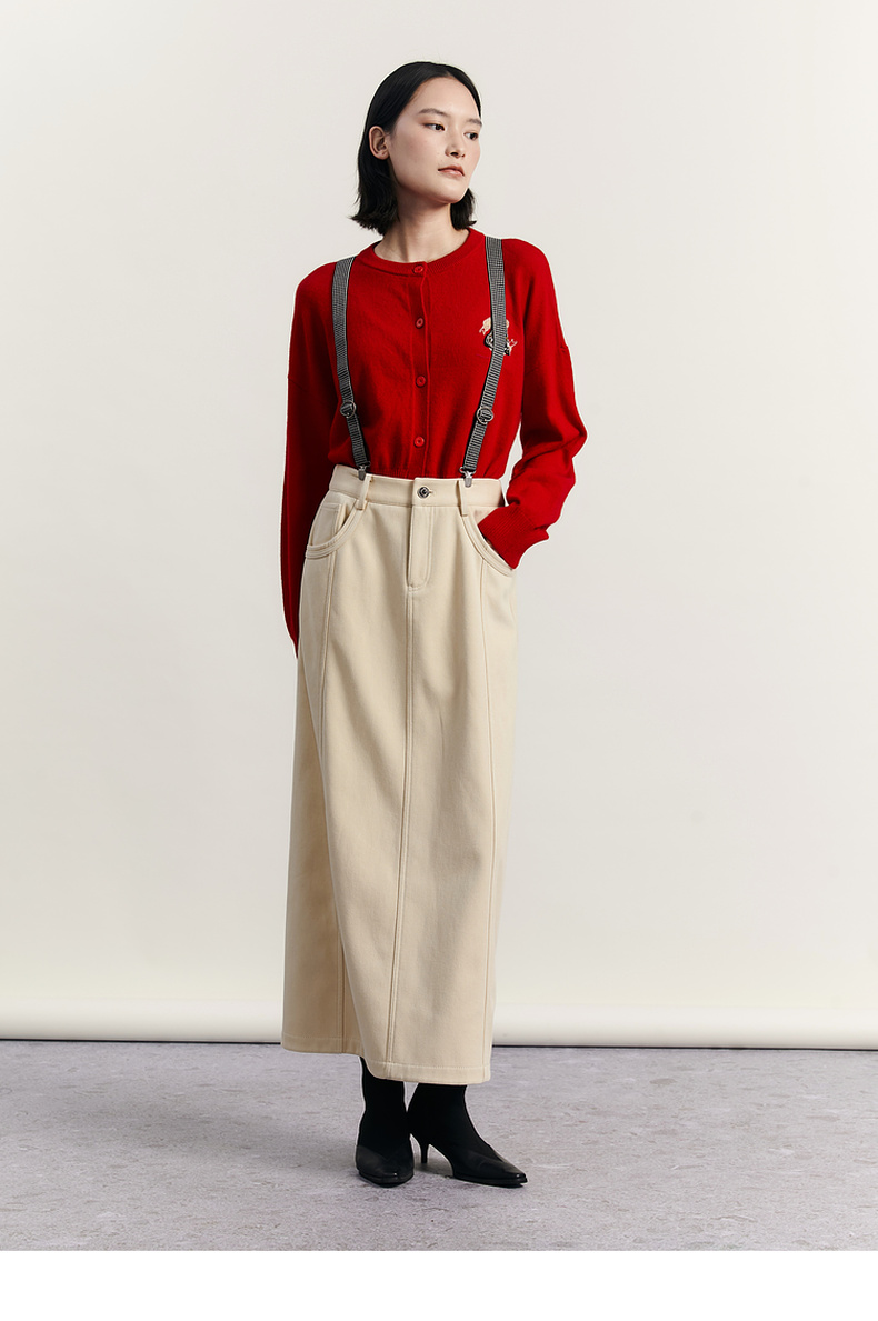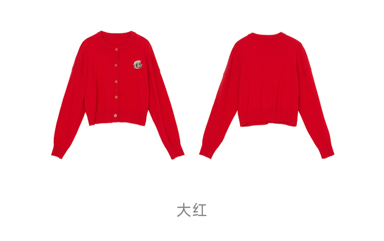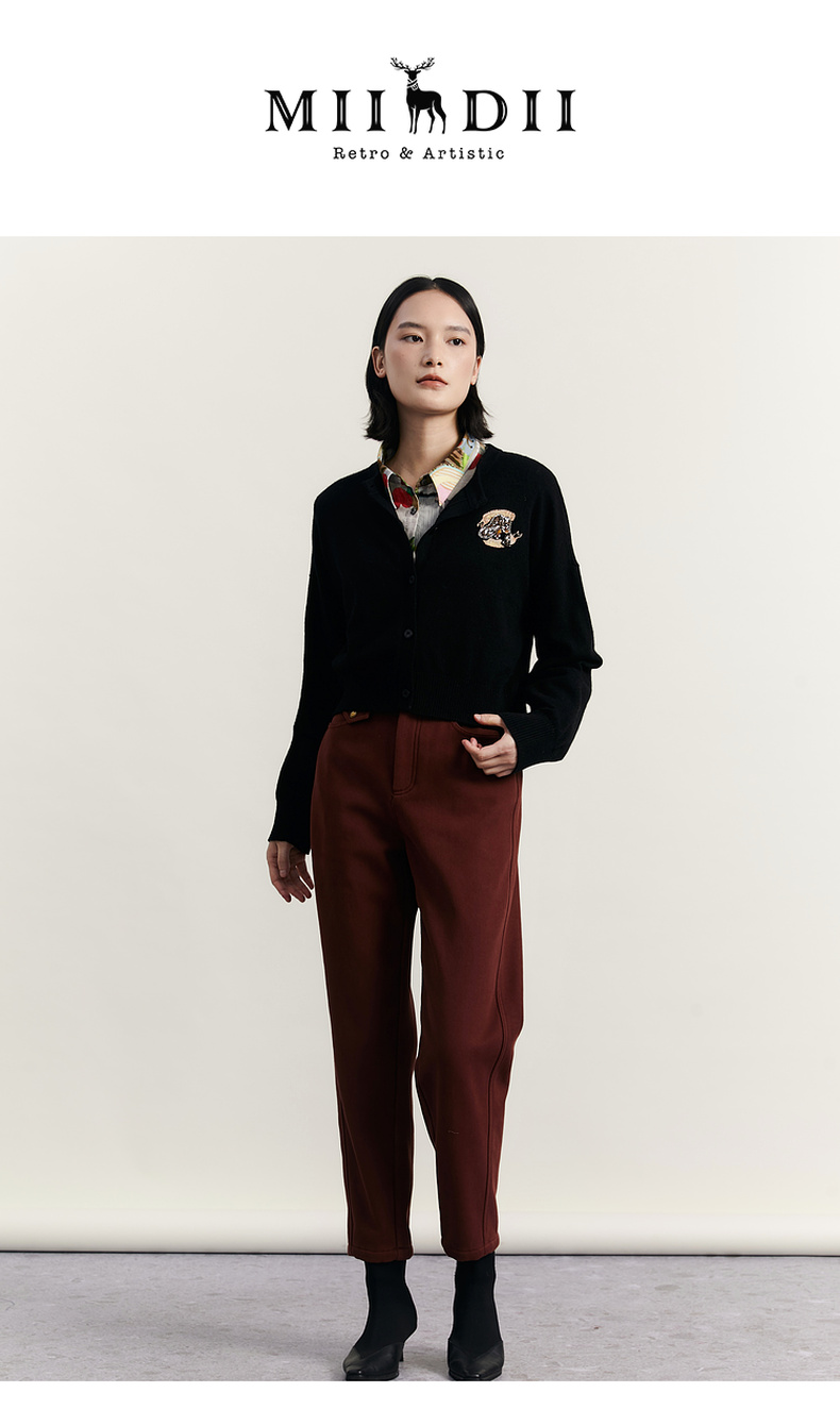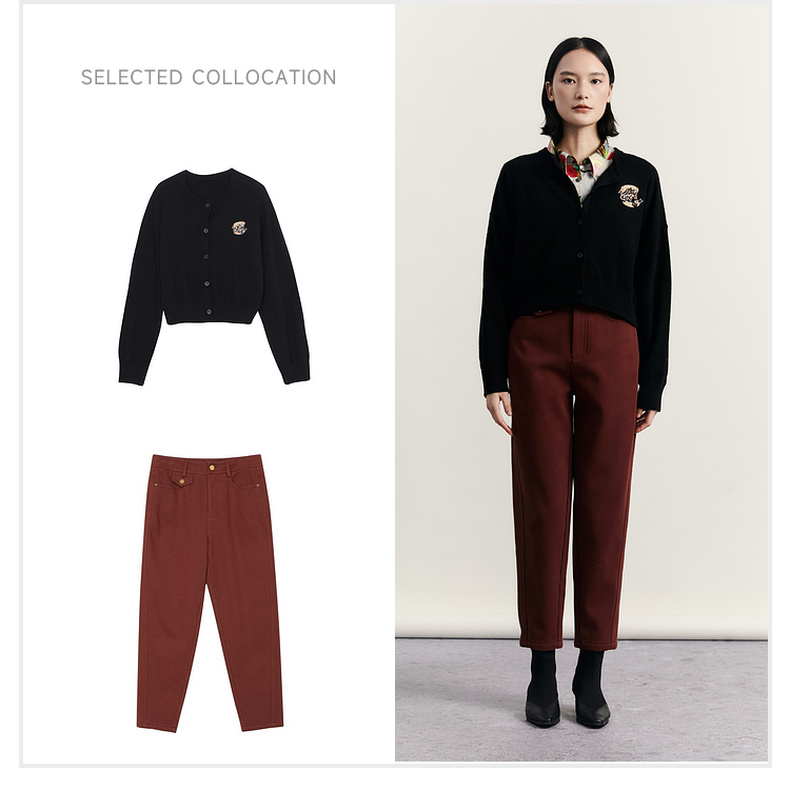 谜底圆领针织开衫女2023冬季新品简约时尚柔软百搭毛衫234MZ1863