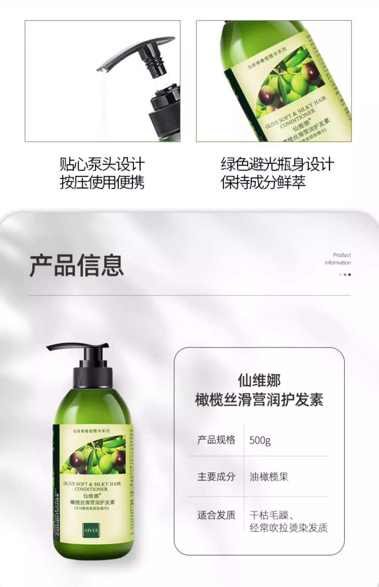 SIVIA仙维娜橄榄丝滑营养护发素 防干枯分叉染烫护理受损修护柔顺发膜