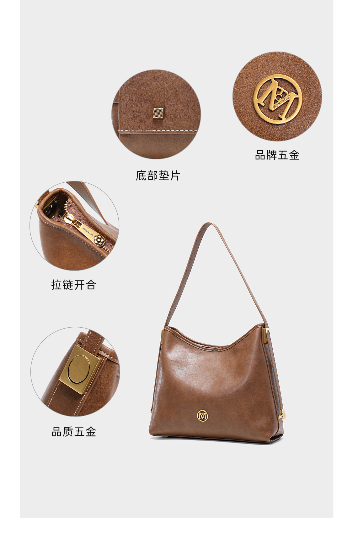 梦特娇女士时尚休闲单肩包腋下包通勤大容量手提包