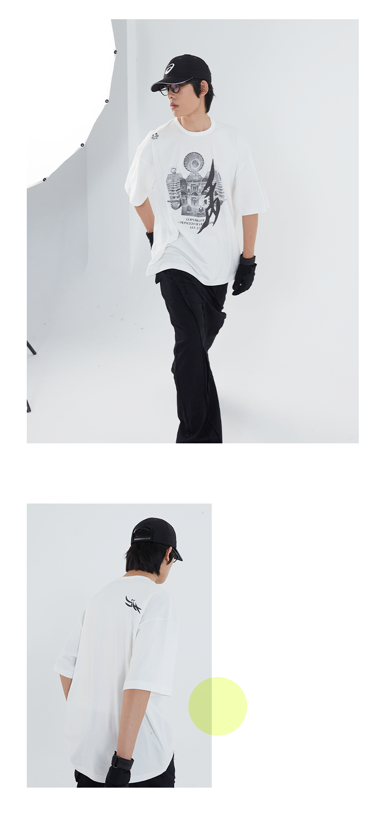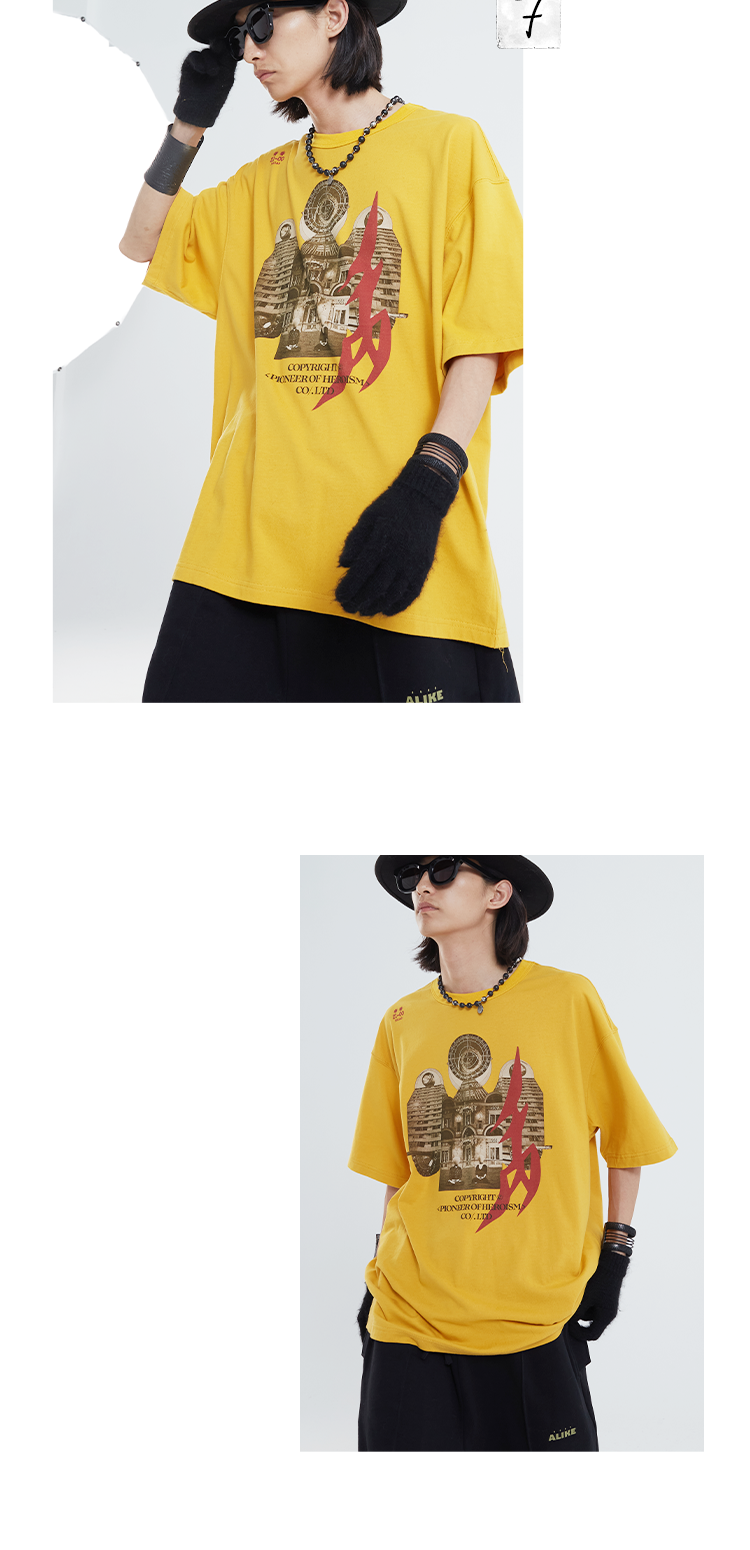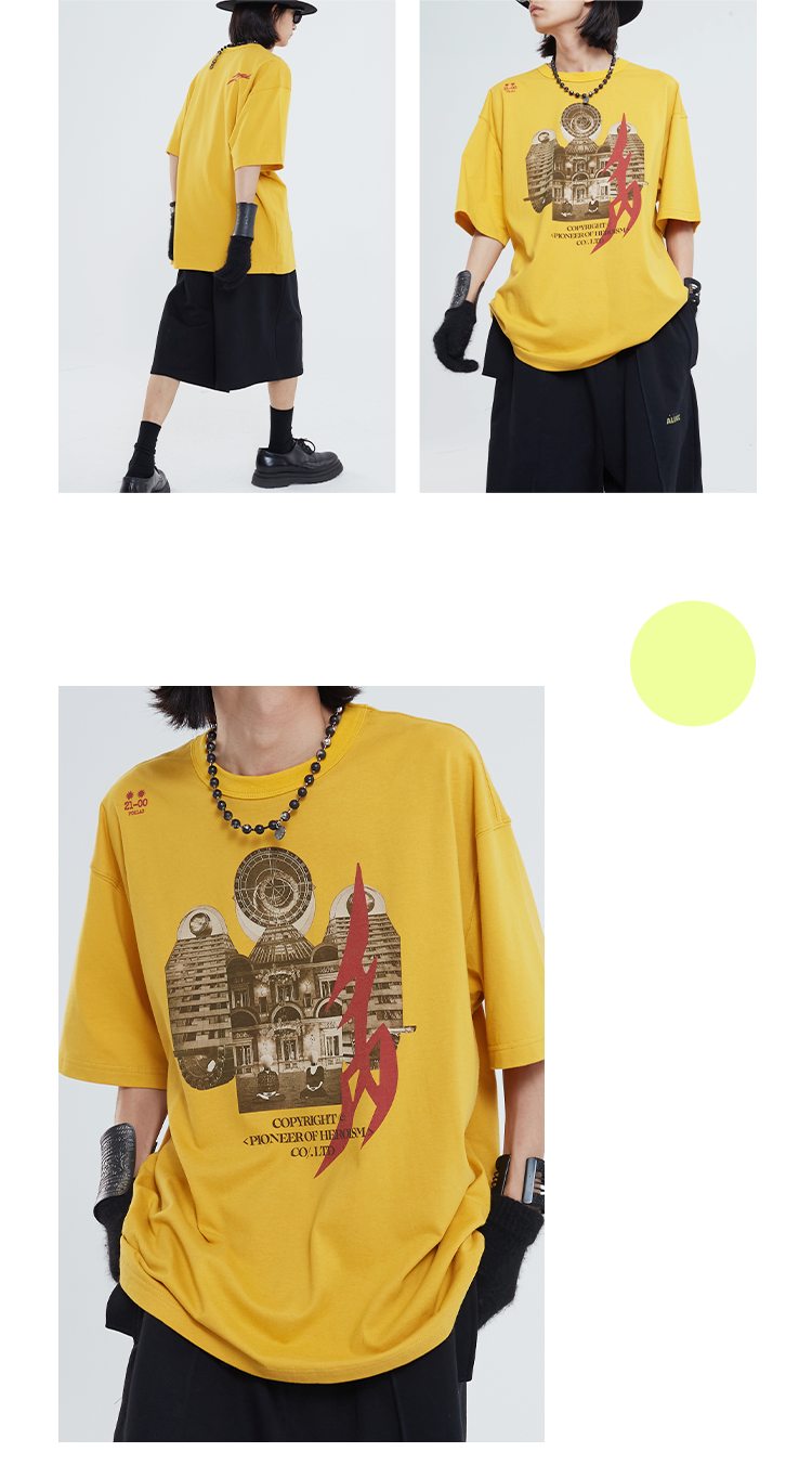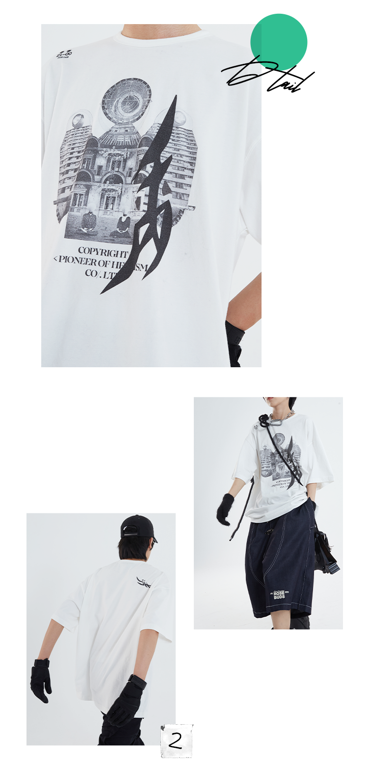 POH「镜像建筑体」主题印花街头休闲宽松落肩双色短袖T恤男潮牌夏