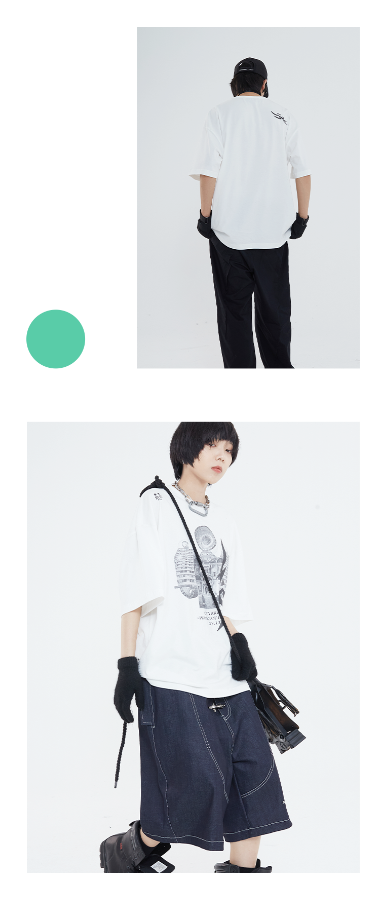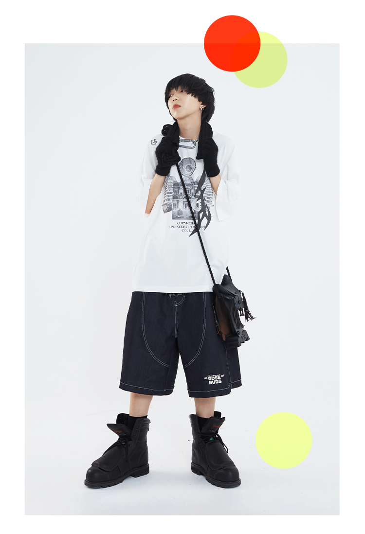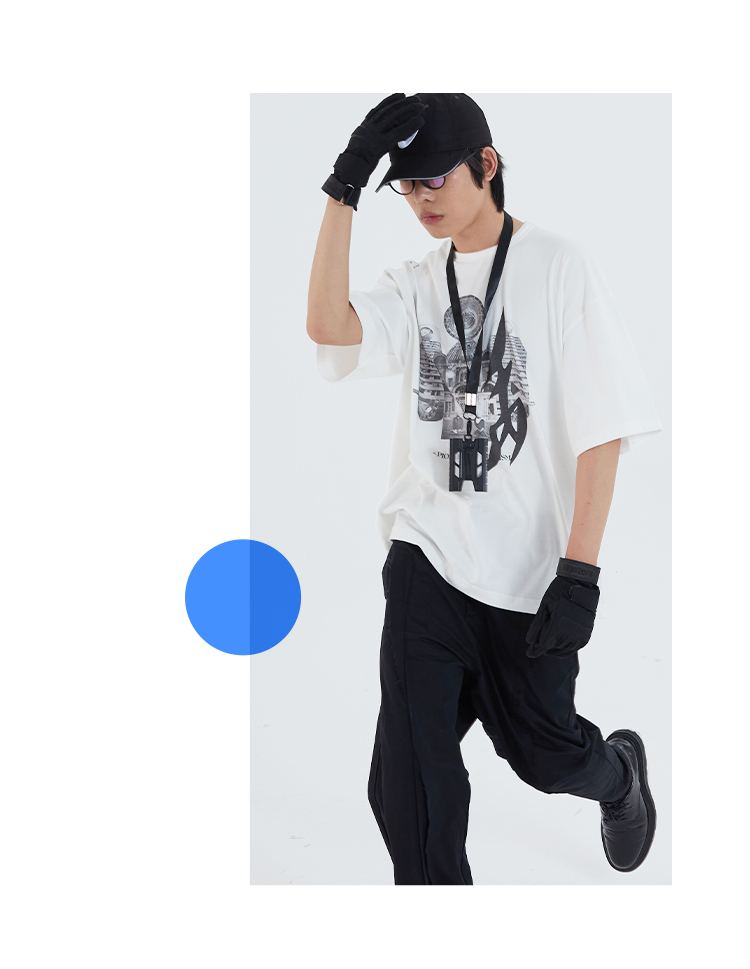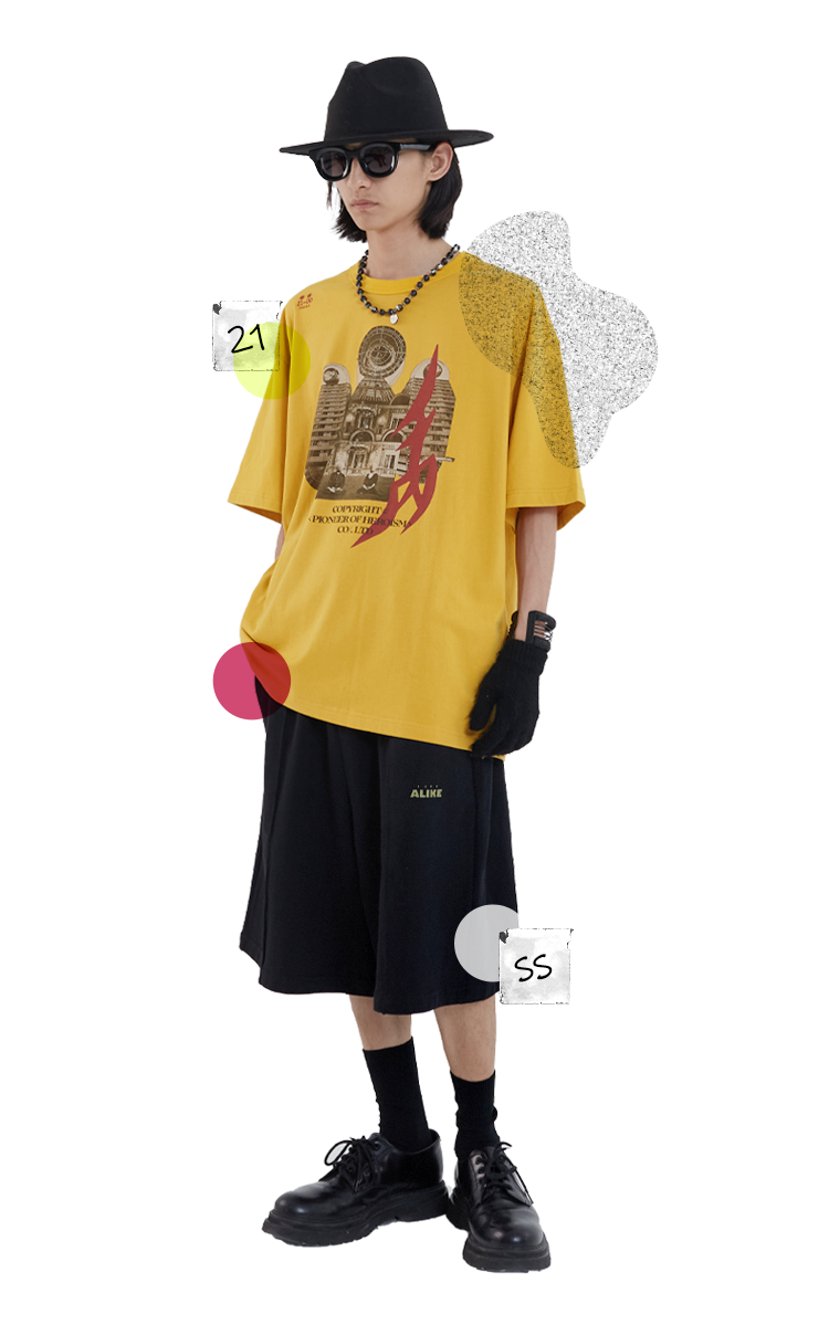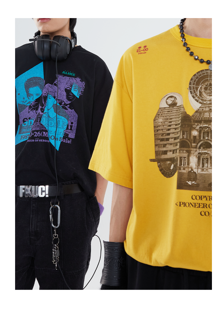 POH「镜像建筑体」主题印花街头休闲宽松落肩双色短袖T恤男潮牌夏