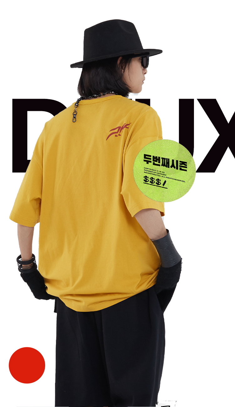 POH 基础款印花复古街头打底T恤男国潮流五色宽松落肩短袖彩蛋TEE