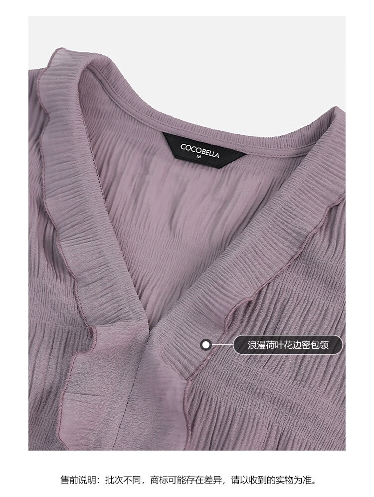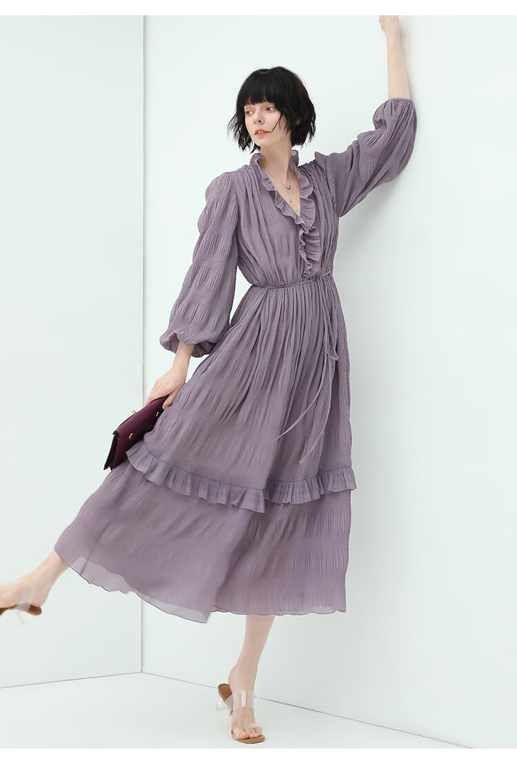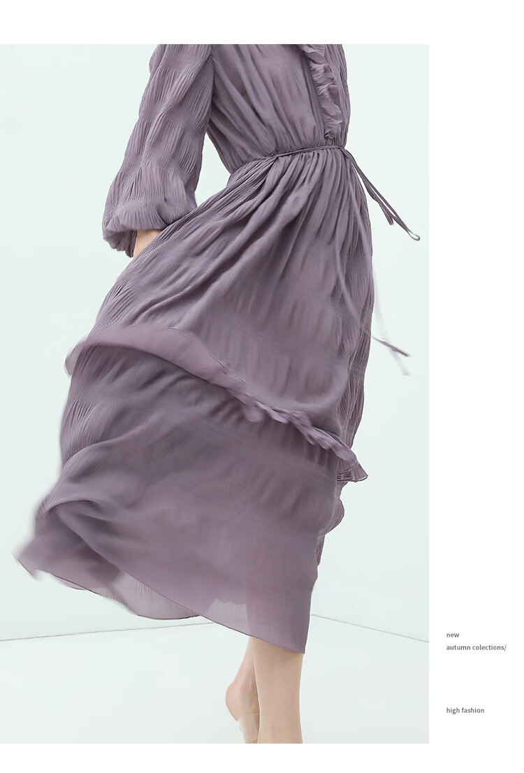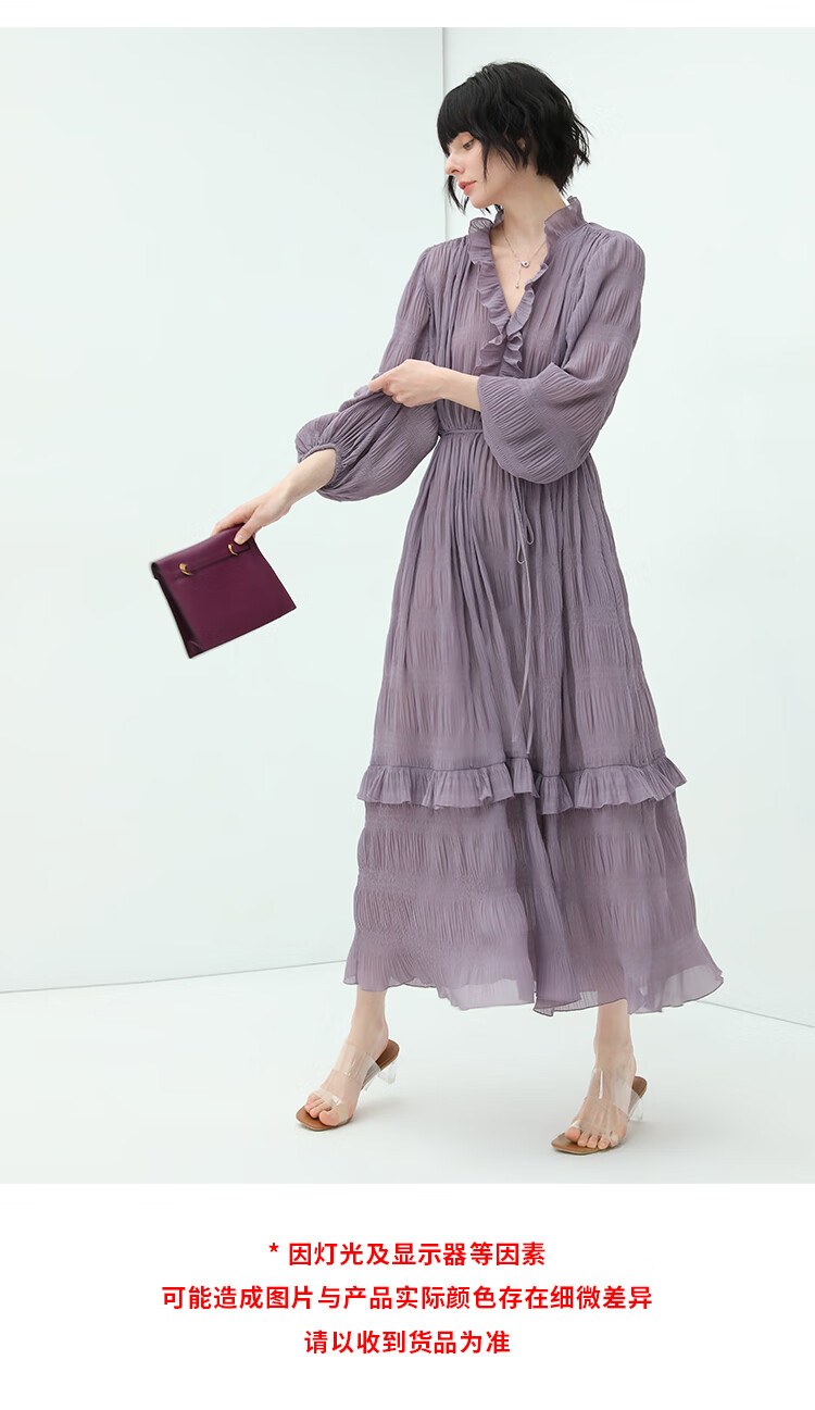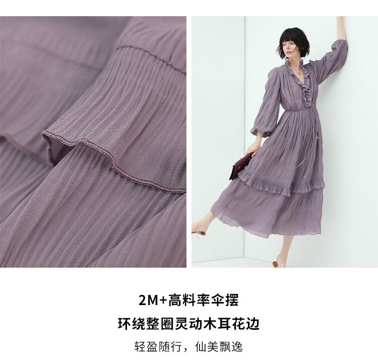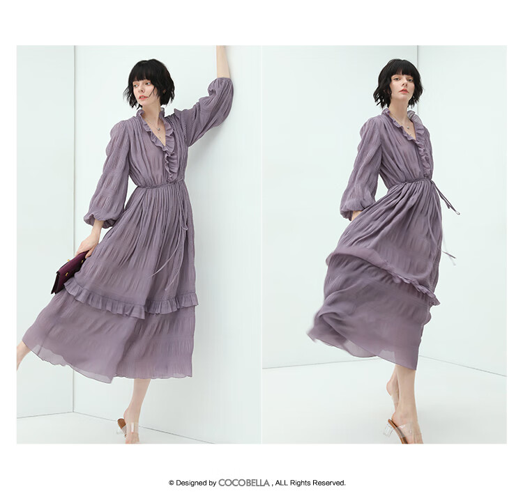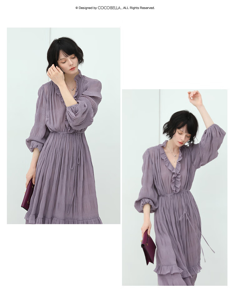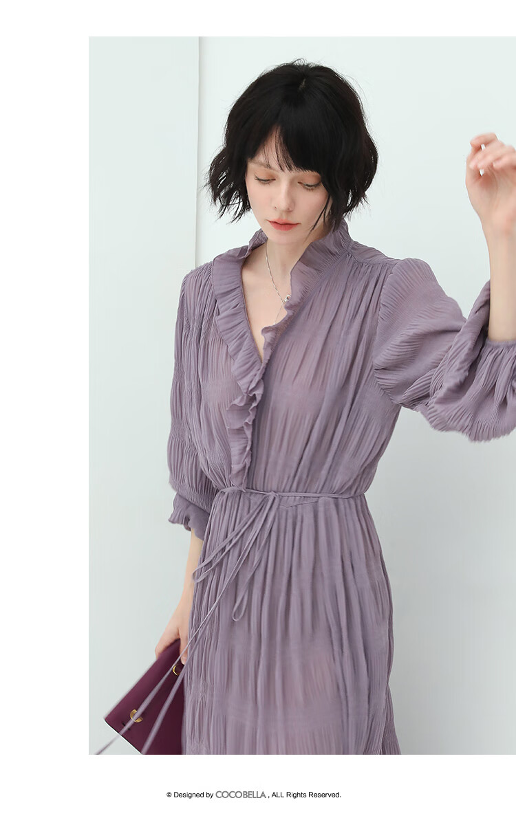 COCOBELLA宫廷风重工压褶木耳边连衣裙秋优雅轻熟茶歇裙FR570