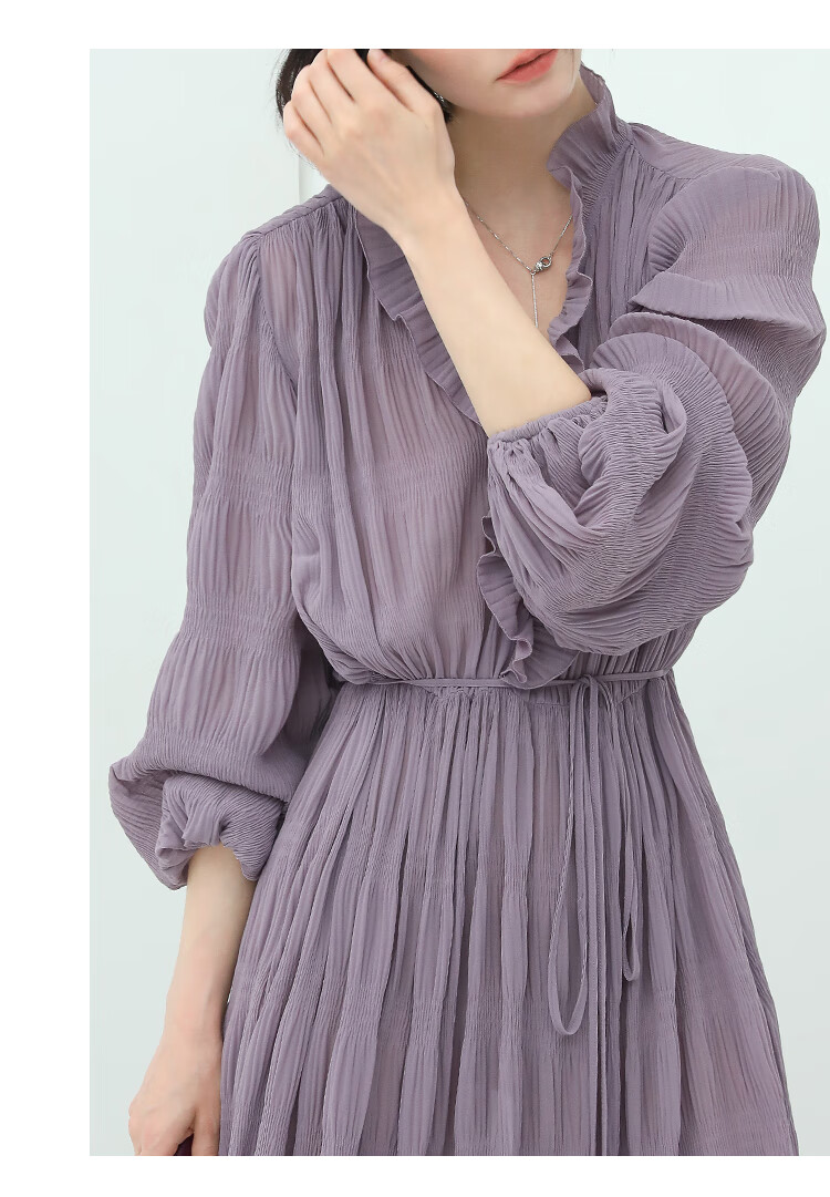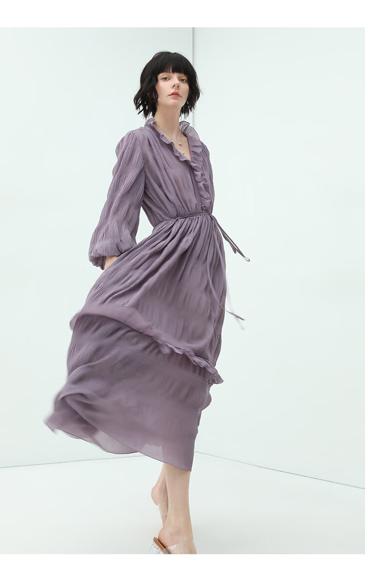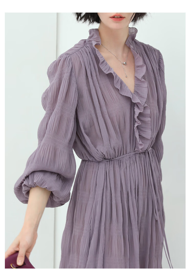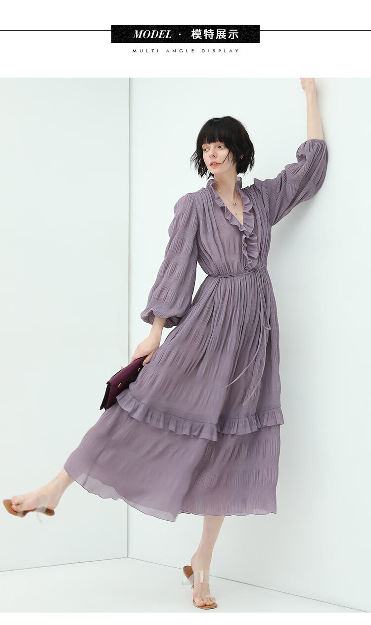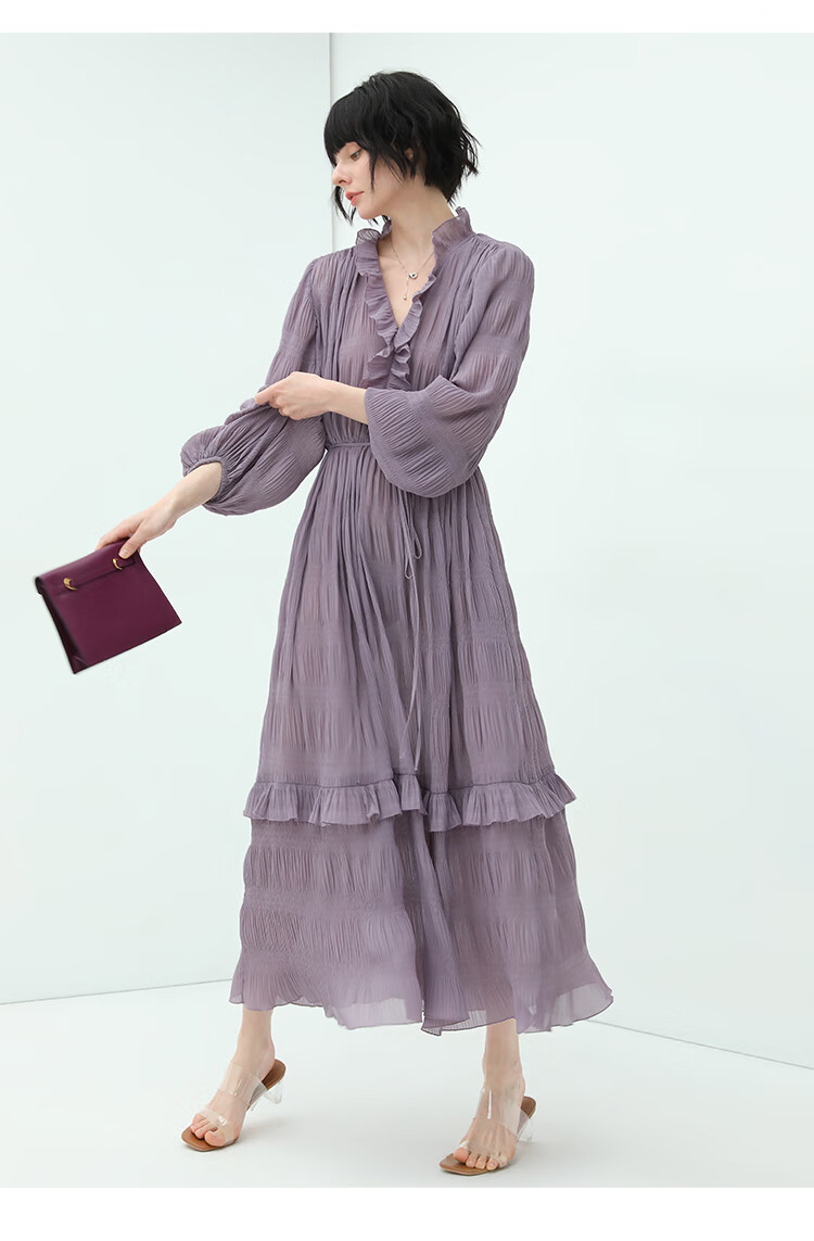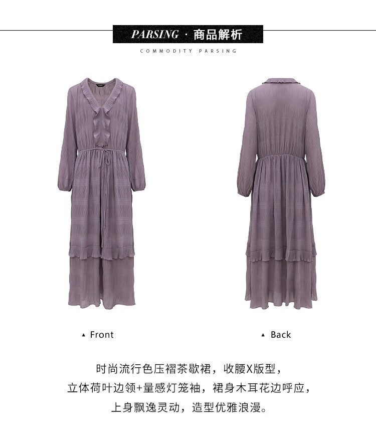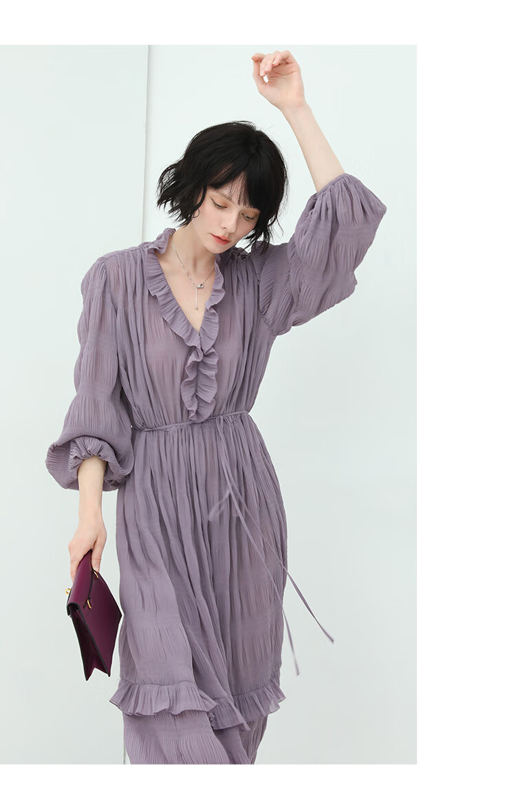COCOBELLA宫廷风重工压褶木耳边连衣裙秋优雅轻熟茶歇裙FR570