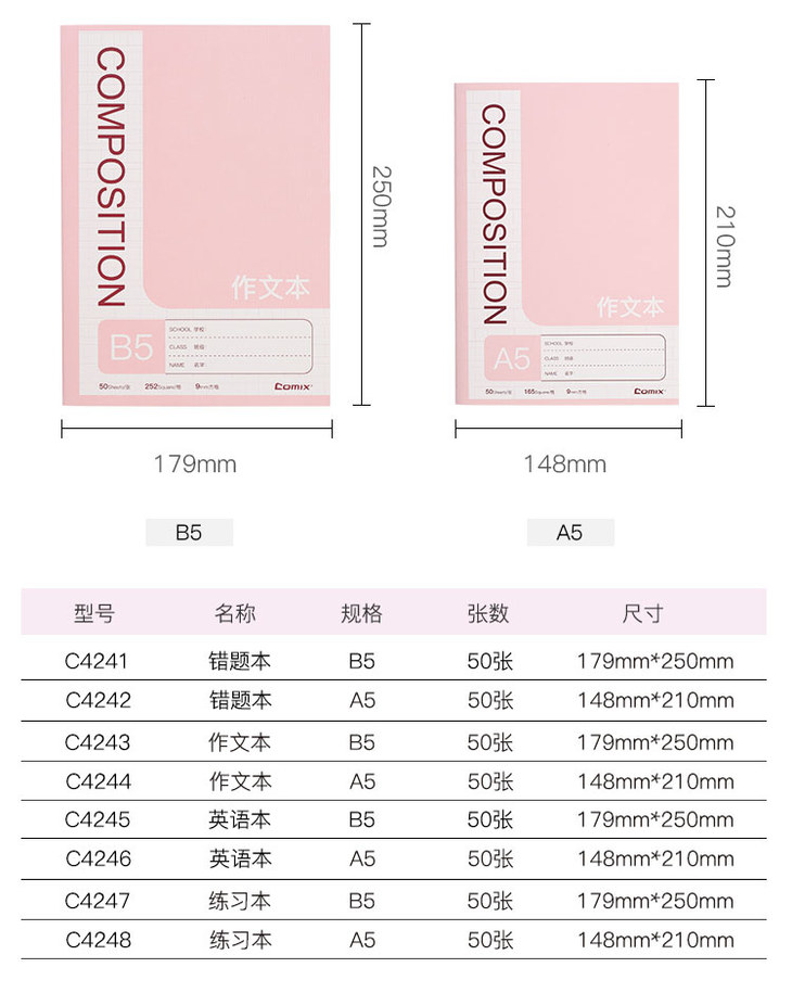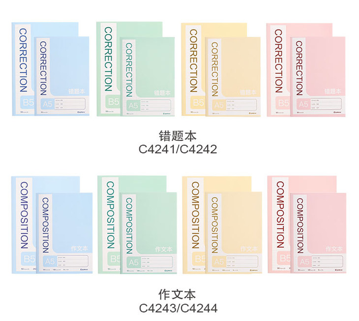 齐心英语缝线本C4245 / 齐心作文缝线本C4243 / 齐心错题缝线本C4241