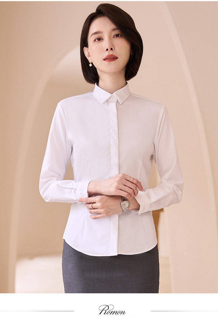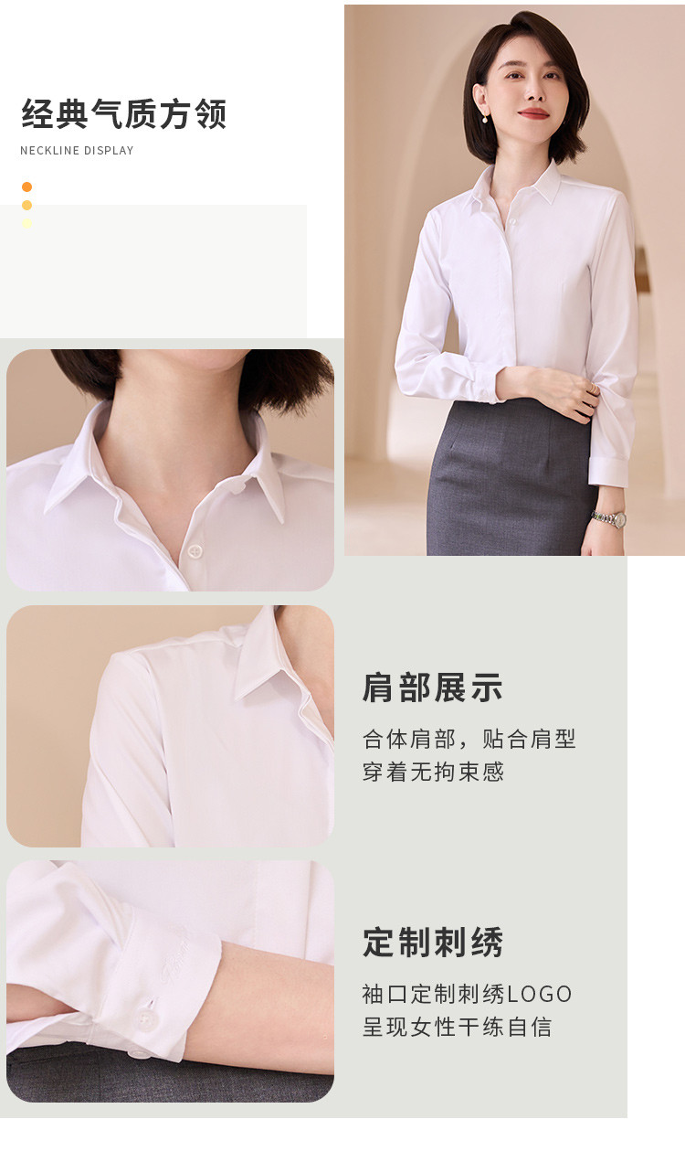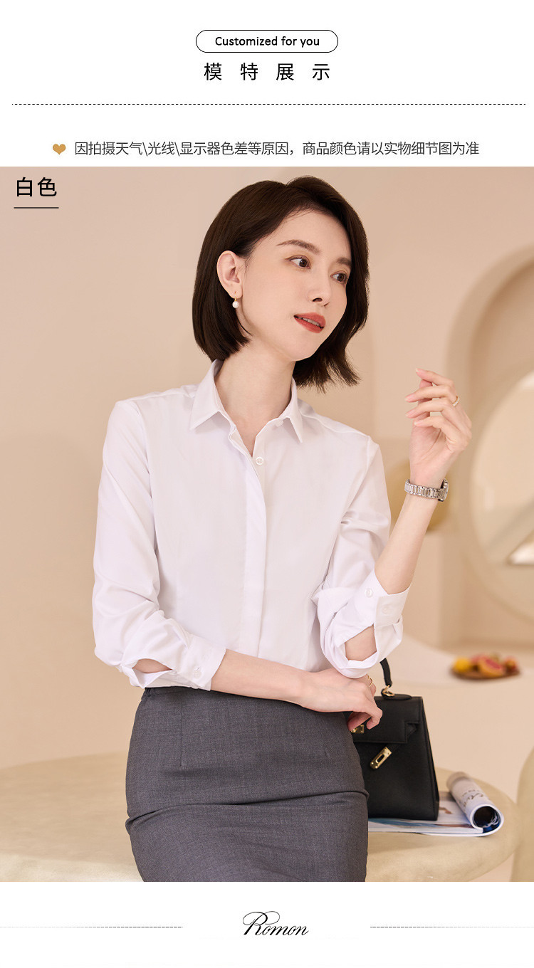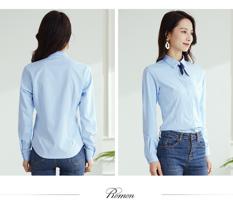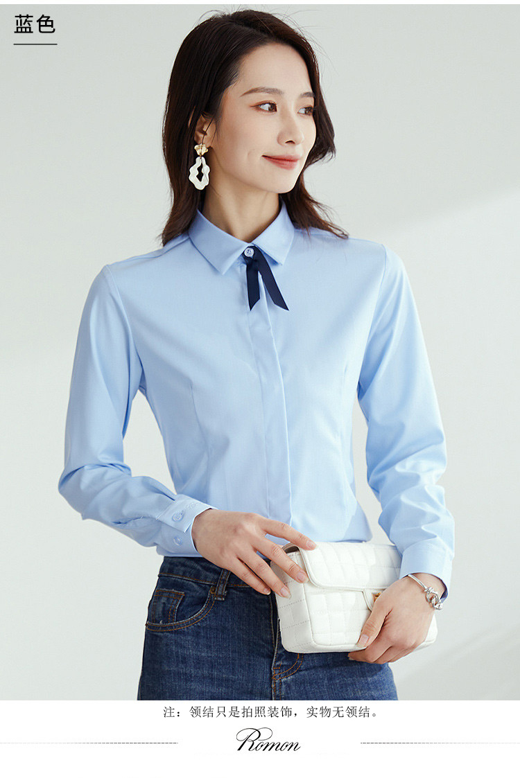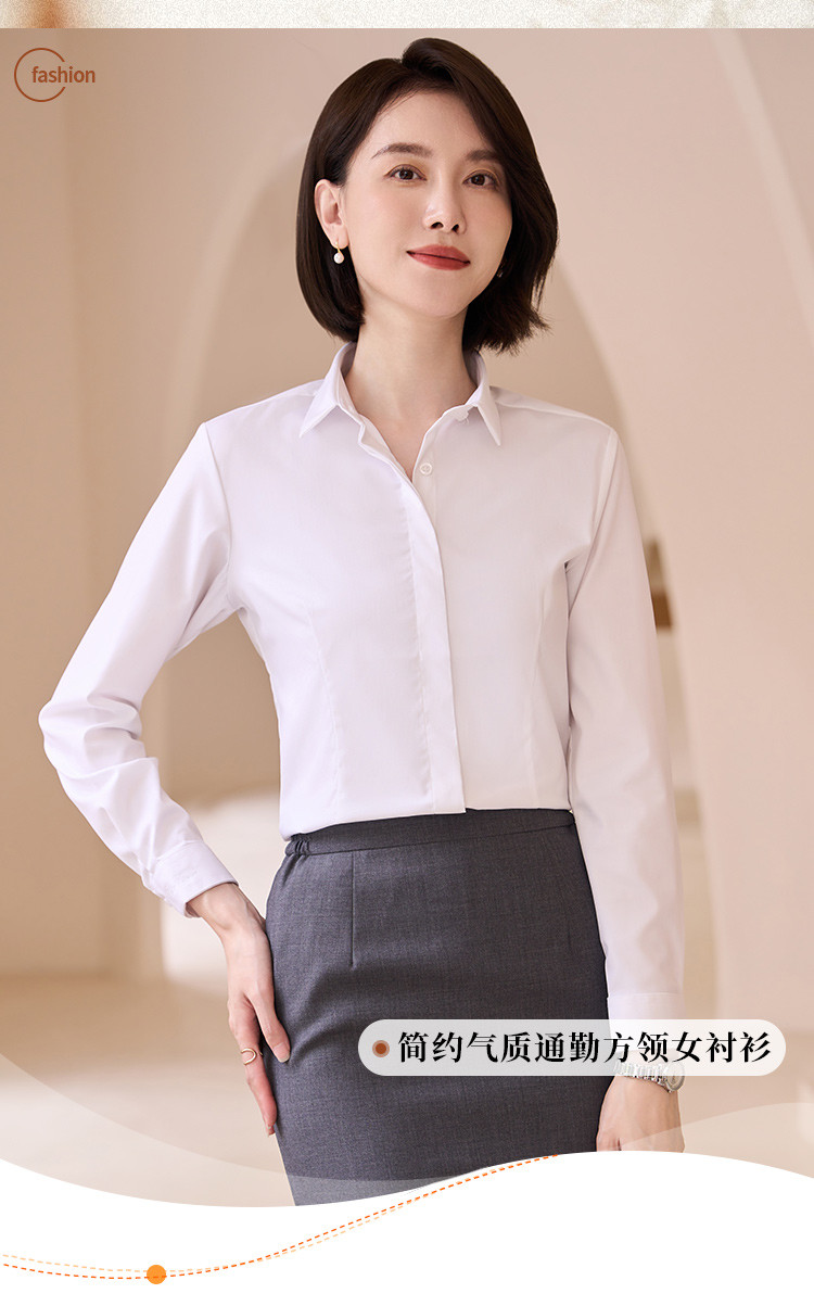 【刺绣款】罗蒙春秋新款女士衬衫简约纯色气质方领商务通勤长袖衬衫