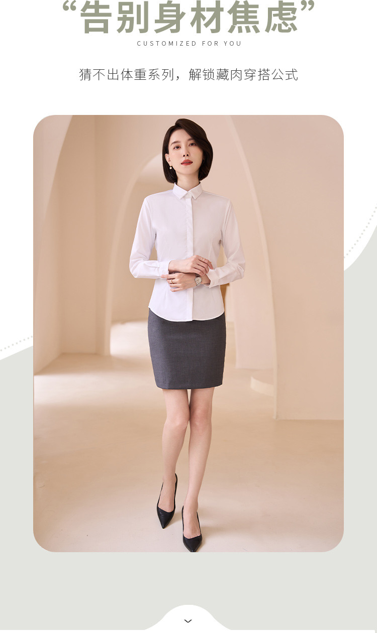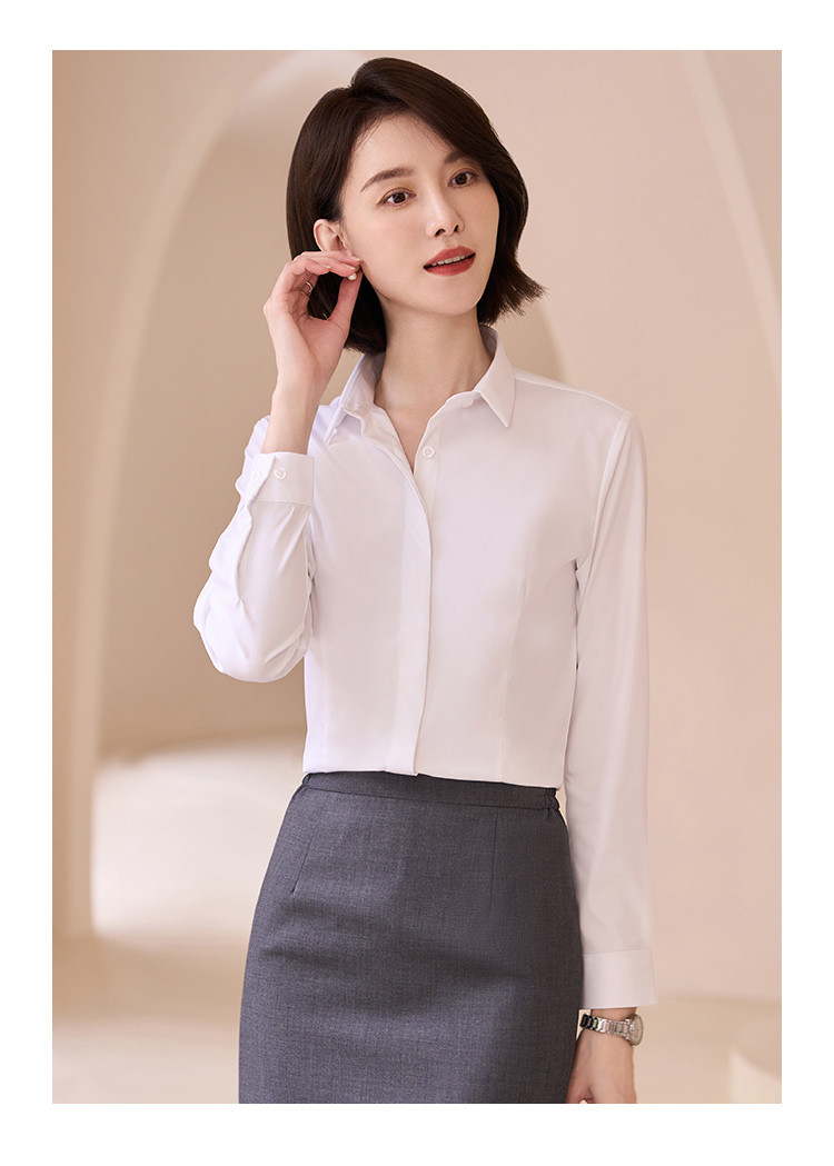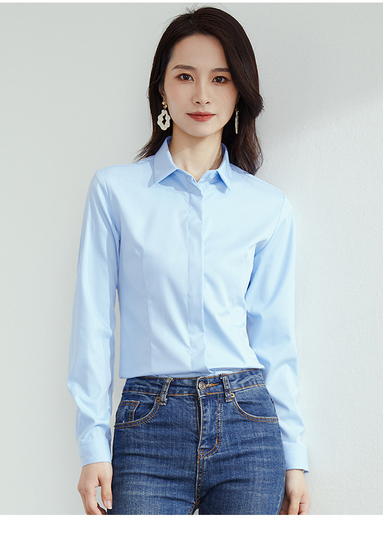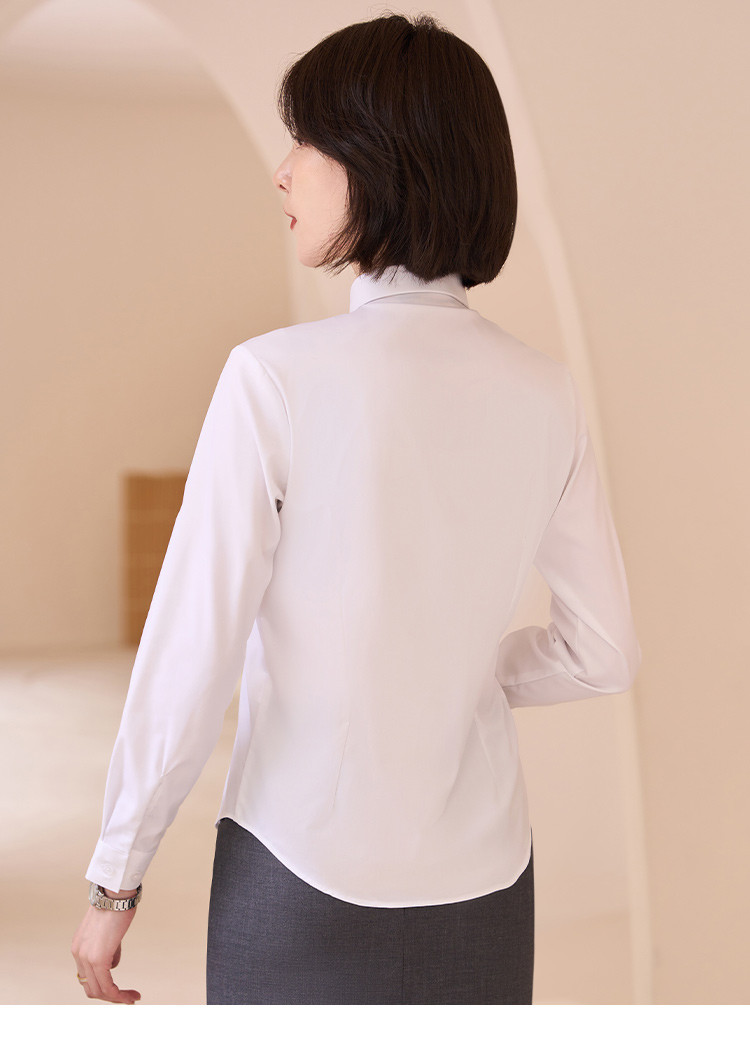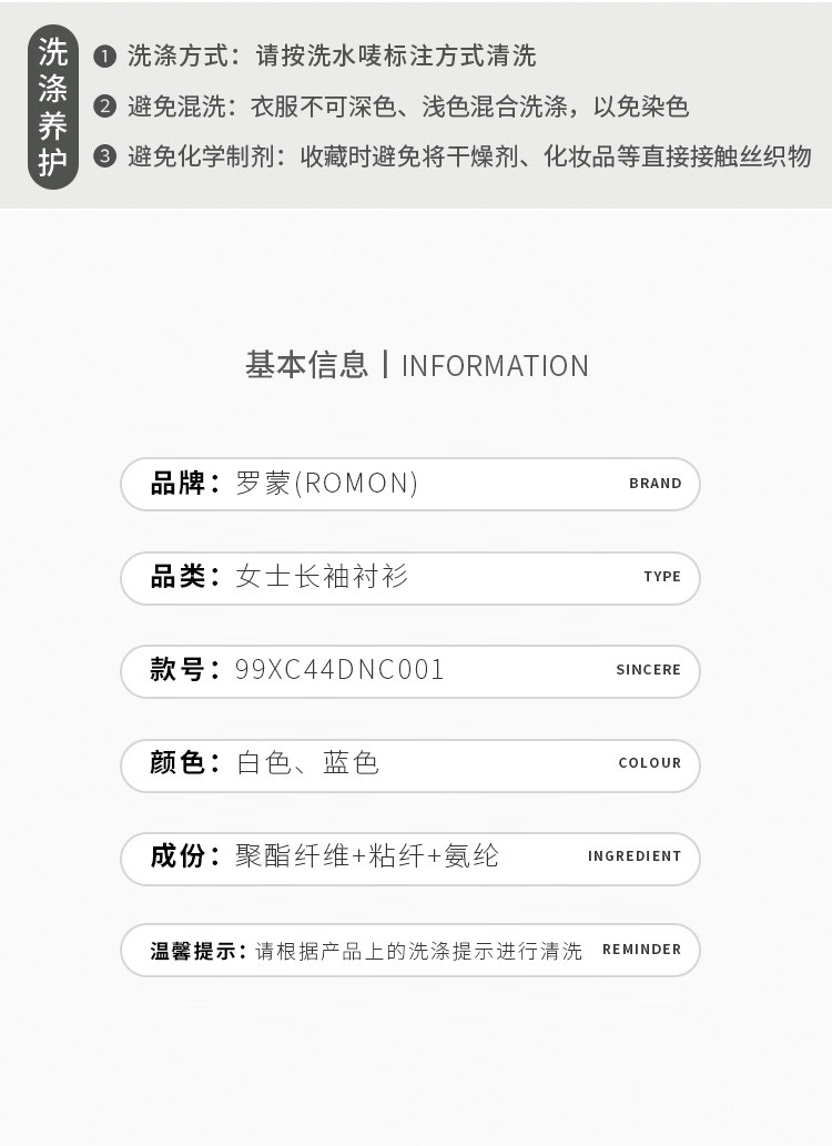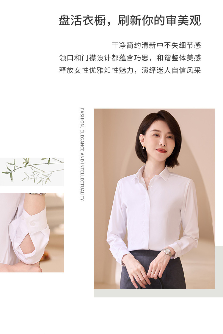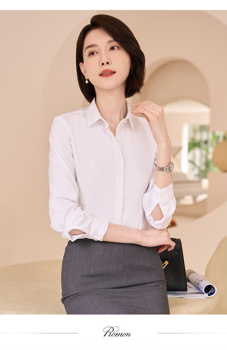 【刺绣款】罗蒙春秋新款女士衬衫简约纯色气质方领商务通勤长袖衬衫