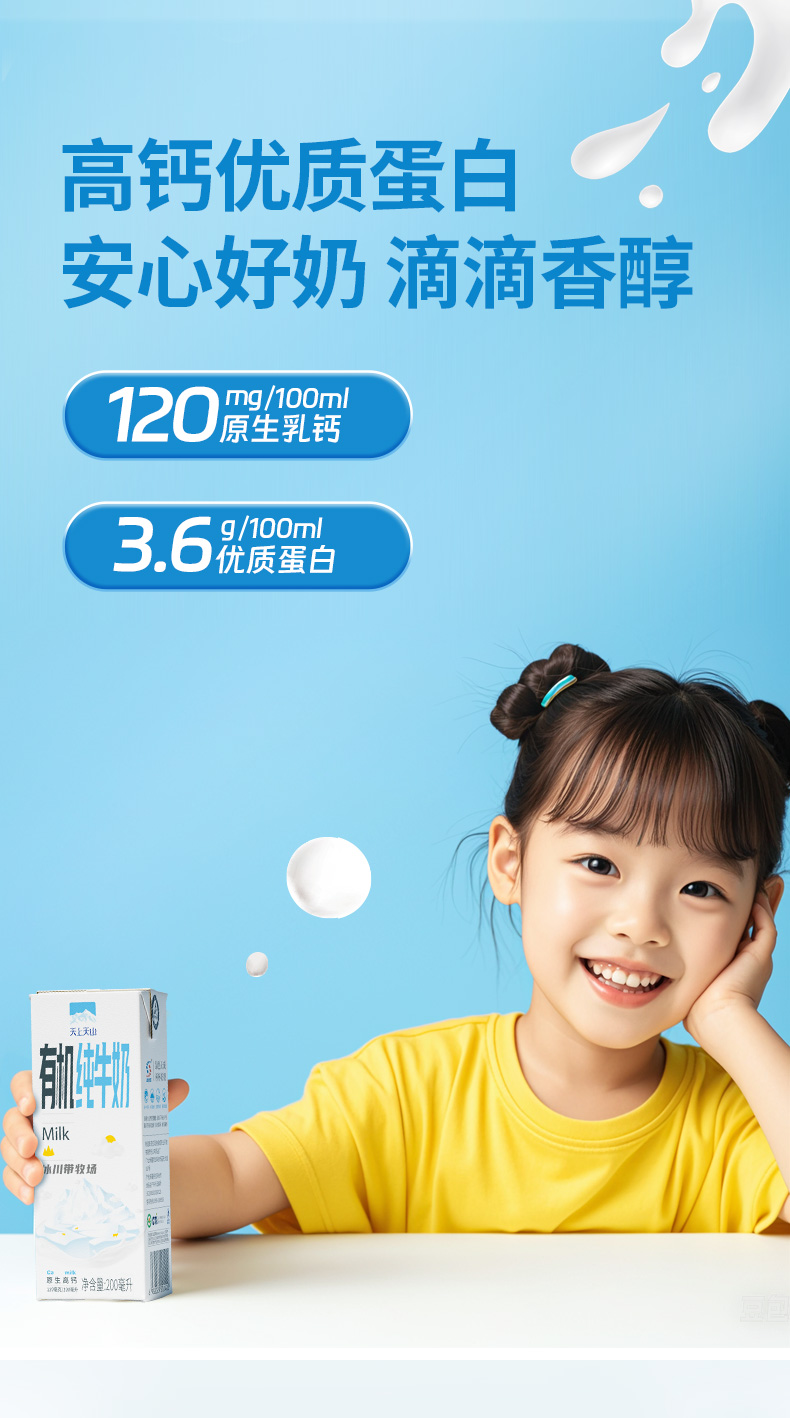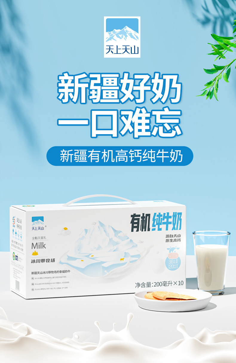 天上天山新疆有机纯牛奶 3.6原生乳蛋白 120mg原生钙 三重有机认证